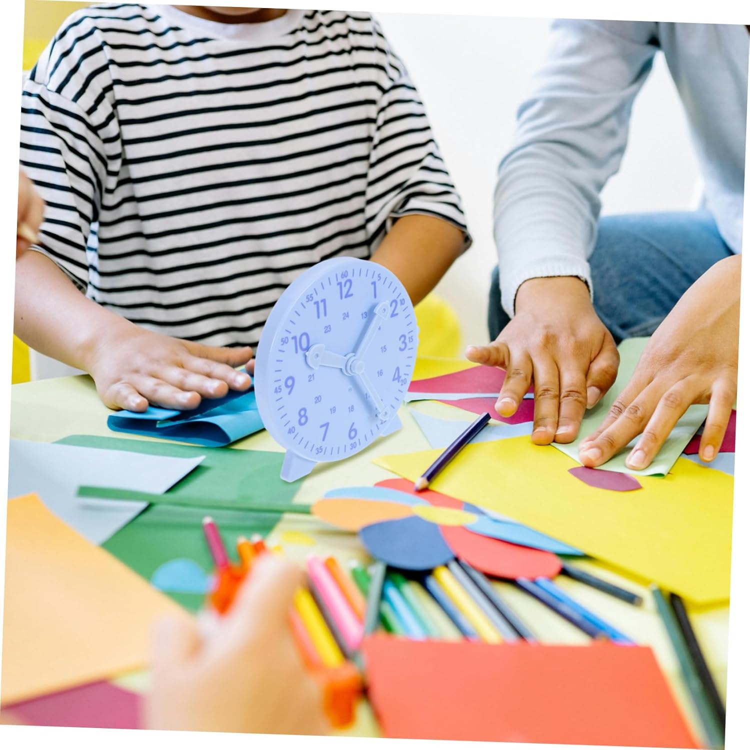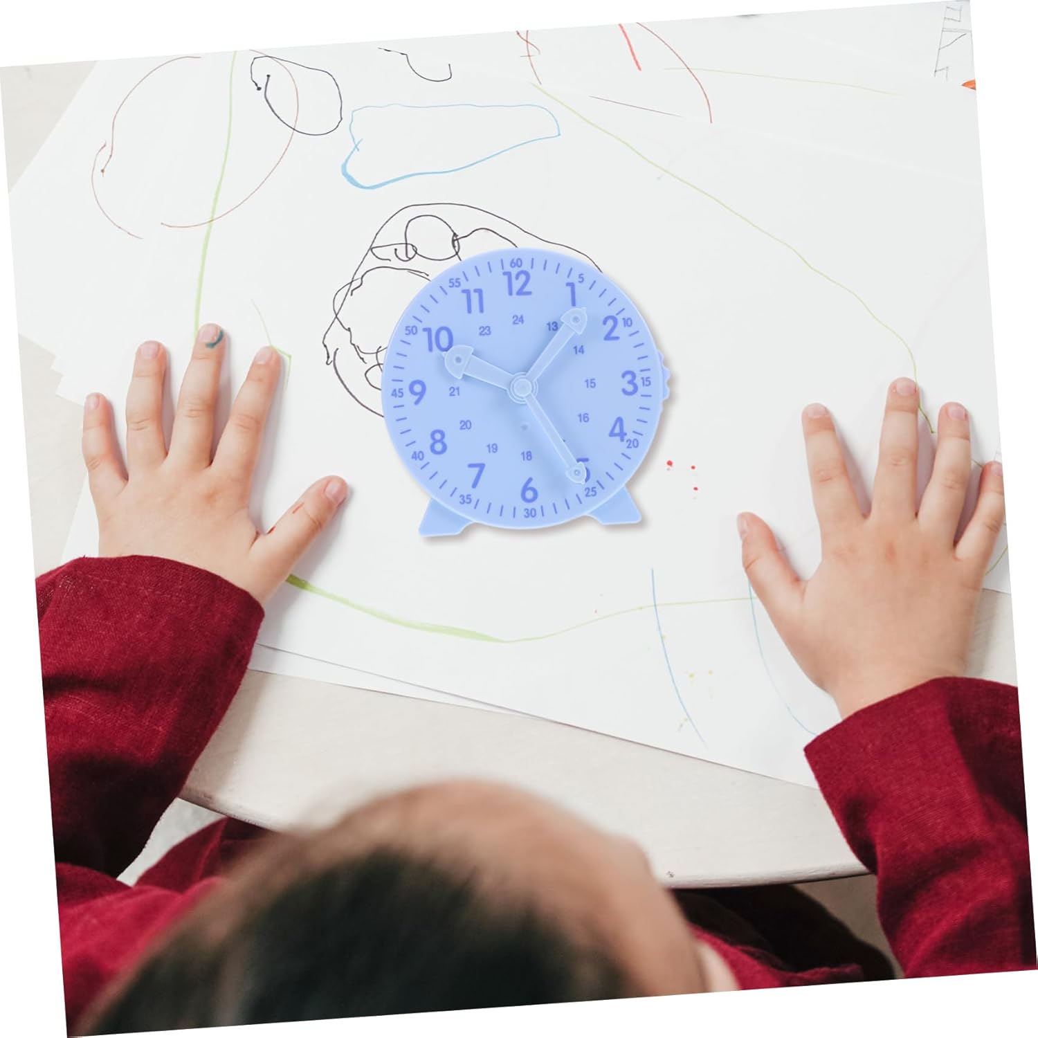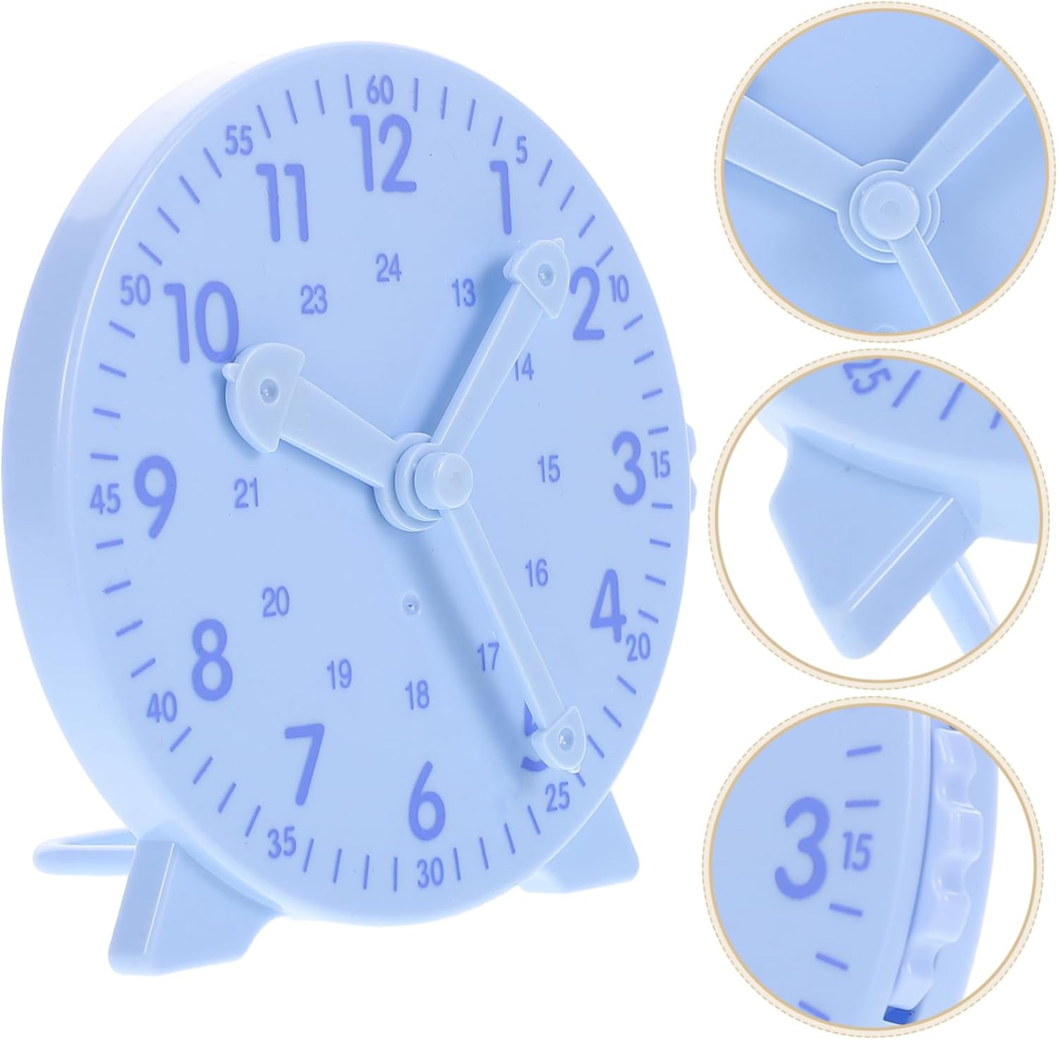 Movimento delle lancette collegate: le lancette dell'orologio si muovono insieme, fornendo ai bambini una visualizzazione dell'ora chiara e precisa. Strumento per la scuola primaria: questo modello di orologio è ideale per l'utilizzo nella scuola primaria ed è uno strumento prezioso per insegnare ai bambini il tempo. Esperienza di apprendimento divertente: il design divertente e colorato dell'orologio rende l'apprendimento del tempo un'esperienza divertente per i bambini. Promuove la gestione del tempo: aiuta i bambini a sviluppare importanti capacità di gestione del tempo in giovane età. Design distintivo: il design distintivo dell'orologio aggiunge un tocco unico e accattivante a qualsiasi ambiente di apprendimento.