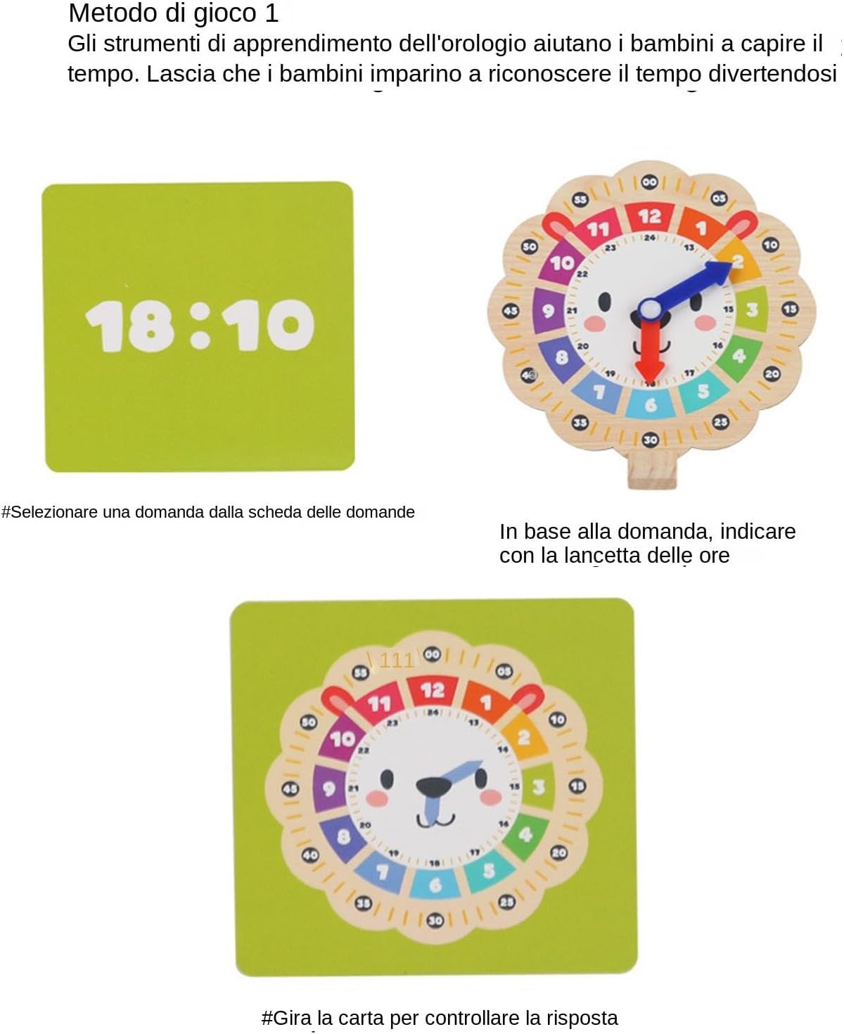 Sviluppo dei sensi: con il nostro orologio didattico i bambini possono sviluppare il senso e l'equilibrio tra lavoro e riposo. Con le sue molteplici scale temporali e le lancette regolabili, i bambini possono impostare diversi programmi per sviluppare capacità di gestione e una corretta comprensione del giocattolo interattivo: rafforza il legame con tuo figlio leggendo correttamente l'ora con il nostro orologio didattico. Adatto per ore di divertimento e interazione, incoraggia il gioco genitore-figlio. Aiuta i bambini a comprendere l'importanza della gestione attraverso operazioni pratiche Migliora l'educazione della prima infanzia: amplia il riconoscimento e scopri diversi colori e scale con questo orologio didattico multifunzionale per bambini. Questo strumento stimola la conoscenza dei colori e dei numeri, giochi di abbinamento e capacità di pensiero logico. Un regalo perfetto per i bambini per migliorare le proprie capacità. Uso durevole: il nostro orologio didattico in legno è costruito con una struttura robusta e presenta superfici lisce e angoli arrotondati per la sicurezza. Realizzato con materiali di alta qualità, ha una buona durata ed è adatto a bambini di età superiore a 3 anni Creativo e unico: con un simpatico design a forma di leone che può attirare rapidamente l'attenzione dei bambini, questo orologio giocattolo a forma di leone con i suoi colori vivaci e le forme vivaci aumenta il divertimento e l'interattività e li rende pronti a partecipare