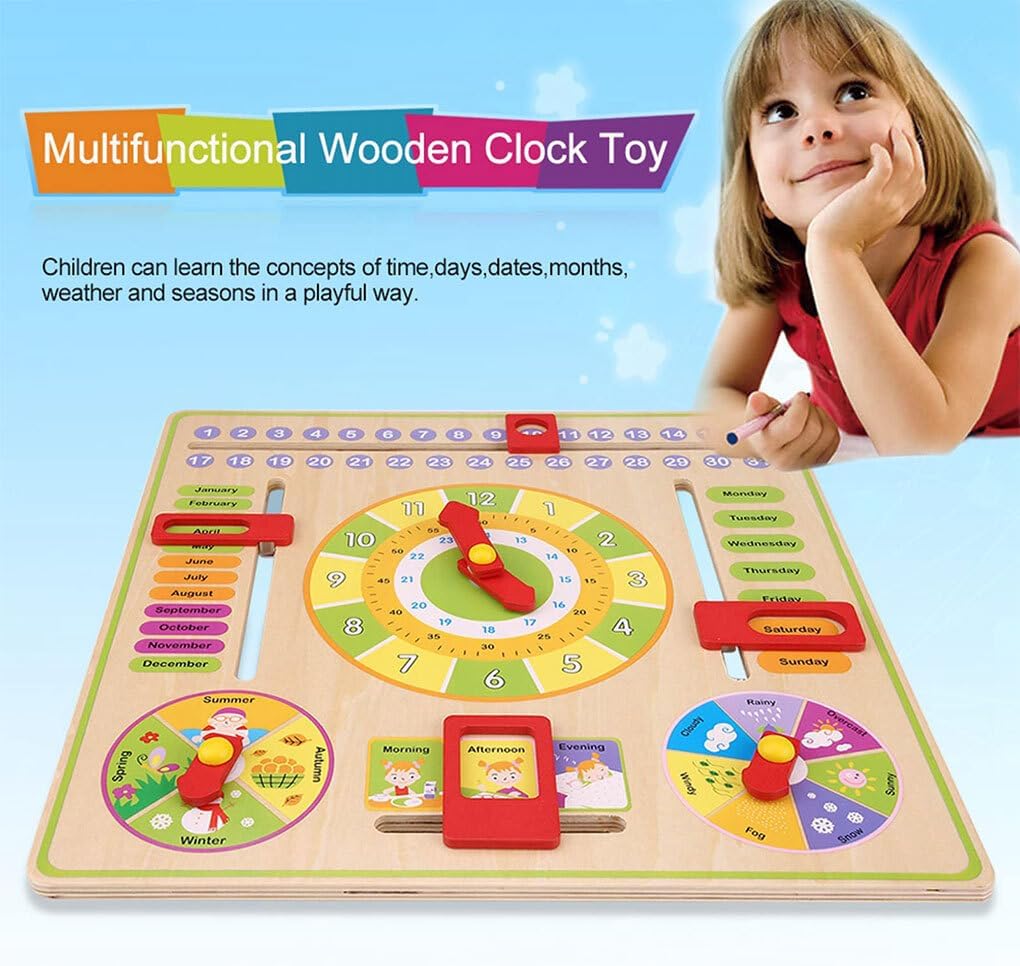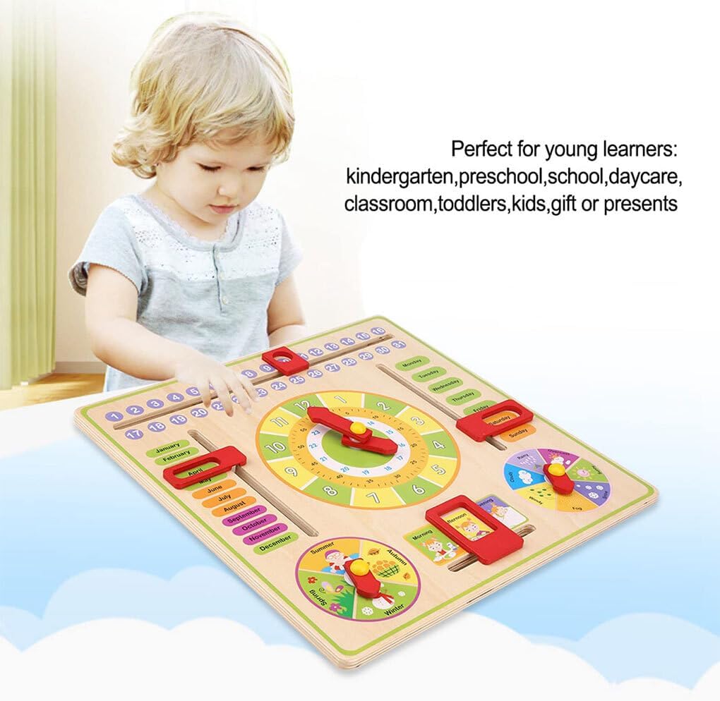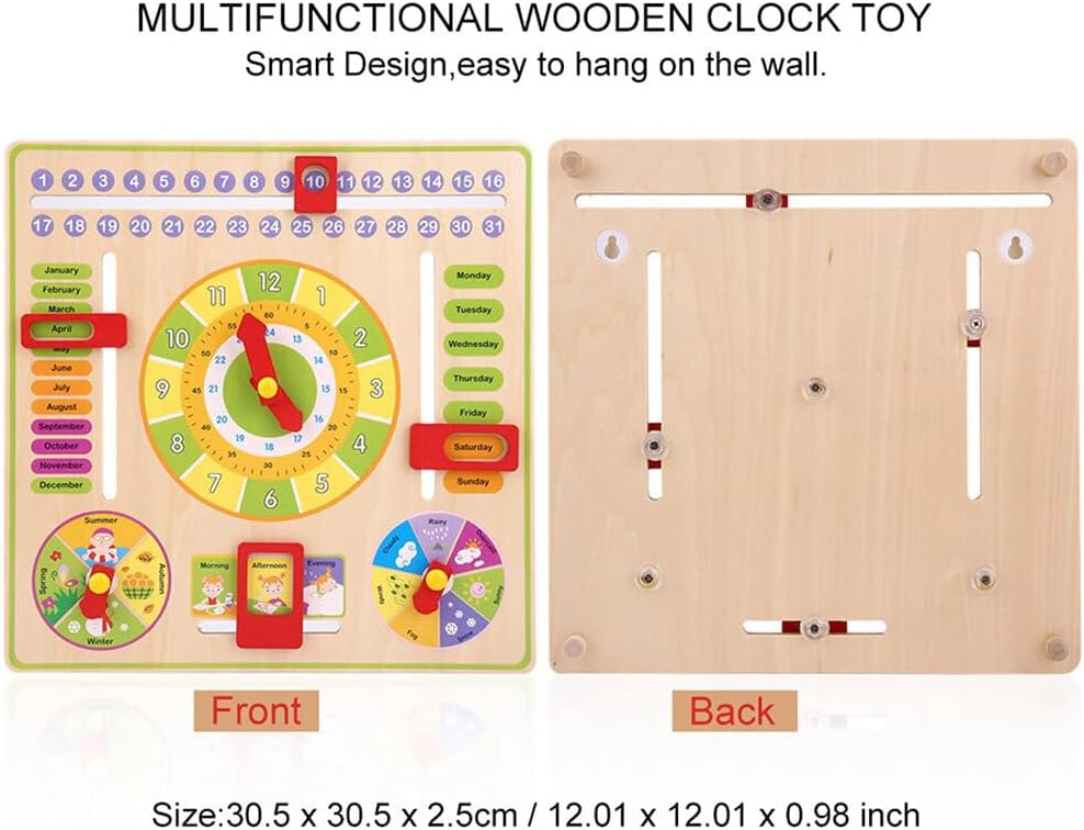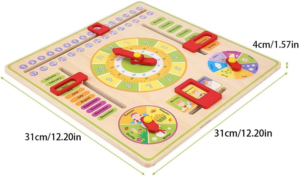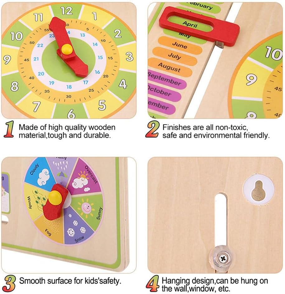 Materiale di qualità: realizzato con materiali in legno di qualità, portatile, resistente agli urti, garantisce un a lungo termine e un ripetuto per i bambini Educazione: imparare in modo giocoso. Aiuta i bambini a cogliere i concetti di tempo, giorni, date, mesi, tempo e stagioni in modo efficace e divertente Sicuro: aspetto liscio e rotondo, non danneggerà le mani. Fornirà ai bambini un di apprendimento sicuro Design sospeso: facile da appendere al muro, facilita l'interazione dei bambini Interessante e attraente: tavola colorata, coinvolgente e attraente per i bambini, che aiuta a catturare la loro attenzione durante l'apprendimento