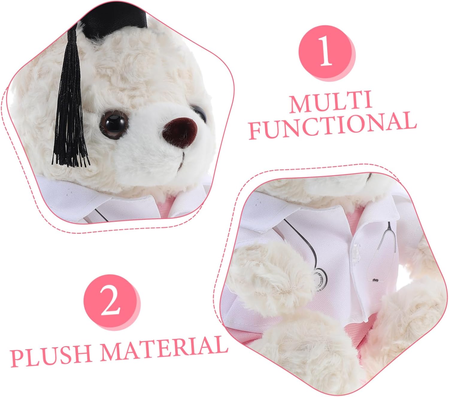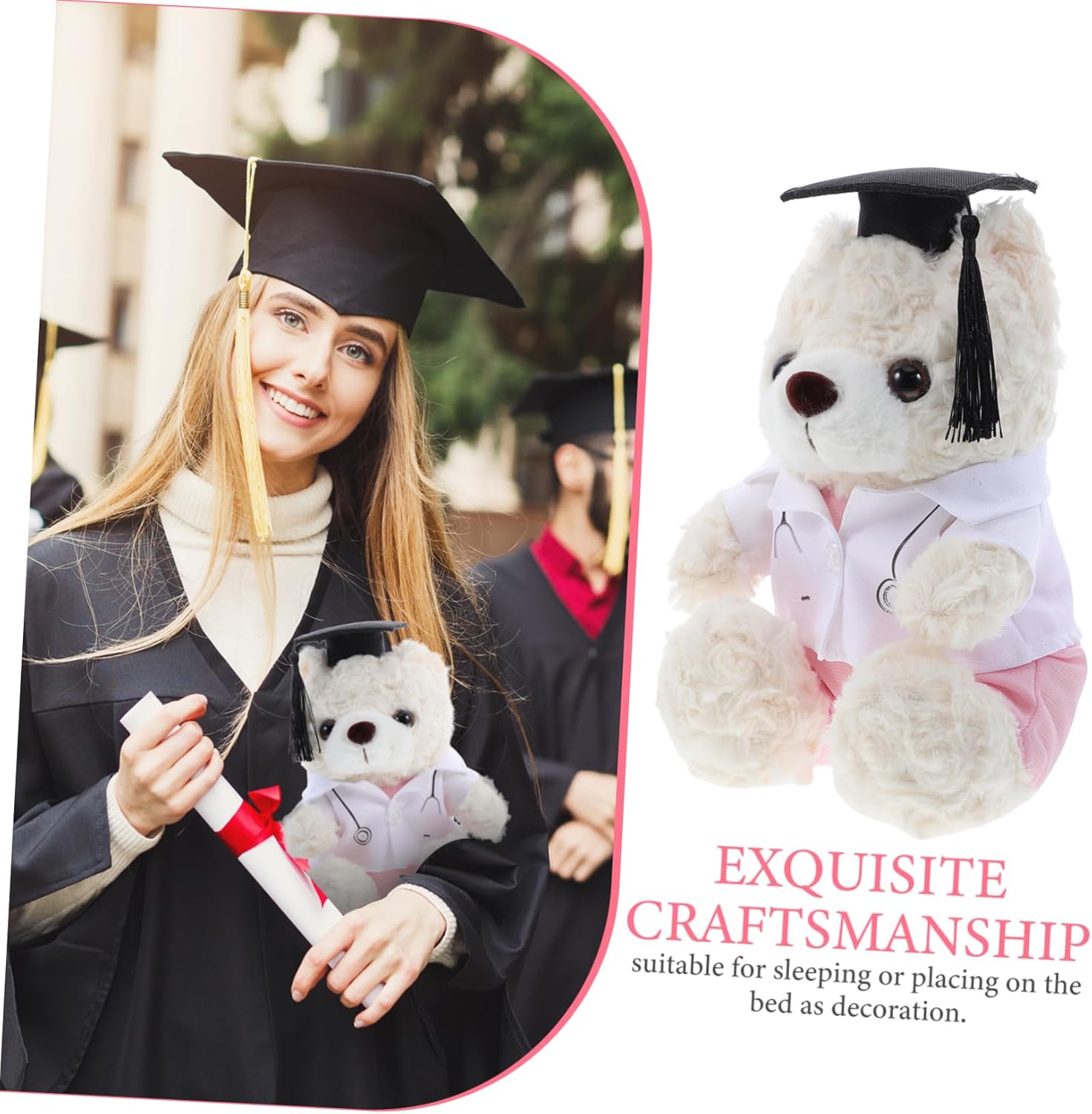 Simpatico design a forma di orsetto: ideale come ricordo e come oggetto fotografico per feste durante la stagione della laurea. Questo adorabile orsetto cattura l'essenza della celebrazione. Materiale morbido peluche: è realizzato in tessuto morbido e offre un tocco morbido, rendendolo ideale per coccolarsi o come pezzo decorativo sul tuo letto. Artigianato dettagliato: l'artigianato meticoloso mette in risalto la conoscenza e lo spirito medico per garantire che ogni dettaglio sia accolto favorevolmente. DESIGN UNICO E DIVERTENTE: il design distintivo aggiunge un elemento di divertimento e giocosità, rendendolo un'aggiunta adorabile a qualsiasi collezione. Uso versatile: questo giocattolo ha molteplici scopi, da un compagno giocoso a uno premuroso per studenti di medicina o operatori sanitari