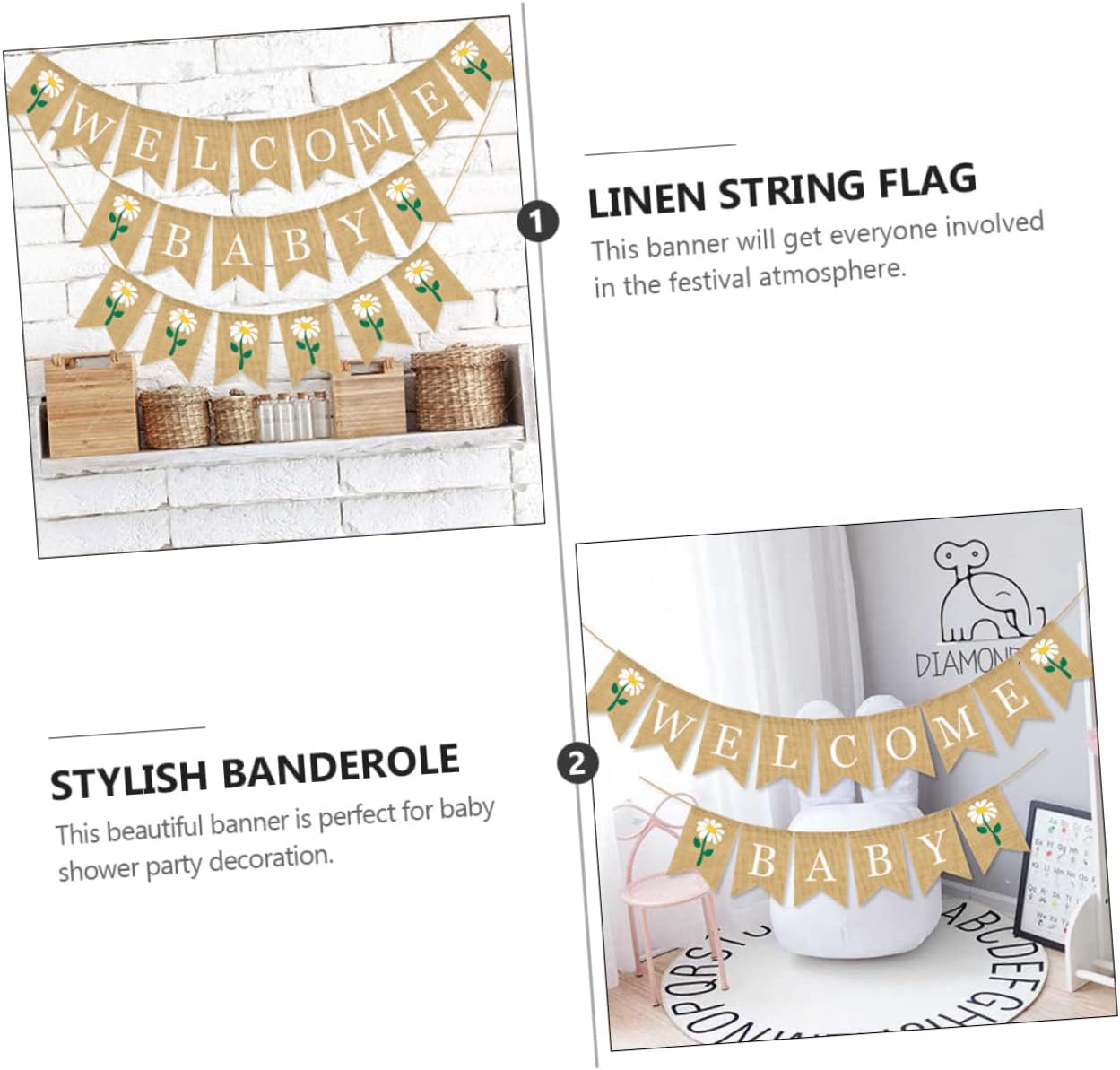 Può fare una memoria calda con la tua famiglia e gli amici. Questa bandiera sospesa ti aiuterà a creare una buona atmosfera da festa. Questo banner otterrà tutti coinvolti nell'atmosfera del festival. Questo bellissimo banner è perfetto per la decorazione della festa per bambini. È una decorazione interna ed esterna, semplice ma significativa.