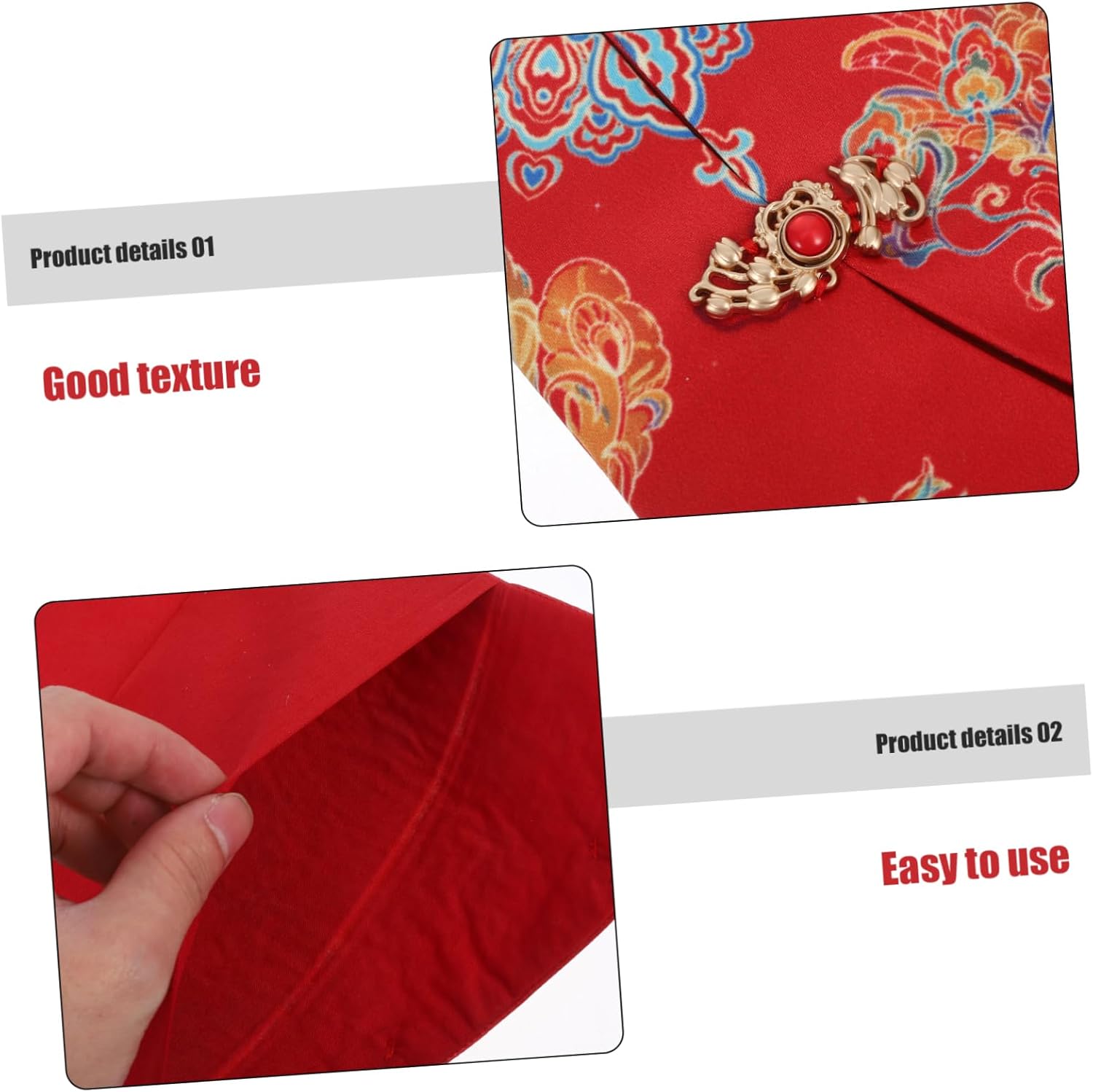 Elegante tessuto cinese: evidenzia il fascino della cultura tradizionale cinese con il suo elegante design del tessuto. Drago significativo e Phoenix: rappresenta la felicità e la buona fortuna, rendendolo un ponderato. Levette in uscita: il design della chiusura a levetta semplifica il trasporto e l'utilizzo. Regali sinceri: ideale per dare carte o soldi fortunati a bambini, genitori o nonni, augurandoli bene. Versatilità festiva: ottimo per matrimoni, compleanni, festival e altre occasioni speciali per condividere auguri e creare un'atmosfera festosa.