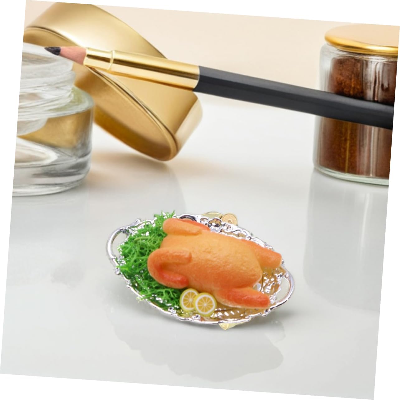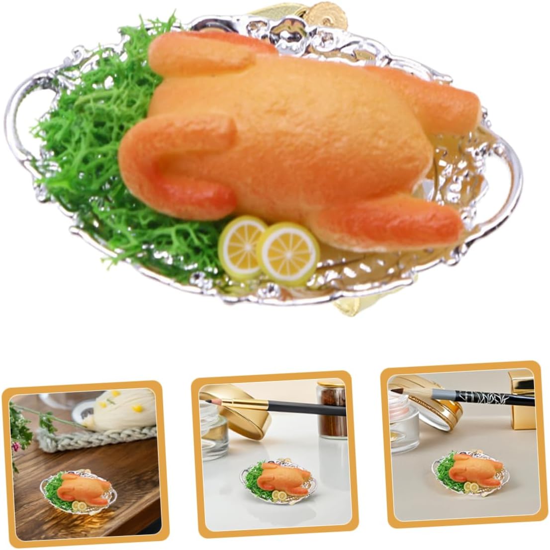 Bordi sicuri: progettati con bordi lisci e arrotondati per ridurre al minimo il rischio di lesioni accidentali durante l'uso, rendendolo ideale per miniature di case delle bambole, cene di Natale e mini modelli di pollo fritto. Multiuso: adatto per cucine di case delle bambole, decorazioni natalizie o come aggiunta unica a collezioni di cibo in miniatura, decorazioni per cucine di case delle bambole, oggetti di scena finti per cibo. Superficie resistente allo sbiadimento: mantiene i suoi colori vivaci e l'aspetto realistico anche dopo un uso a lungo termine, ideale per la decorazione a lungo termine delle case delle bambole, come mini modello di pollo fritto o come modello alimentare per casa delle bambole Design realistico: presenta dettagli intricati che imitano la consistenza e l'aspetto di un vero pollo fritto, aggiungendo autenticità alla decorazione della cucina della casa delle bambole, al modello di cibo di simulazione e al pollo fritto della casa delle bambole Facile da usare: grazie e i design compatti possono facilmente afferrarsi e integrarsi in scenari di gioco di ruolo, modello di pollo di casa delle bambole, oggetti di scena di cibo artificiale