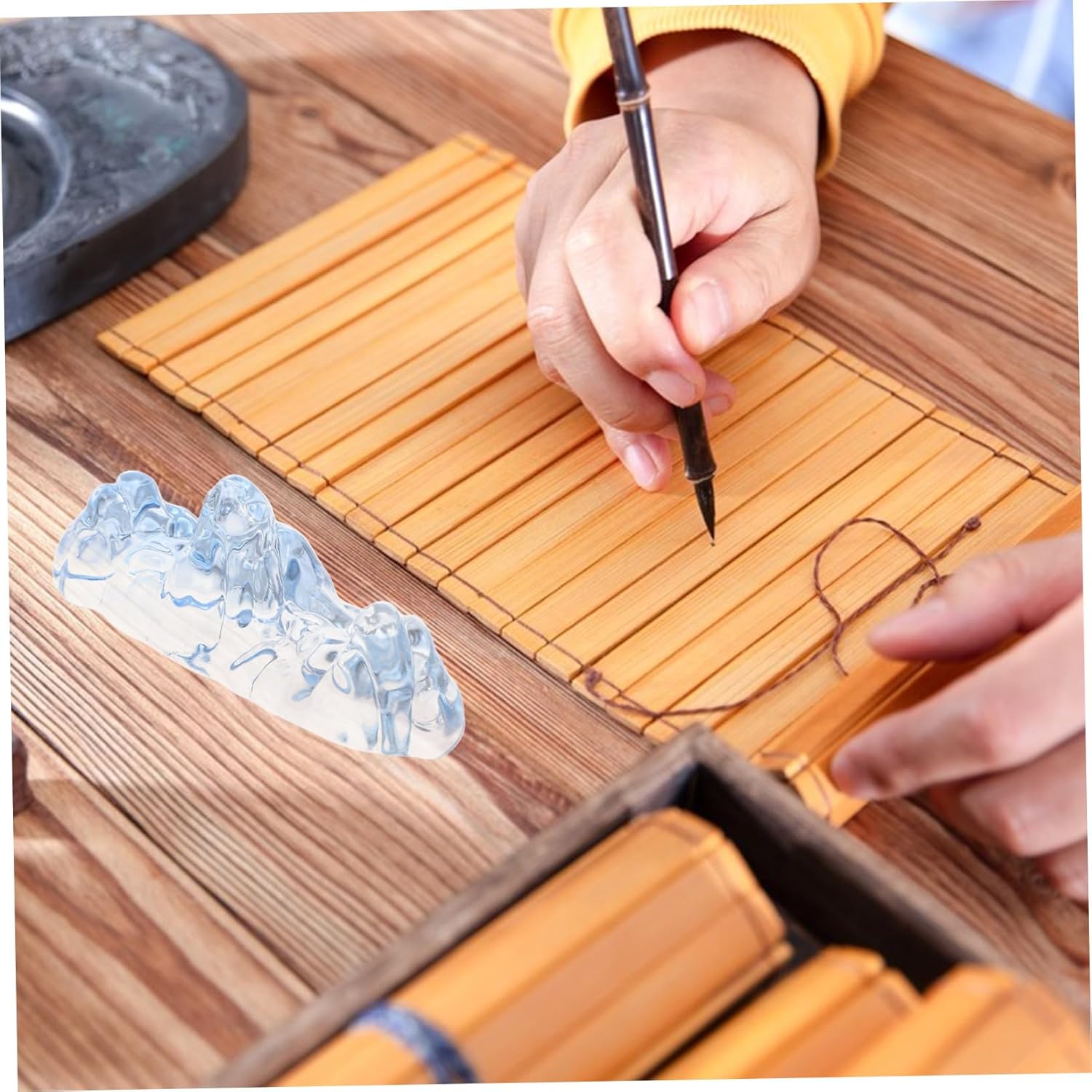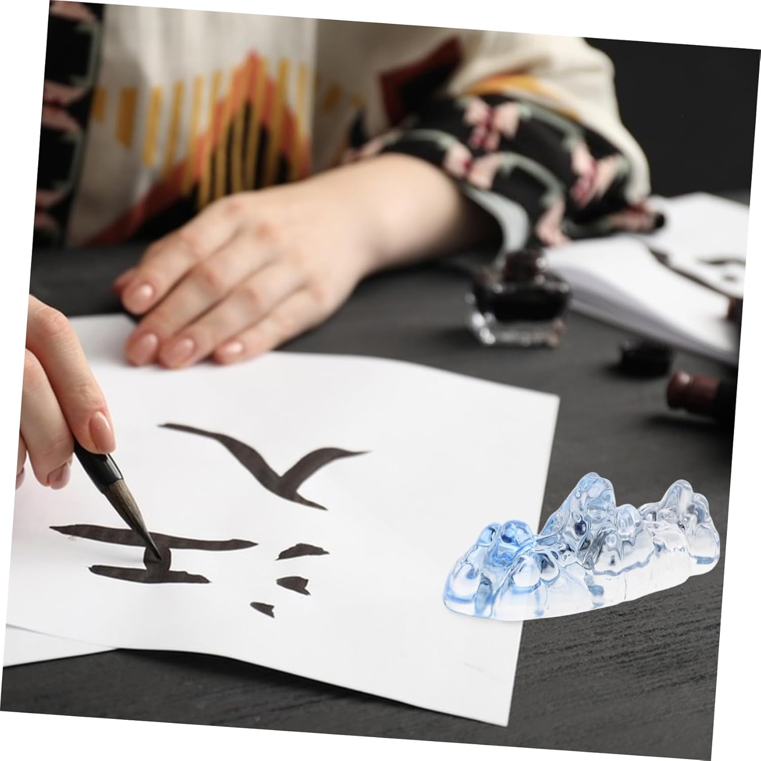 Produttività migliorata: questo esclusivo dispositivo per calligrafia promuove la precisione della scrittura e i movimenti del pennello ancorando i fogli di pratica durante le sessioni artistiche, strumenti per artisti di calligrafia, portapennelli per scrivere Strumento per calligrafia ispiratrice: l'accessorio per calligrafia cinese funge da fermacarte e come stimolatore della creatività, ispirando la tua pratica di calligrafia e pittura, fermacarte per la pratica della calligrafia, fermacarte decorativo Vassoio portapennelli multiuso: funziona come poggiapennello e portapennello per acquerello, mantenendo i tuoi strumenti accessibili e prevenendo la comparsa di macchie di inchiostro superfici del tavolo Dal tradizionale al moderno: combina gli strumenti di calligrafia tradizionali con l'arte del vetro contemporanea, offrendo un elegante portaspazzole che piacerà agli amanti dell'artigianato tradizionale e moderno, supporto per il resto della calligrafia, strumento per calligrafia Ispirazione cristallina: questo fermacarte per calligrafia è realizzato in vetro cristallo crea un effetto realistico di catena montuosa e ispira i tuoi sforzi di calligrafia e disegno con la sua bellezza naturale, strumenti di calligrafia tradizionali e strumenti di scrittura cinese