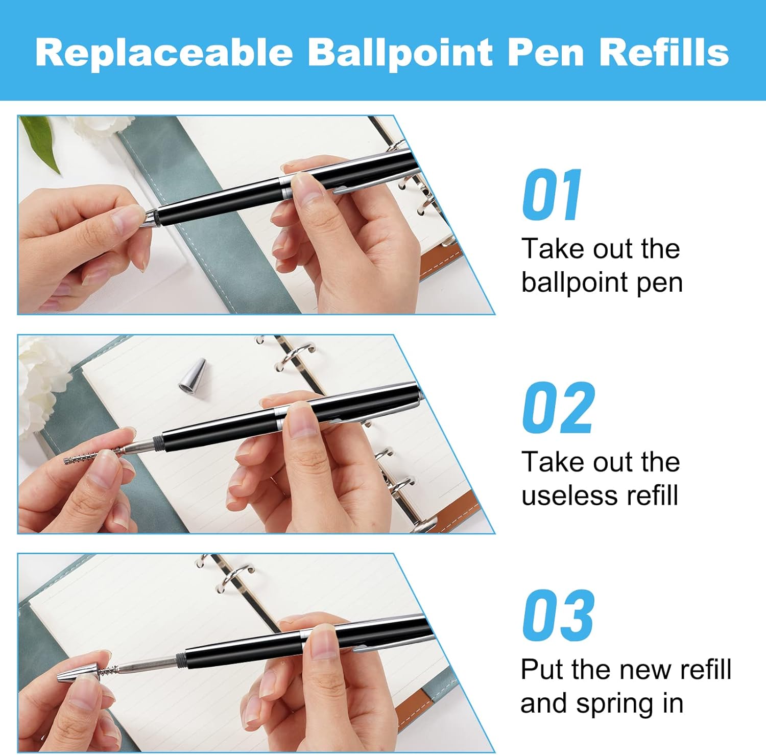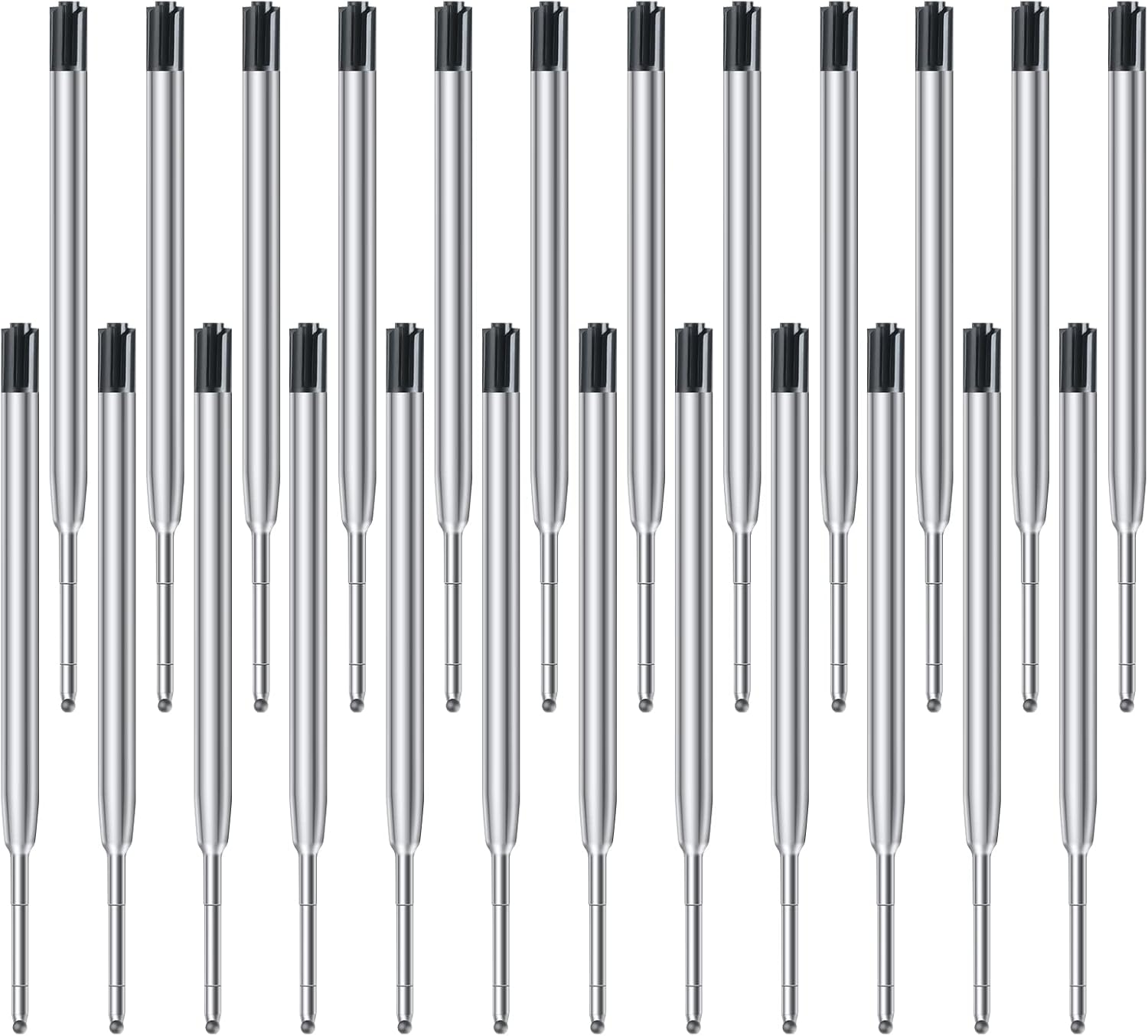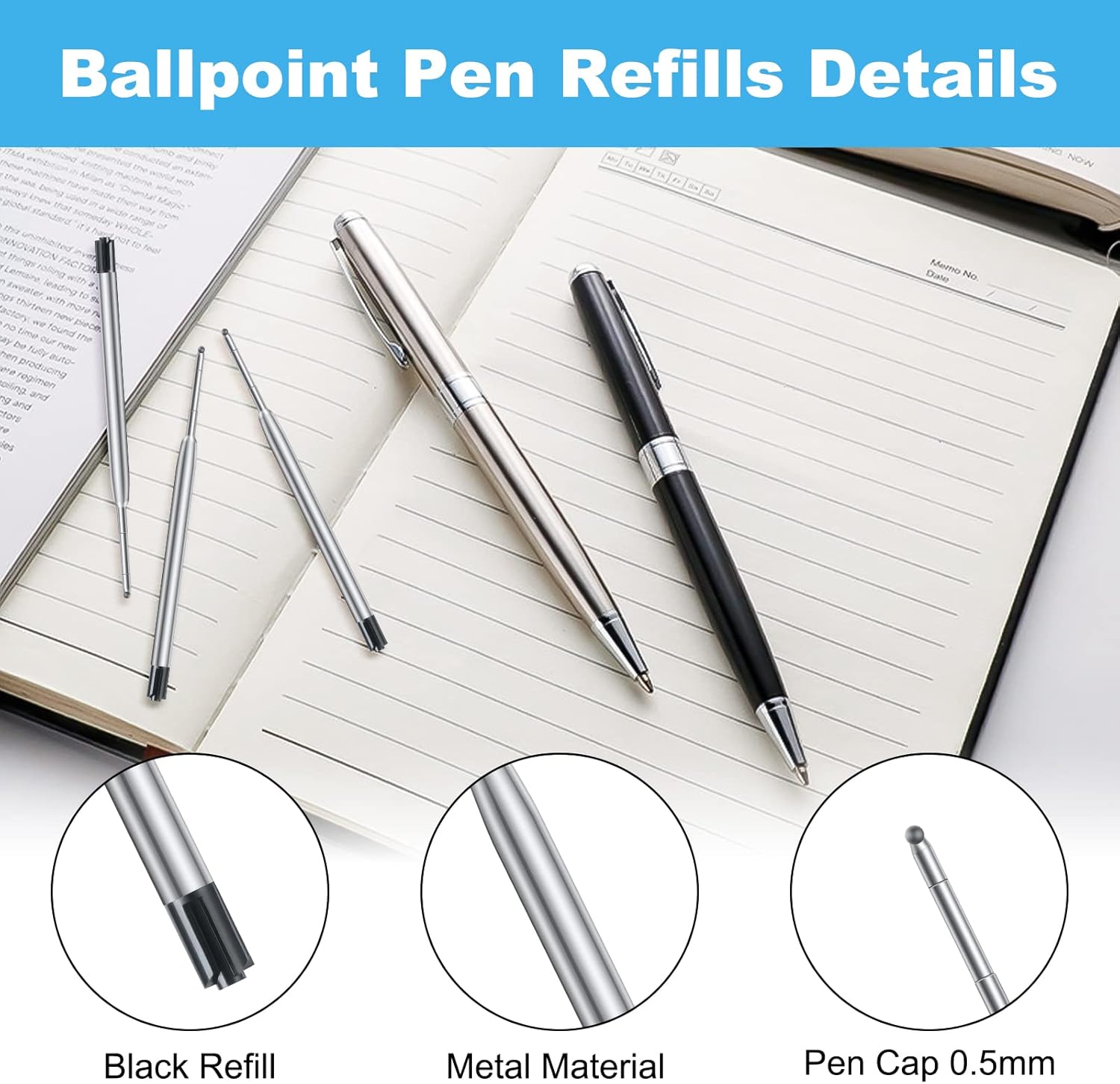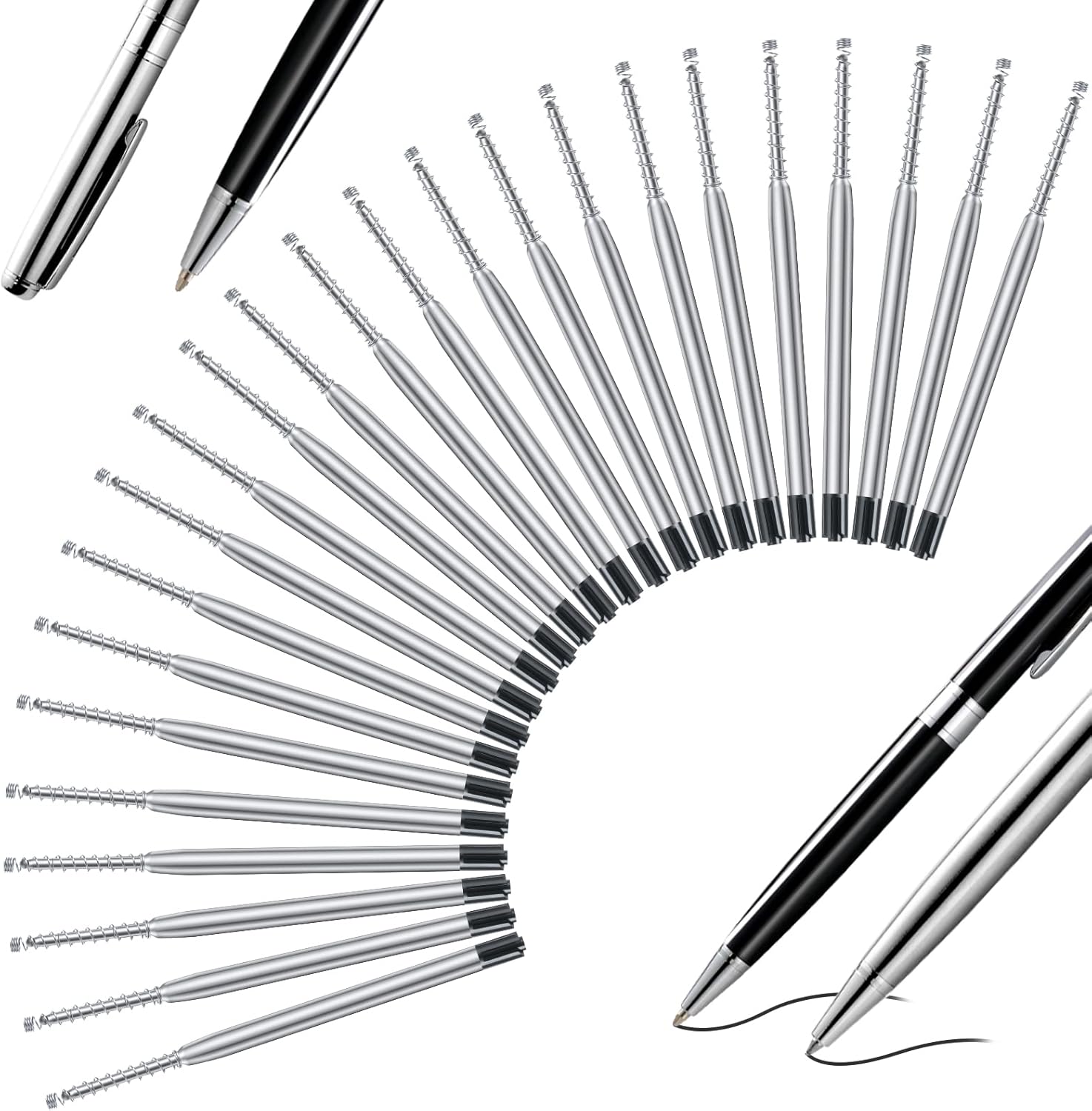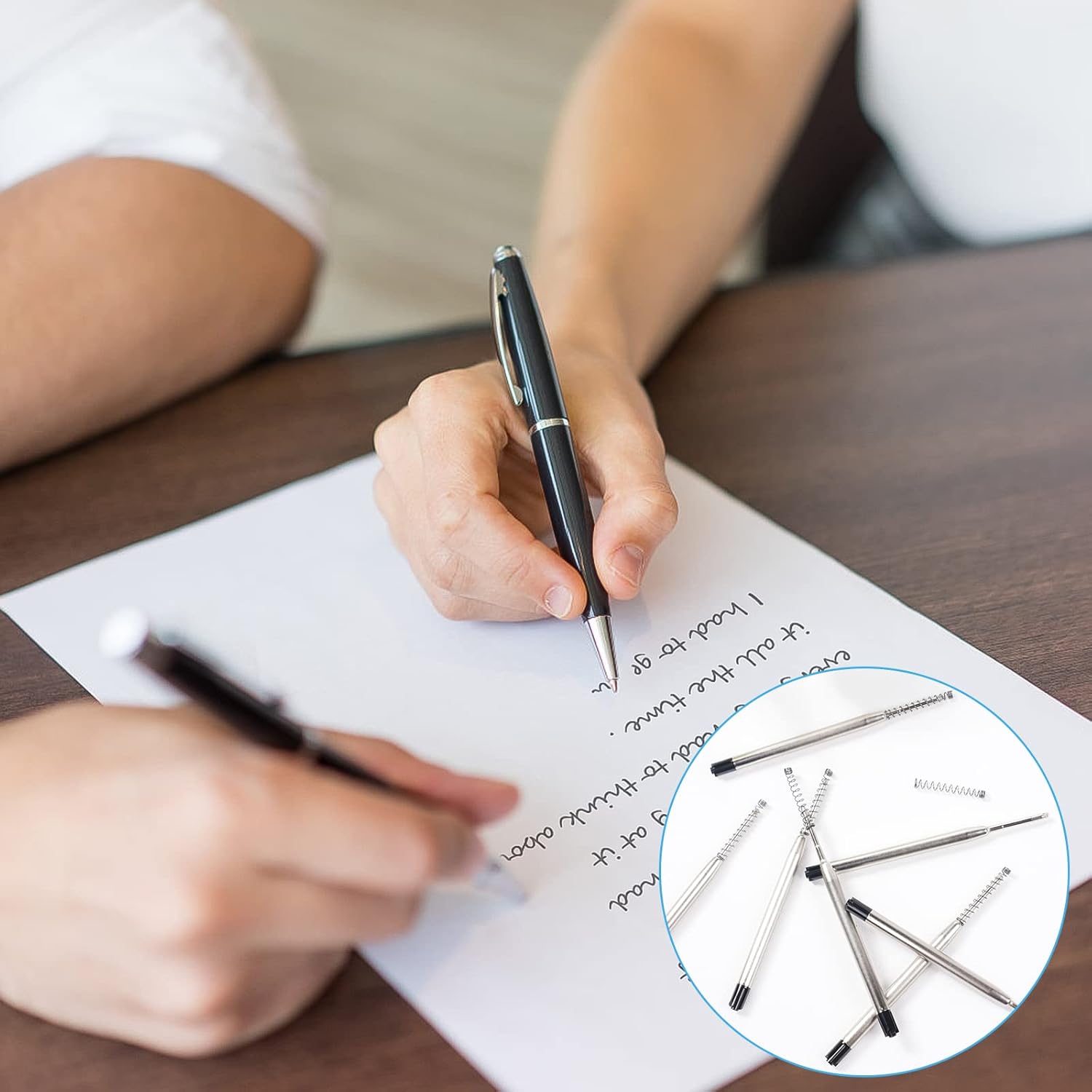 【24 Ricariche di Ricambio】24 ricariche di inchiostro blu/nero con molla. Abbastanza per il tuo uso quotidiano. Puoi preparare alcune ricariche per penne a sfera nel tuo studio o in ufficio per una facile sostituzione. 【Scrittura Fluida e Durevole】La ricarica della penna a sfera in metallo è realizzata in materiale metallico, con una superficie brillante, una buona consistenza, un design di grande capacità e può essere scritta a lungo; la punta della ricarica è liscia e l'inchiostro non lo farà fluiscono in modo intermittente; fornendoti un'esperienza di scrittura fluida. 【Facile da Trasportare】Le ricariche sono lunghe 10 cm/3,94 pollici e pesano 3 g, il che le rende facili da trasportare; puoi tenerle nello studio o in ufficio per sostituirle quando necessario. 【Inchiostro ad Asciugatura Rapida】La ricarica si asciuga rapidamente dopo la scrittura, quindi assicurati che la tua scrittura sia il più liscia possibile senza sbiadire, fuoriuscire e sbavare, il che aiuta anche a mantenere pulite mani e polsini. 【Applicabilità】Il diametro dell'altra estremità del pennino è di 6 mm, queste ricariche per penne a sfera sono adatte per la maggior parte delle penne a sfera, compatibili con Parker, Eraser, Sonic, Star, Zen, Giant, Trendy, Vic, Vino, ecc., che possono fornirti un buon servizio. (Nota: controlla lo stile della ricarica prima di ordinare per assicurarti che questa ricarica si adatti alla tua penna a sfera.)