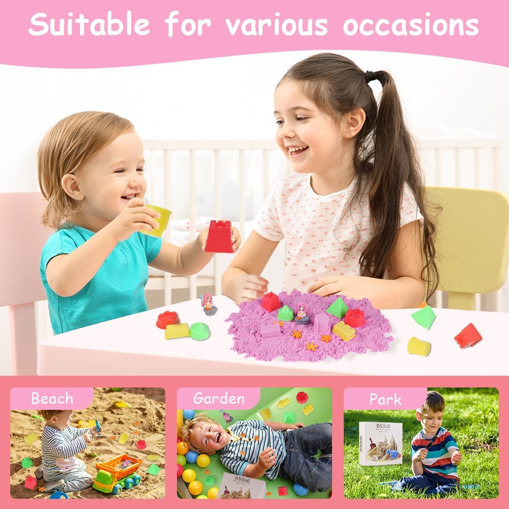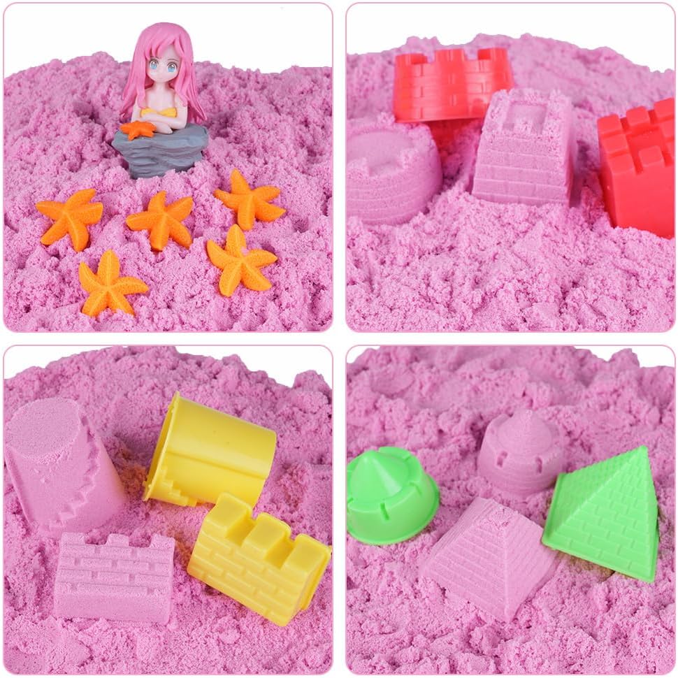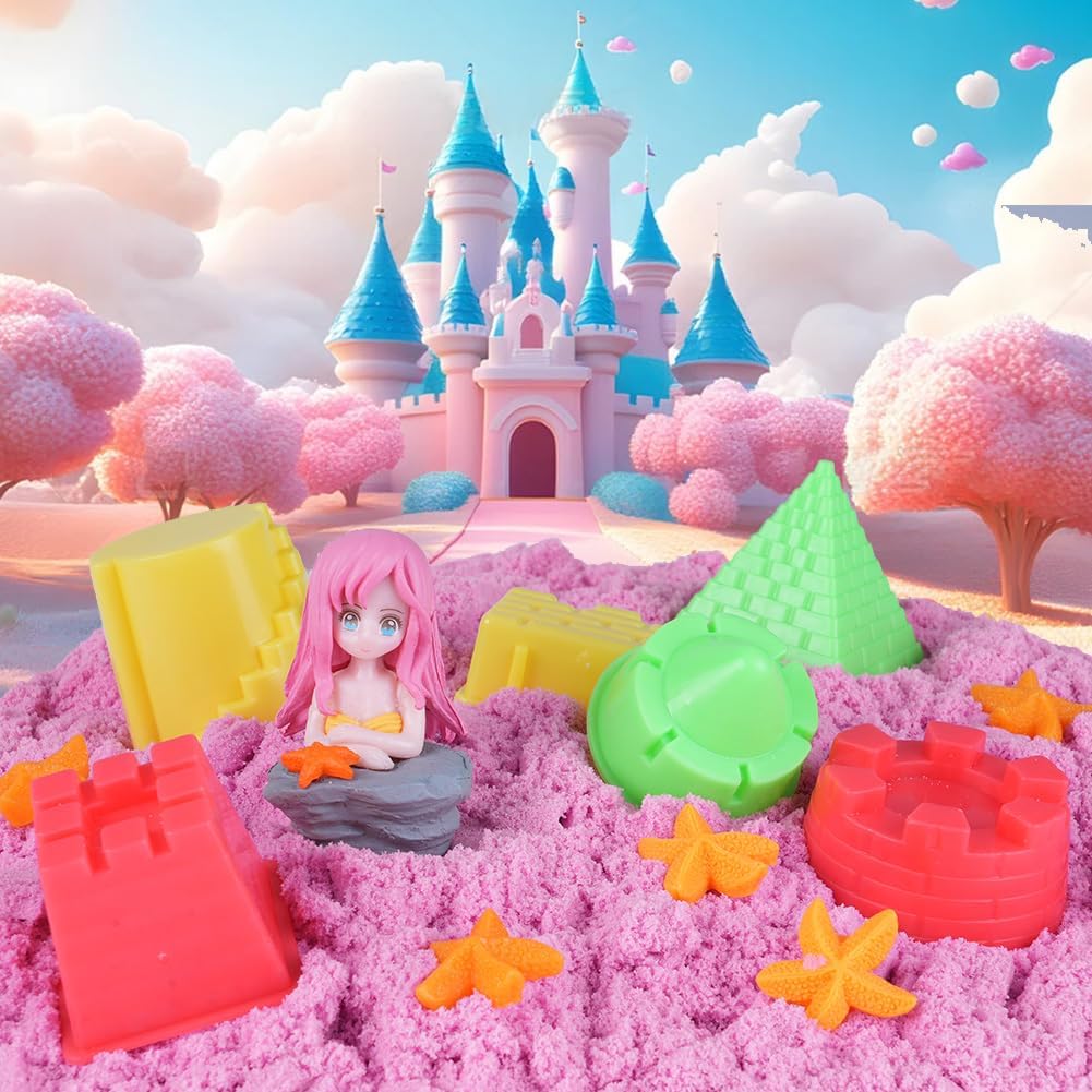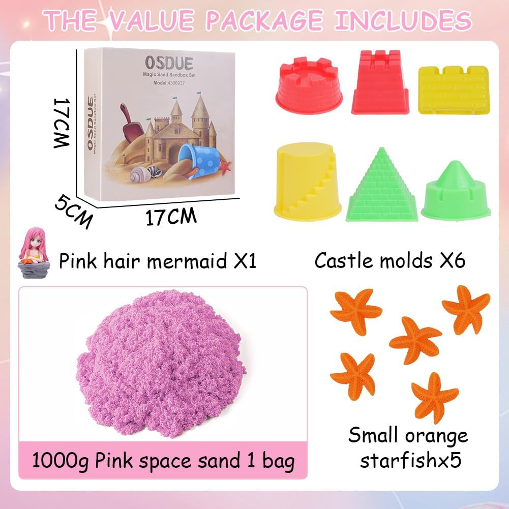[Set da 13 e 51 pezzi]: Il primo set di giocattoli di sabbia magica contiene: 0,48 kg di sabbia spaziale rosa*1+stampo per castello*10 (colore casuale)+sirena con capelli rosa*1+piccola stella marina arancione*1; 1 kg di sabbia spaziale rosa+stampo cavo*10+stampo castello*10+stampo oceano*12+coltello e forchetta*5+stella marina arancione*3+lecca-lecca*3+pala di sabbia*1+cilindro gonfiabile*1+cuore arcobaleno *1+ sirena dai capelli rosa*1+unicorno rosa*1+unicorno viola*1. (colore casuale) [Tema Animazione Princess Ocean] La nostra sabbia colorata dinamica contiene più temi, consentendo ai bambini di creare un mondo da favola realistico, scene di castelli sulla spiaggia, scene di animazione e scene di principesse, ecc., I bambini possono trascorrere più tempo a creare mondi di gioco, arricchendo l'immaginazione dei bambini. [Qualità eccellente] La sabbia dei nostri bambini è fatta di sabbia naturale, con una consistenza morbida e delicata, facile da modellare, antiaderente, non facile da asciugare e non sbiadisce se immersa nell'acqua. Il suo ingrediente principale è la sabbia di quarzo; il prodotto è sicuro e non tossico, non provoca allergie ed è adatto all'uso da parte di bambini di età superiore a 3 anni. I bambini di età superiore a 1 anno e mezzo possono utilizzarlo sotto la supervisione di un adulto. [Significato educativo unico] Questo giocattolo di sabbia magica per bambini combina il gioco sensoriale con lo sviluppo delle abilità. I bambini possono costruire il proprio castello magico afferrando, pizzicando e impastando la sabbia, coltivando la coordinazione occhio-mano, le capacità motorie e la creatività regalo per bambini, immaginazione e sollievo dallo stress; inoltre, può anche migliorare la comunicazione diretta e l'affetto tra te e i tuoi figli. [Riutilizzabile]: questo set di sabbia magica ha la consistenza e la fluidità della sabbia ordinaria e la plasticità dell'argilla da gioco. È facile da modellare e non si attacca né si asciuga rapidamente. Le particelle di sabbia morbide e fini sono piccole e appiccicose, inodore e riutilizzabile; e può essere scelto per l'uso in spiaggia, in piscina, in giardino, al parco o in viaggio, facile da pulire e portatile.