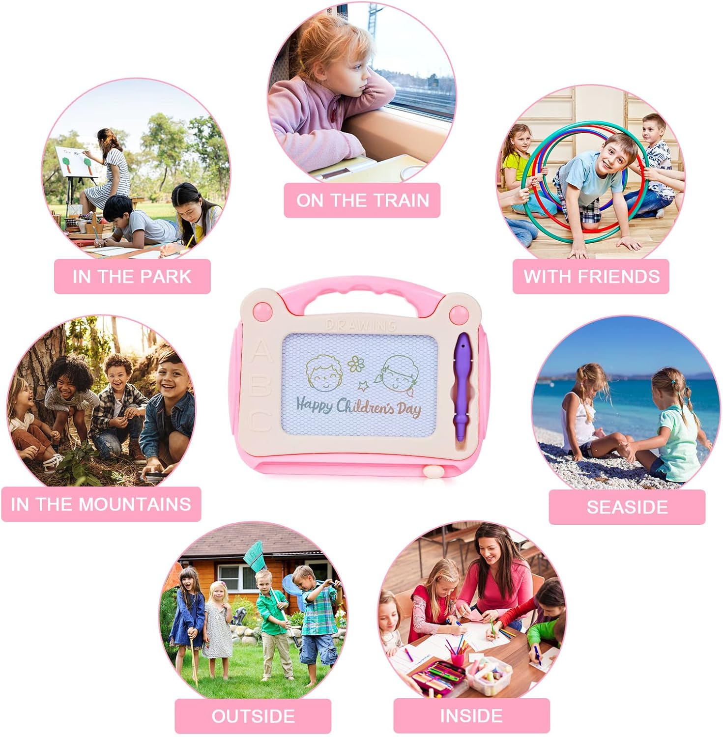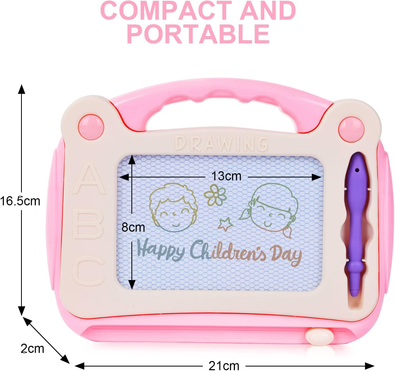 🎨 【Educativo】 - Ispira la creatività e l'immaginazione di tuo figlio nel tavolo da disegno magnetico, Esercita la coordinazione occhio-mano e la capacità di percezione colorata, Impara la cooperazione con la lavagna. Amalo, dagli il meglio. 🎨【Pulito】- Se tuo figlio ha l'abitudine di disegnare nei posti sbagliati, questa tavola per scarabocchi ti farà risparmiare tempo e frustrazione. Non fare mai confusione, senza inchiostro, senza vernice, pulito e sicuro per i bambini. Non preoccuparti più di sporcare le pareti. 🎨 【Ispira la creatività nei bambini】 - Questo tavolo da disegno magnetico aiuta a stimolare la creatività, l'immaginazione e l'abilità artistica dei bambini. Il tuo bambino può esprimere le proprie idee con disegni, esercitarsi con le lettere e con l'aritmetica attraverso gli scarabocchi! È un giocattolo ideale che impedisce ai bambini di dedicarsi ai giochi elettronici. 🎨 【Facile da cancellare】 - Questa lavagna magnetica da pittura con gomma scorrevole è progettata per una cancellazione rapida, consentendo ai bambini di far scorrere e cancellare delicatamente i loro disegni. Inoltre, ha una forma carina ed ergonomica per una facile maneggevolezza. 🎨 【Dimensioni portatili】 - Questa lavagna per scarabocchi è realizzata in dimensioni portatili con un'area di disegno di 13 x 8 cm. La dimensione dell'articolo è 21 x 16,5 cm. Inoltre, la tavola per scarabocchi è leggera, facile da portare ovunque, ideale per aeroporti, viaggi su strada, compleanni e come regalo di Natale per bambine e bambini.