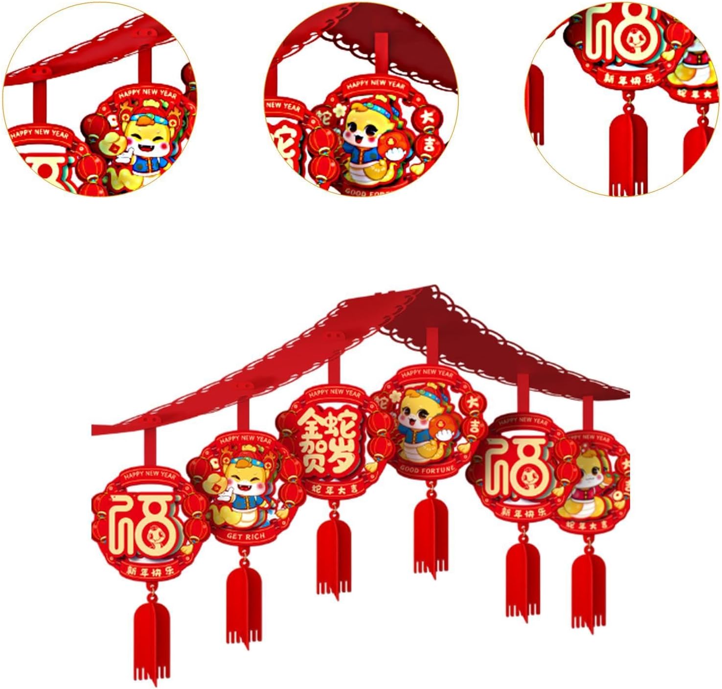 【Design】: L'ornamento dell'anno del serpente ha una forma unica e un motivo animale, che è visivo e aggiunge un'atmosfera festosa. 【Ampia applicazione】: Puoi appendere questa decorazione sospesa con caratteri cinesi benedicenti in soggiorno, camera da letto, porta, ufficio e altri luoghi per aggiungere un tocco di colore brillante alla stanza. la carta, è morbida, resistente all'usura, non facile da deformare e ha una lunga durata. 【Decorazione】: la decorazione del Festival di Primavera non è solo un ornamento tradizionale, ma anche una decorazione bella e di buon auspicio per la casa, i festival e le feste