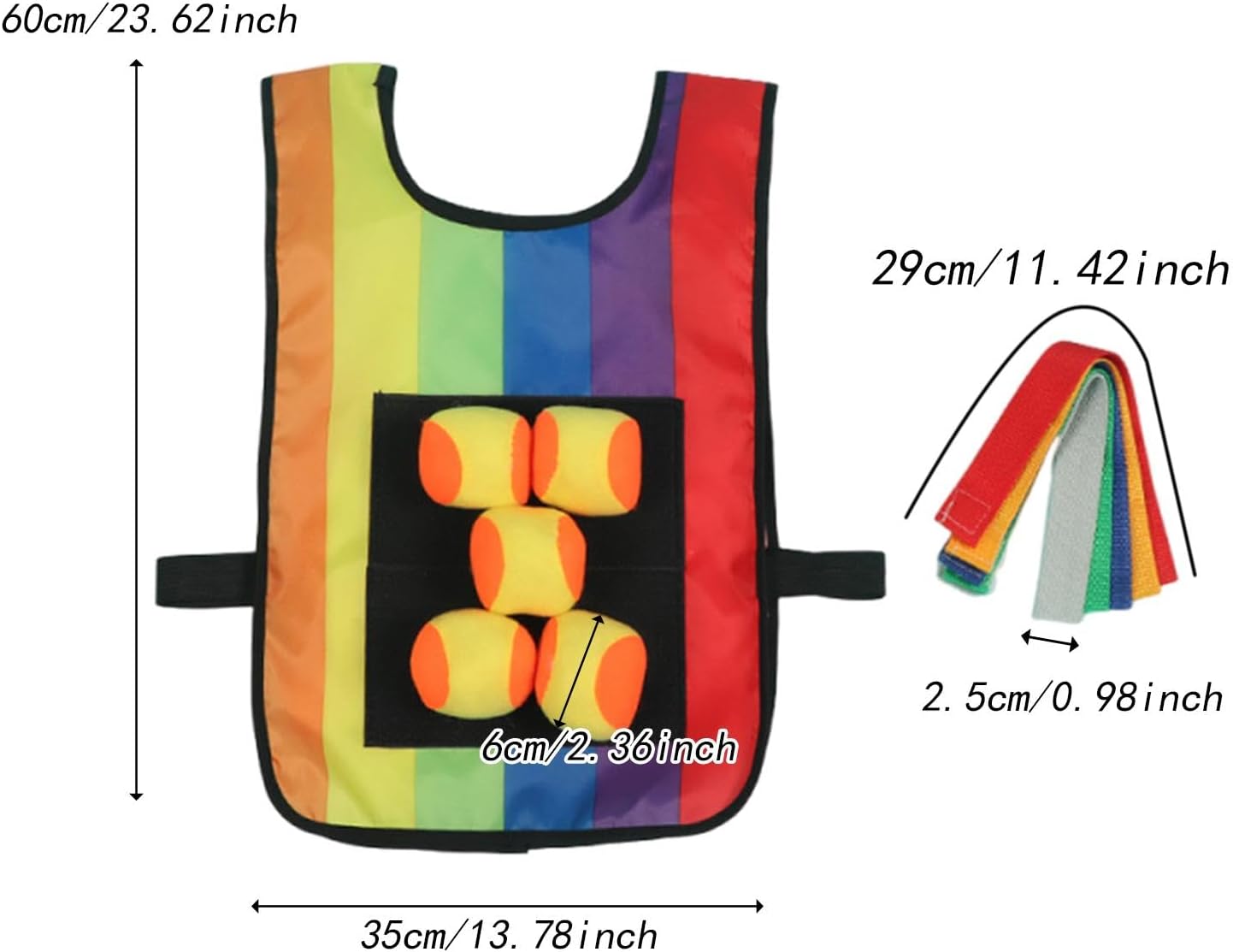 【Materiale di qualità】: Realizzato in tessuto Oxford di qualità, questo gilet adesivo è progettato per essere robusto e resistente all'usura. La sua struttura robusta e resistente agli strappi garantisce la resistenza all'uso ripetuto nel tempo. 【Versatile e un'ottima idea regalo】: Ideale per vari contesti come parchi giochi, , cortili, cortili e attività all'aperto. Questo gioco di lancio è anche un ottimo regalo per compleanni o feste per deliziare familiari e amici. 【Divertente gioco per famiglie】: goditi un gameplay semplice ma coinvolgente con questi giocattoli da dodgeball. Basta lanciare la palla e schivarla o prenderla, per un divertimento senza fine per te e la tua famiglia. 【Dimensioni compatte e portatili】: il gilet da caccia misura 35 cm x 60 cm / 13,78 pollici x 23,62 pollici, offrendo una struttura compatta, leggera e facile da trasportare ovunque tu vada 【Design luminoso e facile da indossare】: caratterizzato da un design luminoso e colorato, questo gilet da gioco con palla da lancio include elastici sui lati per indossarlo e rimuoverlo facilmente