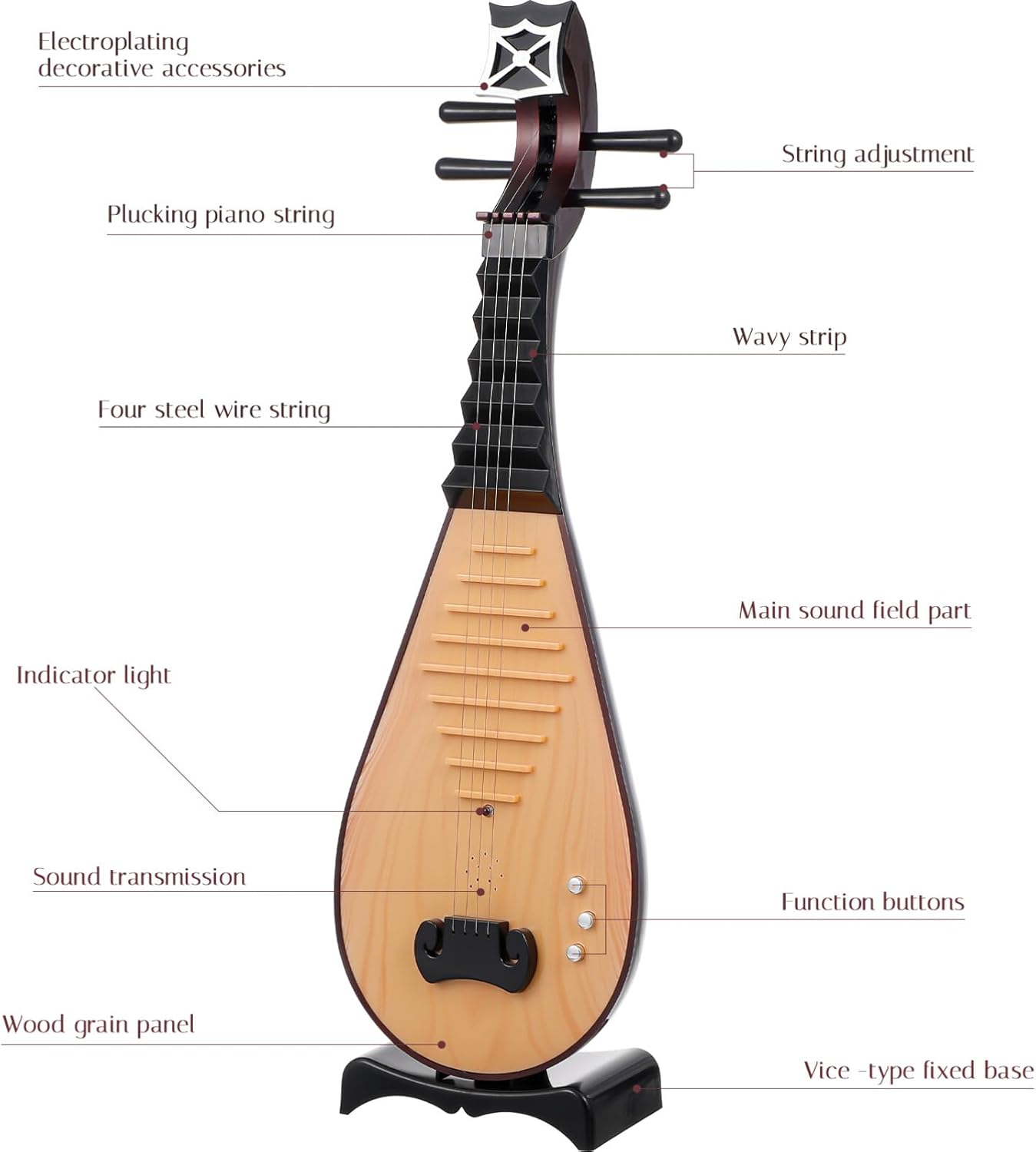 【Alta simulazione】 Questo modello Pipa è un modello di strumento a corda tradizionale cinese altamente simulato, con un aspetto squisito e una lavorazione dettagliata, che ti consente di sperimentare il vero fascino della cultura cinese. 【Decorazione multifunzionale】 Questo modello può essere utilizzato non solo come decorazione domestica, ma anche per spettacoli di danza, lezioni di musica e altre occasioni, rendendolo una decorazione molto pratica. Design ad alta simulazione, solo un vero liuto cinese. Nota: tieni presente che questo prodotto è un modello, non un vero strumento Pipa. Se devi acquistare un vero strumento Pipa, cerca i prodotti correlati, ma è comunque realizzato con materiali per una lunga durata. 【Artigianato raffinato】 Questo modello Pipa è realizzato con materiali, con lavorazione squisita e tocco confortevole, che ti consentono di sperimentare la vera qualità artistica. Servizio clienti Offriamo il servizio clienti. Se hai domande o suggerimenti sui nostri prodotti, non esitare a contattarci e saremo felici di servirti. La raffinata lavorazione artigianale e l'attenzione al design dei dettagli lo rendono robusto e non facile da disintegrare o deformare