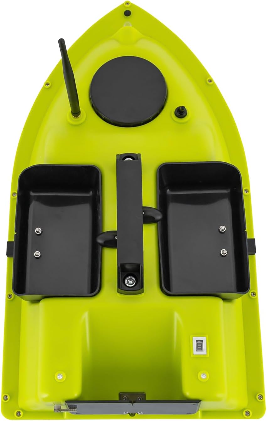 【Potente azionamento】- Con due motori da 52 W (velocità massima di 10.000 giri/min, velocità di guida 5,91 ft/s) e 99 punti di traina consente una pesca precisa. I tre contenitori (capacità di 4,4 libbre) per mais, esche o esche artificiali garantiscono efficaci spotting Funzione notturna: con luci notturne anteriori e posteriori, facilita l'osservazione della barca al buio e supporta il controllo della rotta per poter pescare efficacemente anche in condizioni di scarsa luminosità Design intelligente e sicuro: lo scafo aerodinamico e completamente sigillato riduce la resistenza all'acqua e aumenta la stabilità. La correzione automatica dell'imbardatura, l'allarme di perdita di connessione e la funzione di ritorno a batteria scarica garantiscono sicurezza. Il telecomando impermeabile (portata 1968 ft) con schermo LCD mostra i dati di stato come il segnale GPS e la distanza Batteria a lunga durata e facilità di trasporto: due batterie agli ioni di litio da 5200 mAh (ogni 90 minuti di autonomia) supportano un uso tutto il giorno. Con un peso di soli 4,4 libbre, manico portatile e borsa per il trasporto inclusa, è ideale per gite di pesca all'aperto in fiumi, laghi e mari Design robusto in ABS. Realizzato in ABS di alta qualità con processo di sabbiatura, la mangiatoia è antigraffio, impermeabile, resistente all'usura e alla corrosione, ideale per un uso a lungo termine in diverse acque.