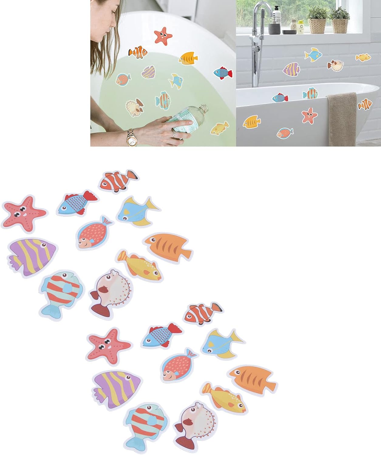 [Design per bambini: con adorabili disegni di pesce colorati, queste decalcomanie trasformano il tempo del bagno in una divertente avventura subacquea che i bambini amano. I vibranti schemi di vita marina catturano l'attenzione dei bambini, rendendoli più cooperativi durante il bagno [Sicurezza anti -slittamento] Questi adesivi da bagno forniscono una superficie non di colpa che impedisce efficacemente le sciocchezze pericolose e le cadute in ambienti bagni bagnati. La finitura opaca strutturata garantisce una trazione superiore anche quando è bagnata [Facile da usare e mantenere] il supporto autoadesivo rende l'installazione rapida e semplice senza alcuna colla disordinata. Questi adesivi senza odore sono incredibilmente facili da pulire, basta pulire con un panno umido. rimangono saldamente in atto durante l'uso ma possono essere rimossi [Materiale] realizzato con materiale in PVC di alto grado completamente sicuro, questi adesivi sono innocui per neonati e bambini. Sono impermeabili, resistenti e resistenti all'usura quotidiana mantenendo la loro resistenza adesiva nel tempo [Pacchetto] Ricevi 2 set completi contenenti 20 adesivi da bagno di qualità premium totale (10 per set). La quantità generosa consente una decorazione creativa del bagno e un uso a lungo termine, con extra disponibili per la sostituzione quando necessario