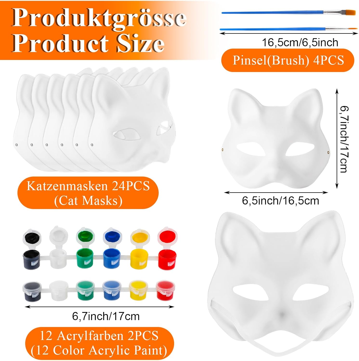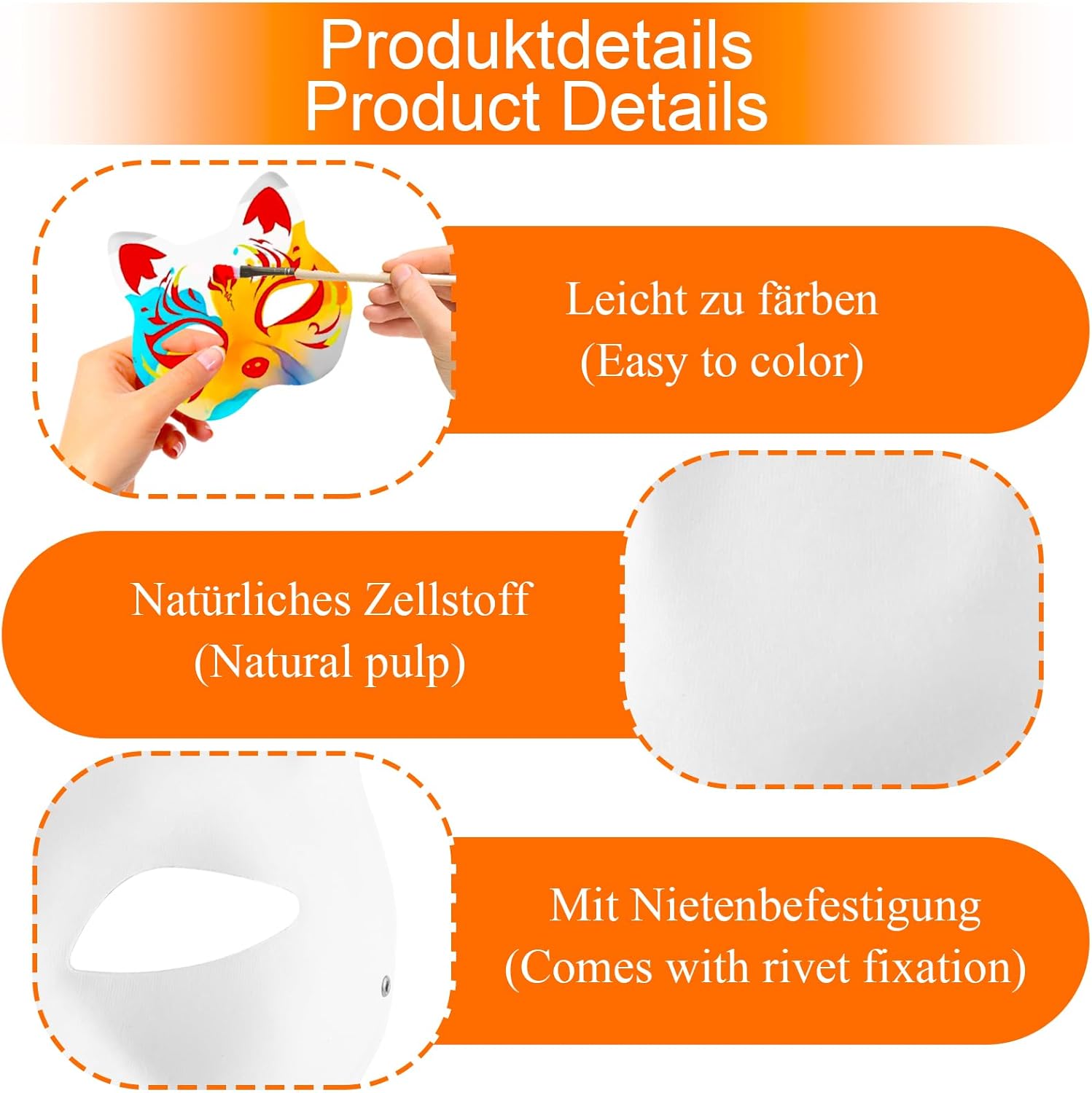 Confezione e dimensioni: La confezione contiene 24 maschere per gatti con cordino elastico (18 x 17 cm). Sono molto leggere, dotate di elastico e comode da indossare. Materiale di alta qualità: la maschera di volpe fai da te è realizzata in pasta naturale di alta qualità, robusta e comoda da indossare. Sono riutilizzabili e non si stancano nemmeno con un uso prolungato Comode da indossare: le nostre maschere di animali da dipingere sono realizzate in cellulosa naturale. Le nostre maschere per gatti con chiusura regolabile si adattano facilmente a diverse dimensioni della testa pur essendo comode e sicure da indossare. Creazione fai-da-te: ogni maschera per gatti non verniciata con cordino elastico è bianca pura e ti consente di dipingere e decorare liberamente con acquerelli, matite a olio, acquerelli, penne, matite colorate e altri materiali Decorazione individuale: la maschera di volpe fai-da-te è ideale per eventi artigianali, riunioni di famiglia, appuntamenti di gioco e celebrazioni. Che si tratti di Halloween, carnevale o altre occasioni, queste maschere di animali verniciabili completano il tuo look e attireranno l'attenzione di tutti
