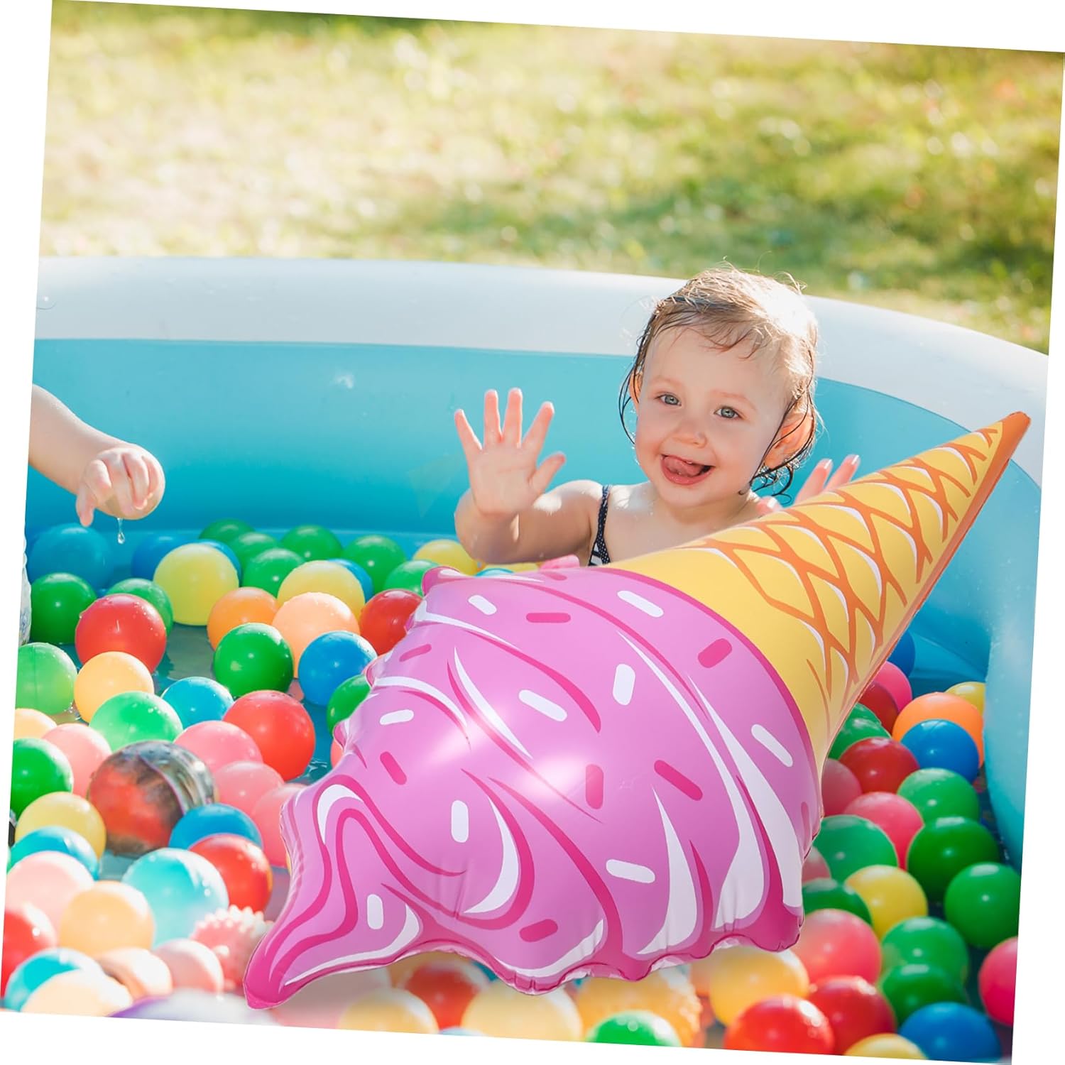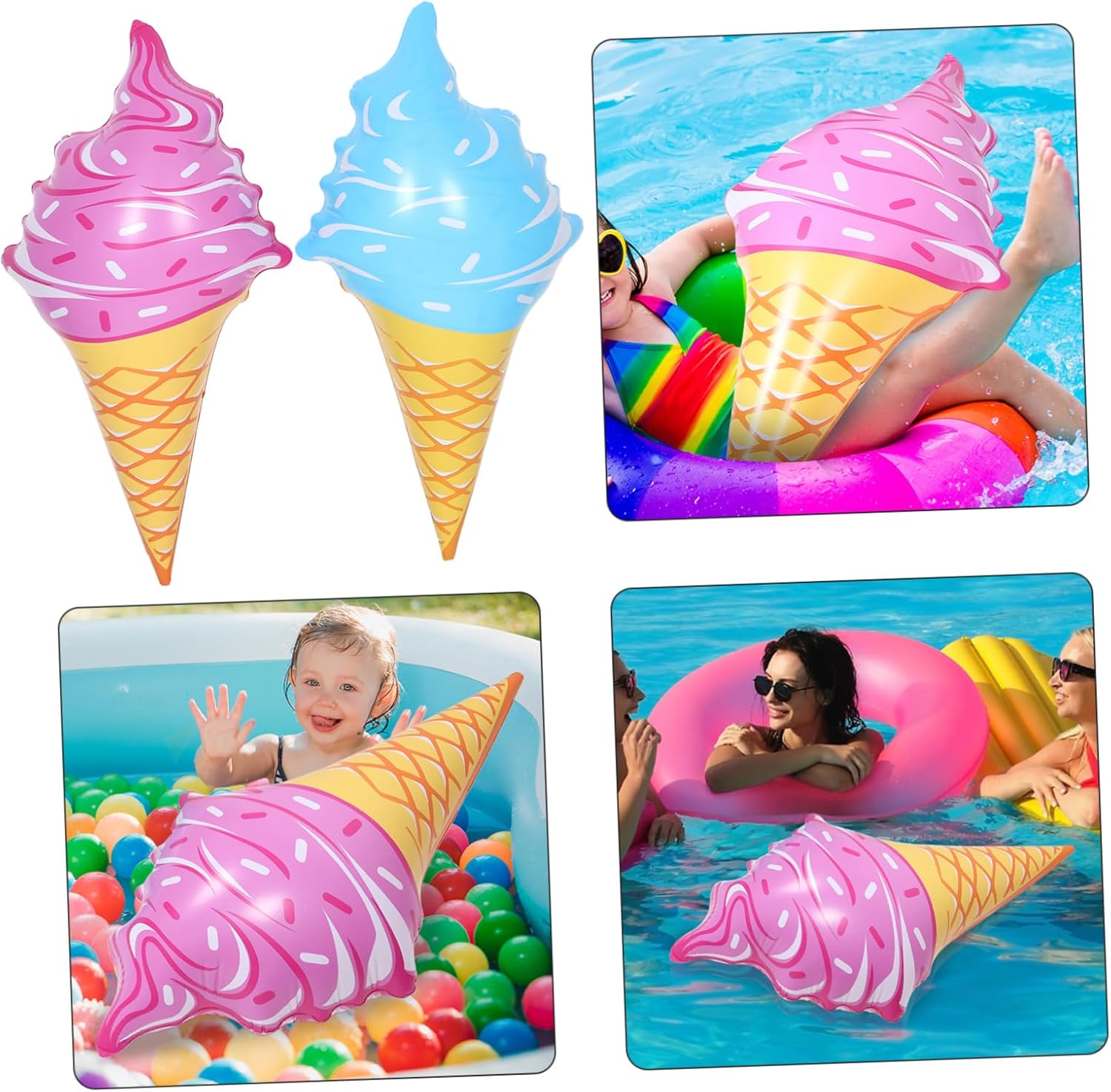 Divertimento: la forma gonfiabile migliora il divertimento, consente ai bambini di giocare mentre nuotano, decorazioni per piscine d'aria, nuoto per consentire a più bambini di godersi l'acqua, gelati galleggianti, giocattoli da nuoto Ideale per: adatto per gite a bordo piscina, in spiaggia o al lago, aggiunge divertimento ai compleanni e un tocco di picnic, cono di ghiaccio gonfiabile, coni di ghiaccio gonfiabili Intrattenimento: gonfiabile aggiunge intrattenimento, rende il nuoto più piacevole per i bambini, accessorio per il nuoto, gelato galleggiante Design: offre a più bambini di godersi l'acqua, galleggiante gonfiabile, palla d'acqua