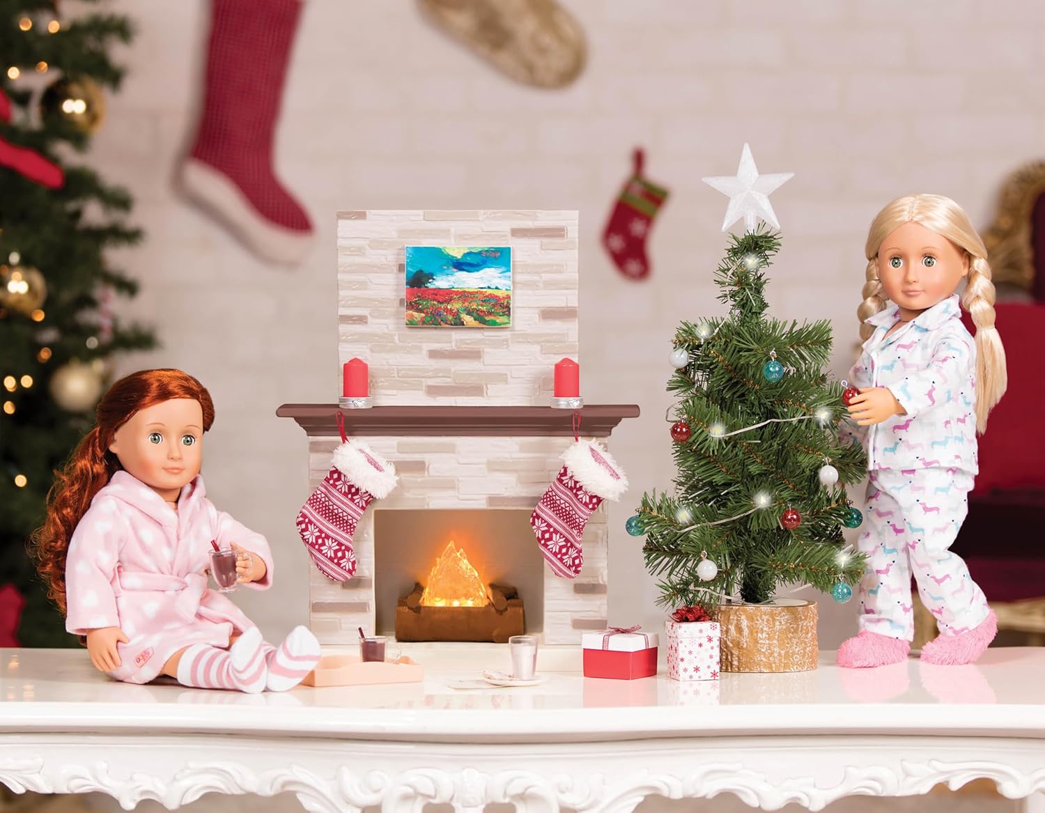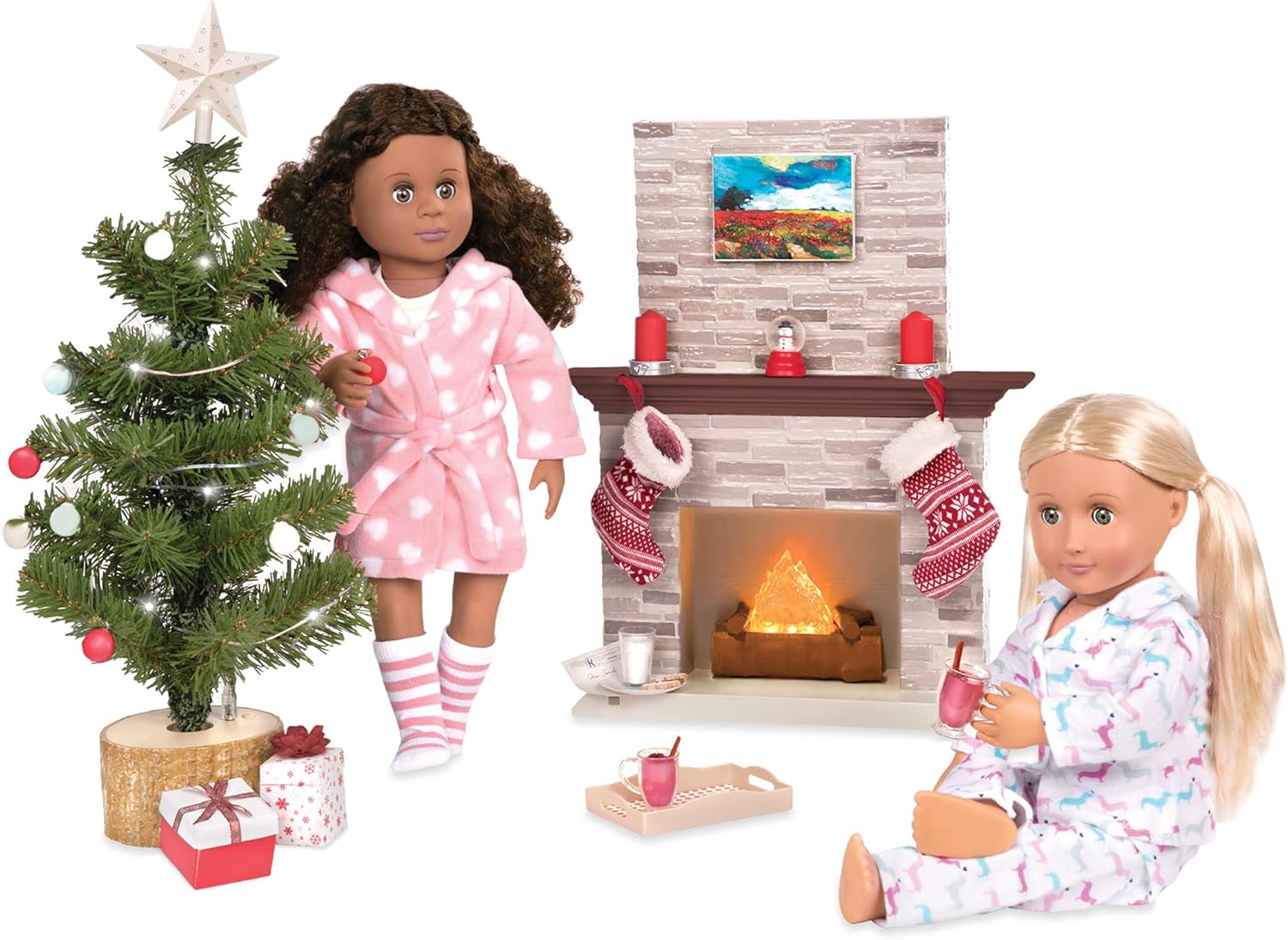 Le belle vacanze iniziano sempre con accessori e decorazioni sensazionali! Luci scintillanti e fuoco scoppiettante per un'atmosfera indimenticabile Adatto a bambole da 46cm Un set che scalda il cuore Bambole e vestiti venduti separatamente
