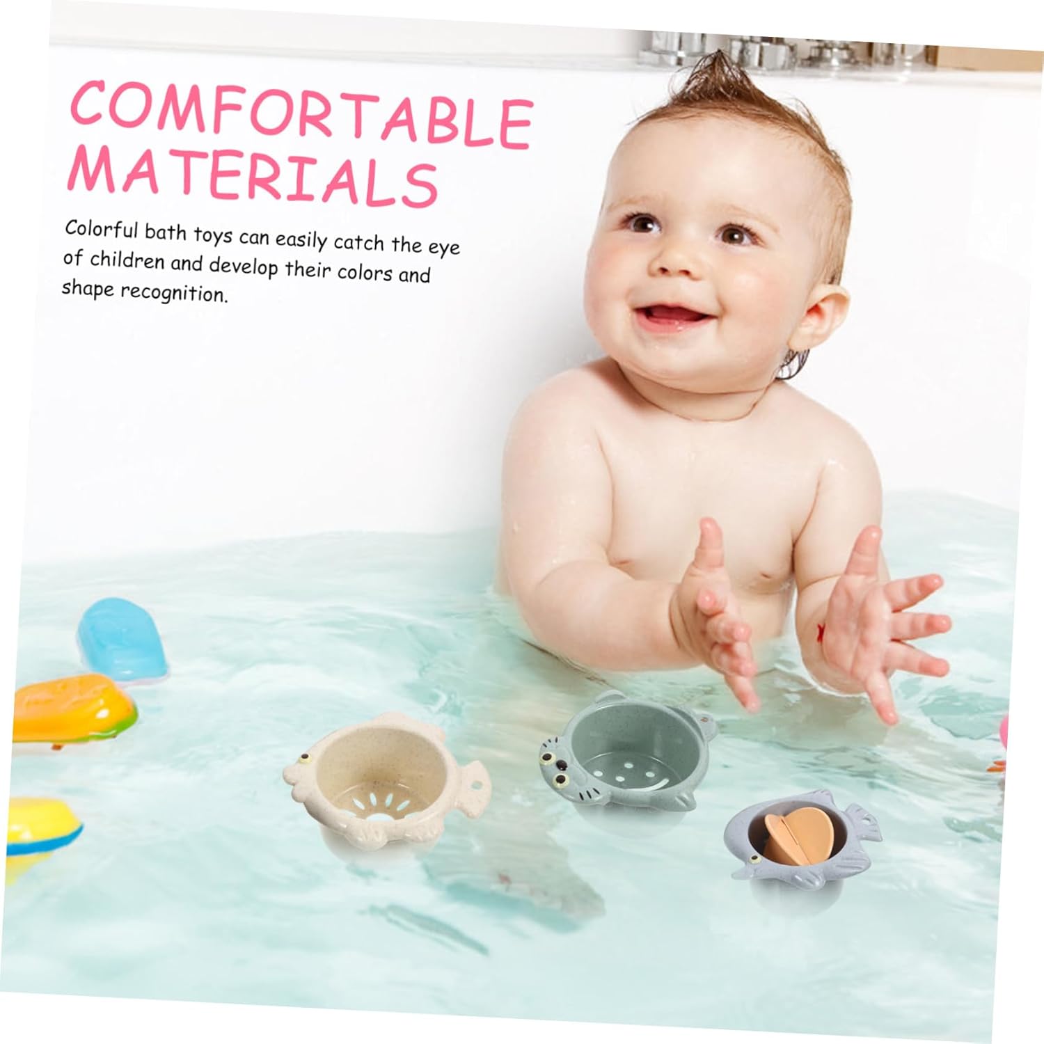 Giocattoli per la doccia - Realizzati in paglia di grano, resistenti e pratici per un uso duraturo, sicuri, lisci e confortevoli, non danneggeranno la pelle, Giocattoli per la vasca Giocattoli per il bagno e la doccia per bambini - Questo giocattolo per il bagno sarà attraente per i bambini e aiuterà a migliorare la coordinazione dell'immaginazione, Giocattoli da bagno per i più piccoli Giocattoli da bagno per i più piccoli - Nessun bordo da afferrare per i più piccoli. Il bellissimo design della forma attirerà l'attenzione del bambino. Giocattoli da bagno Accessori per giocattoli per bambini - la dimensione delle tazze è appropriata, adatta per le piccole mani del bambino da afferrare durante il bagno, giocattoli da bagno per bambini piccoli Giocattoli da bagno - giocattoli da bagno colorati possono facilmente attirare l'attenzione dei bambini e sviluppare il riconoscimento del colore e della forma, giocattoli da doccia