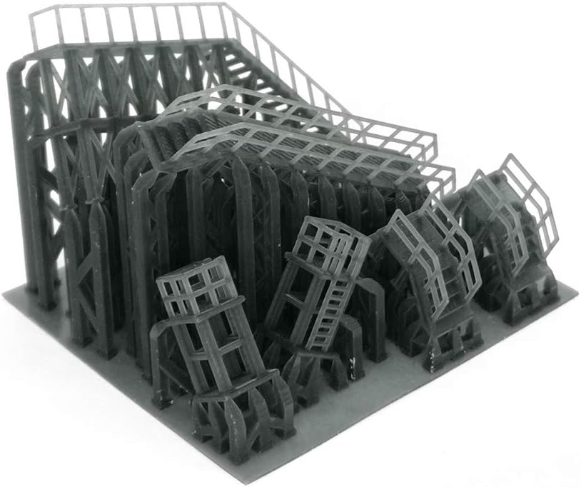 Questo prodotto è stato creato da una stampante 3D, questo prodotto non è verniciato nel suo colore originale come nella foto Per motivi tecnici e sicuri, il prodotto può essere dotato di un foglio molto sottile sotto di esso o di una struttura di supporto che si collega ad esso in alcuni punti (si prega di controllare l'ultima immagine), potrebbe essere necessario rimuovere il prodotto con una fresa (come si rimuovono le parti da una canna in un kit modello). Questo articolo include: 2 scale basse, 2 piattaforme medie, 1 piattaforma lunga, 1 piattaforma alta Materiale: resina Scala: Z Scale / 1:220