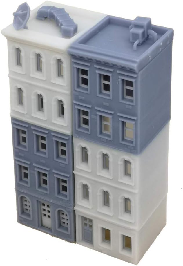 Questo prodotto è stato creato da una stampante 3D, questo prodotto non è verniciato nel suo colore originale come nella foto. Per motivi tecnici e sicuri, il prodotto può essere dotato di un foglio molto sottile sotto di esso o di una struttura di supporto che si collega ad esso in alcuni punti (si prega di controllare l'ultima immagine), potrebbe essere necessario rimuovere il prodotto con una fresa (come si rimuovono le parti da una canna in un kit modello). Potrebbe essere necessario applicare la colla su alcune piccole parti dettagliate Questo prodotto può essere fatto come appartamento di 1/3/5 piani in base alle vostre esigenze, anche i pavimenti (base/pila/tetto) possono essere scambiati tra la stessa serie di edifici che creano variabilità sul vostro set di costruzione. Materiale: Resina, Scala: N Scala / 1:160 Dimensioni (solo l'edificio, accessori dettagliati esclusi): 30 mm x 34 mm x 99 mm (H)