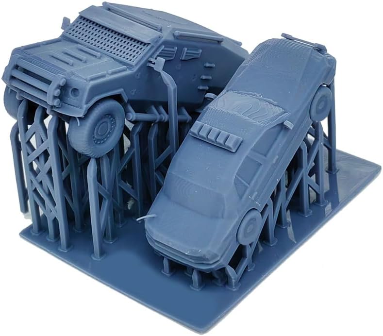 Questo prodotto è stato creato da una stampante 3D, non è verniciato nel suo colore originale come nella foto, alcune parti potrebbero richiedere il montaggio utilizzando la colla. I modelli di stampa sulla superficie potrebbero essere visibili se lo guardi attentamente. Per motivi tecnici e sicuri di trasporto, alcune parti possono venire con un foglio molto sottile sotto di esso o una struttura di supporto che si collega ad esso su alcuni punti (si prega di controllare l'ultima immagine), Potrebbe essere necessario rimuovere il prodotto con un cutter (proprio come si rimuove le parti da una sprue in un kit modello). Materiali: Resina, Scala: S Scale/1:64 Dimensioni: auto: 36 mm x 83 mm x 29 mm (H), armatura: 44 mm x 96 mm x 43 mm (H)