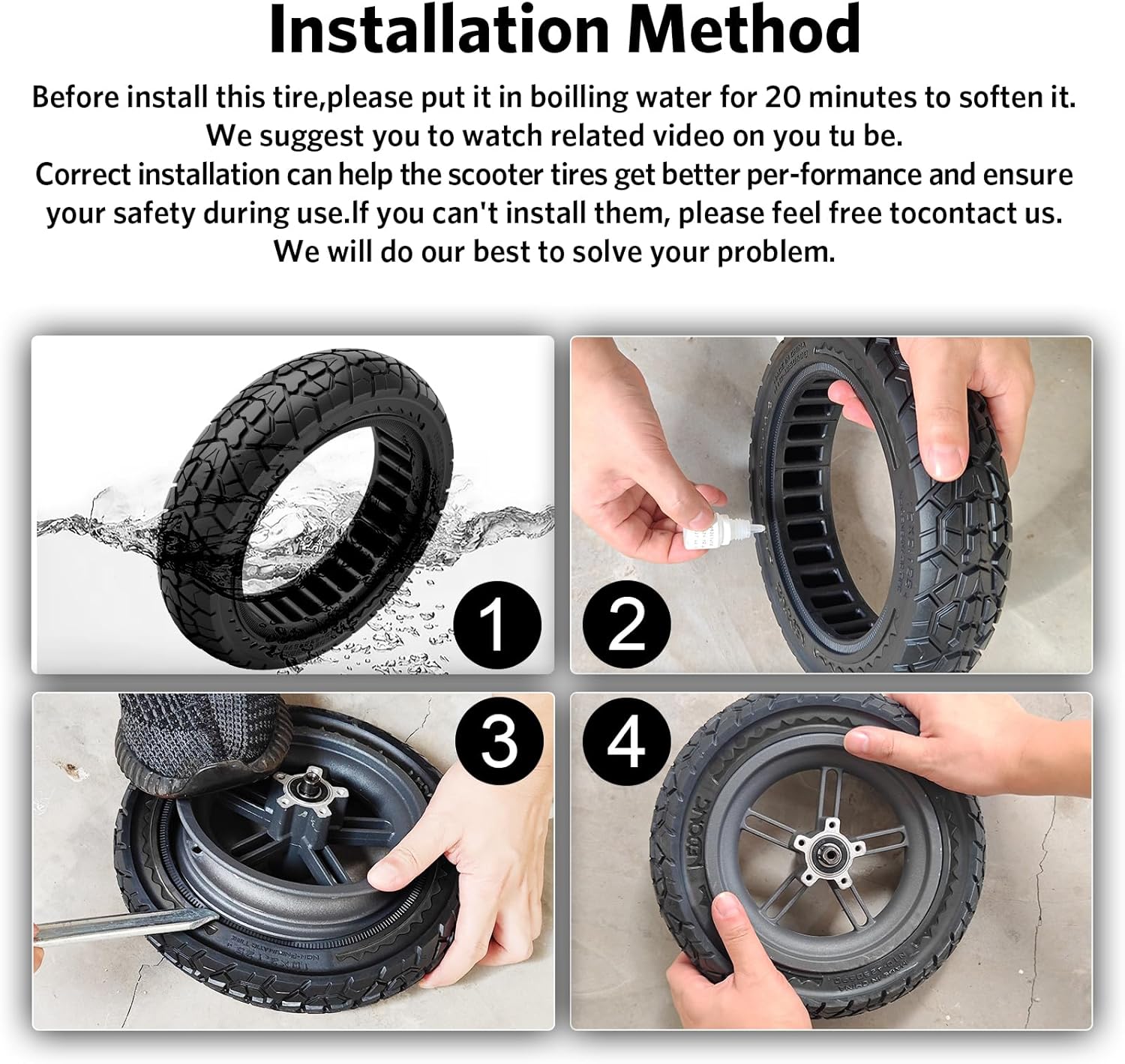 🛴 Pneumatici fuoristrada in gomma: Questi pneumatici in gomma off-road sono stati sviluppati specificamente per gli scooter elettrici Ninebot F20/F30/F40/F65. I pneumatici in gomma piena sono progettati per eliminare le irregolarità del manto stradale e hanno meno probabilità di essere forati da oggetti appuntiti.I pneumatici non richiedono il gonfiaggio e sono universali per le ruote anteriori e posteriori 🛴 Pneumatici per scooter durevoli: I pneumatici Cooryda sono realizzati in materiale di gomma piena di alta qualità, resistente all'abrasione. La struttura superficiale delle scanalature della gomma assicura una buona presa, una precisa stabilità e manovrabilità. I pneumatici per scooter off-road sono stati progettati pensando alla guida in fuoristrada e possono essere utilizzati su terreni complessi come fango e buche. 🛴 Pneumatici solidi per fuoristrada a prova di foratura: questi pneumatici solidi per fuoristrada sono privi di aria, non necessitano di manutenzione, sono a prova di esplosione, sono resistenti e duraturi e non temono forature. L'eccellente capacità di ammortizzazione rende il pneumatico più resistente rispetto ai pneumatici tradizionali. 🛴 Eccezionale resistenza agli urti: I pneumatici per scooter sono realizzati con uno speciale design a nido d'ape con eccellenti caratteristiche di assorbimento degli urti, resistenza agli impatti e alla pressione. Può essere utilizzato in molti scenari, come la ronda cittadina, l'avventura all'aperto, le corse fuoristrada, ecc. Può essere utilizzato anche in condizioni di pioggia e neve, garantendo il massimo livello di sicurezza e protezione. 🛴Montaggio: ammorbidire gli pneumatici facendoli bollire per 10 minuti prima del montaggio. Si consiglia di guardare il video corrispondente su YouTube. Un montaggio corretto migliora le prestazioni dei nostri pneumatici per scooter e garantisce la vostra sicurezza durante l'uso. Se non riuscite a montarli, fatecelo sapere e cercheremo di risolvere il problema!