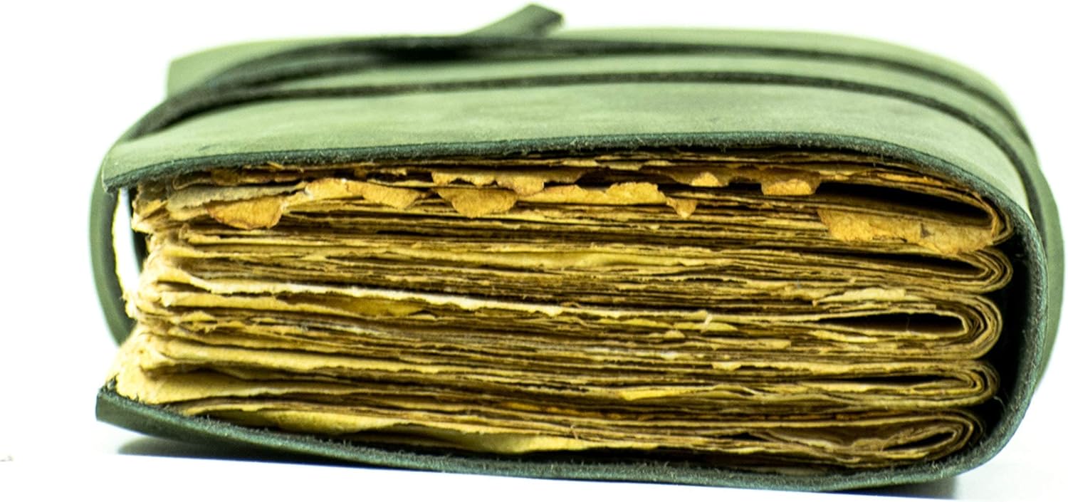 CARTA BRUCIATA ANTICA - Il nostro nuovissimo diario in pelle di carta vintage è realizzato con carta vintage bruciata unica che sembra provenire dalla storia. Amerai la vecchia carta di cotone bruciata fatta a mano (240 pagine) che è unica per i nostri diari vintage. USA QUALSIASI TIPO DI PENNA - Disegna, scarabocchia, scrivi sul tuo quaderno con penna stilografica per calligrafia, penna a pennello, penna a sfera, acrilici, acquerelli e molto altro. PELLE VERA PELLE SPESSA ED ELEGANTE DI QUALITÀ PREMIUM - Il diario in pelle OVERDOSE è realizzato in pelle pieno fiore conciata naturalmente, cruelty-free, che ha una sensazione e un odore incredibili. È morbido e molto confortevole nelle mani. Non lasciarti ingannare dai concorrenti che utilizzano sostituti economici, questo è il vero affare. Elegantemente medievale: la carta di cotone bruciata rustica dall'aspetto antico combinata con la bellezza della pelle invecchiata, cucita a mano da artigiani, crea un ricordo che custodirai per sempre. È un fantastico regalo per gli uomini, le donne e i Wiccan della tua vita! ROBUSTA RILEGATURA IN PELLE - Robusta rilegatura cucita a mano per evitare che la carta fuoriesca dal tuo taccuino vintage. La busta in pelle protegge i documenti del diario.