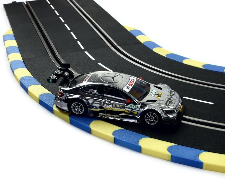 Con il Curb System di Overdrive-Racing puoi trasformare la tua strada in una vera pista da corsa. I cordoli vengono montati ai lati delle curve o dei rettilinei della strada e allargano così la carreggiata di 2 cm su ciascun lato. Le auto hanno più spazio durante le derapate senza volare fuori pista. La superficie è identica alle strade delle slot car, leggermente ruvida per una presa perfetta Materiale: stampa PLA (alta qualità di stampa) - Colori: a seconda della selezione - Fissaggio: con clip da corsa overdrive - Nessun scolorimento dovuto alla luce del sole - Spessore del materiale perfetto (nessuna flessione/deformazione) - Dimensioni del cordolo: 2,0 cm x 3,9 cm I veicoli e i binari mostrati nelle foto sono solo a scopo illustrativo e non sono compresi nella fornitura!