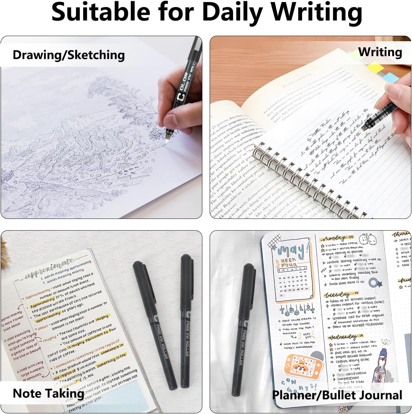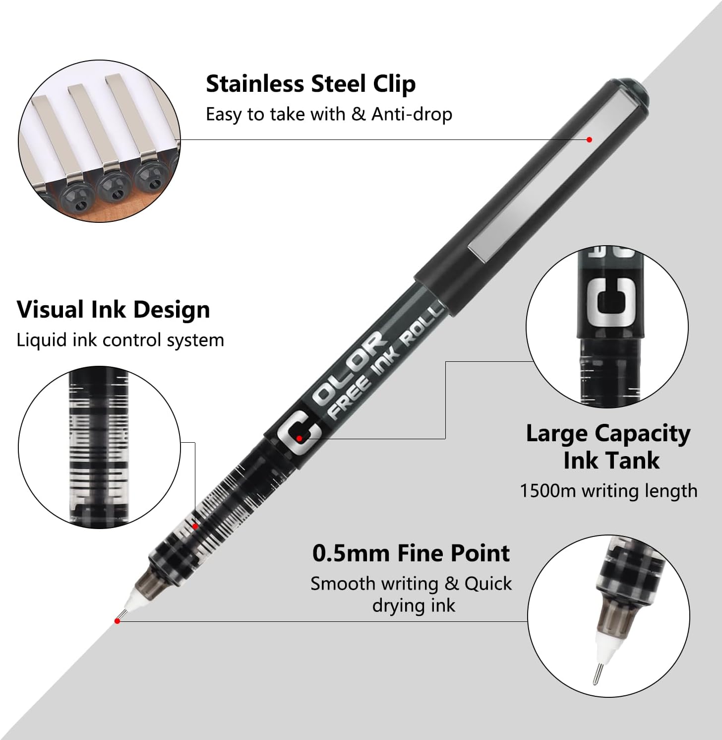 ✅ Penne gel di alta qualità: queste penne roller sono realizzate con materiale duraturo. Le penne gel hanno punte sferiche adatte. Gli inchiostri neri delle penne gel nere offrono un contrasto perfetto su carta bianca, rendendo la tua scrittura chiara e leggibile ✅ Lunga durata: con queste penne roller, non dovrai più preoccuparti di rifornire spesso i tuoi materiali di scrittura. Le penne gel nere sono dotate di grandi riserve d'inchiostro, che le rendono ideali per lunghe sessioni di scrittura o disegno senza interruzioni ✅ Ottima visibilità: grazie alla finestra trasparente delle penne gel, potrai sempre sapere quanto inchiostro rimane nella penna. Questo sistema evita situazioni imbarazzanti durante riunioni importanti o esami ✅ Adatta a tutti: queste penne gel nere sono ideali per studenti, adulti e persino artisti. La punta extra-fina da 0,5 mm delle penna roller garantisce una scrittura uniforme e precisa, perfetta sia per appunti che per elaborati disegni ✅ Confezione completa: il pacchetto comprende 12 penne gel nere, pronte all'uso. Sono ideali come regalo o per avere sempre a disposizione una riserva di penne in caso di necessità improvvisa