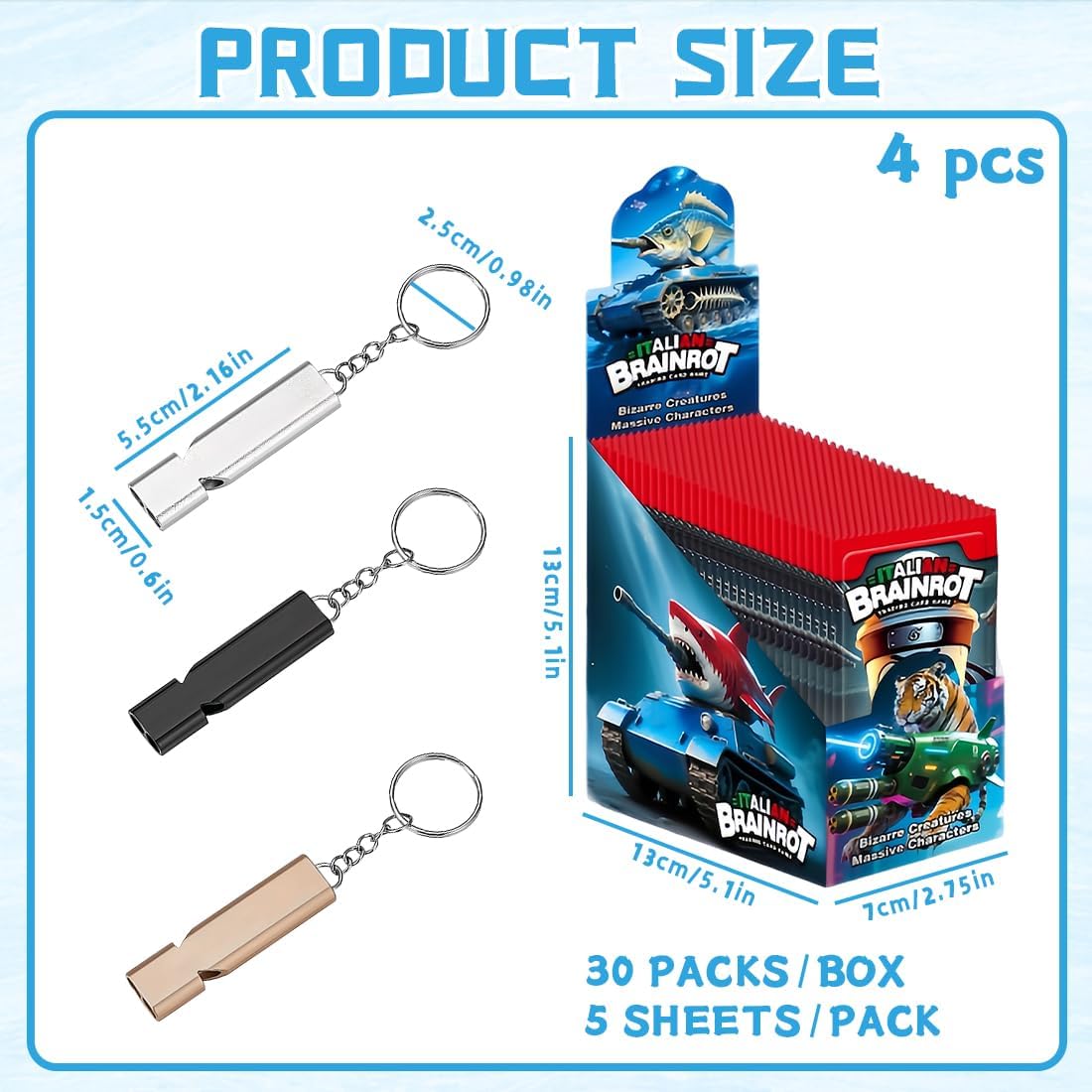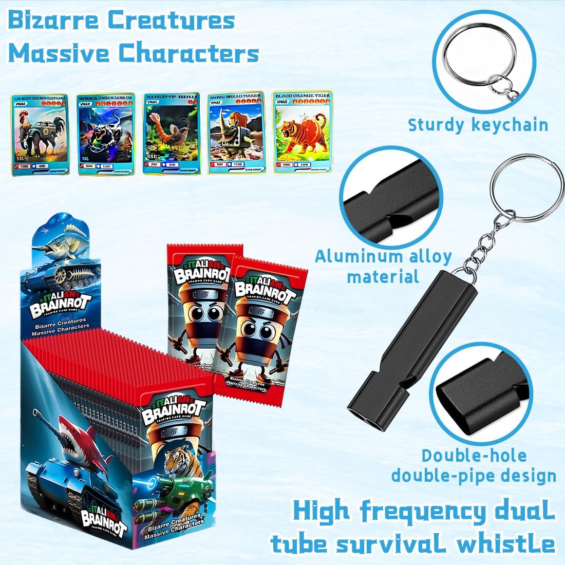 ✔️Scatola da 30 buste Ski Idol Italian Brain Red, ispirato al fenomeno italiano, il gioco di carte collezionabili, un mix psichedelico di personaggi usciti direttamente dall'immaginazione ✔️5 carte in ogni busta Include tre portachiavi con fischietto in omaggio in diversi colori. Il design della confezione può essere casuale, ma ciò non influirà sulla tua esperienza di acquisto, poiché le carte all'interno sono tutte casuali! Soddisfare le esigenze dei collezionisti