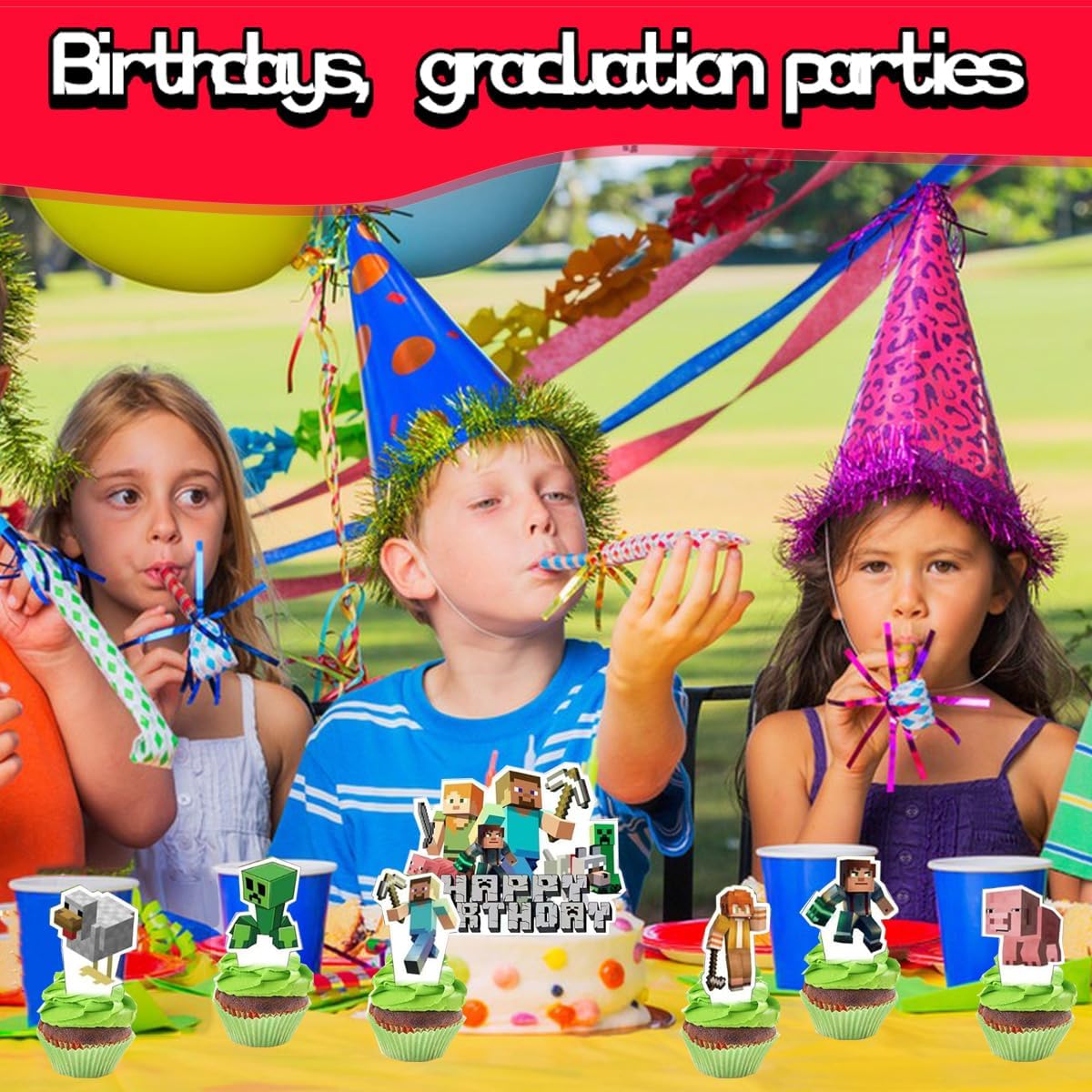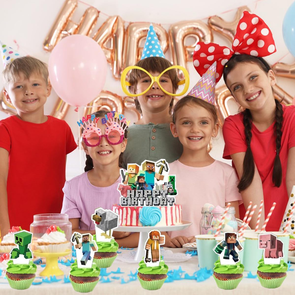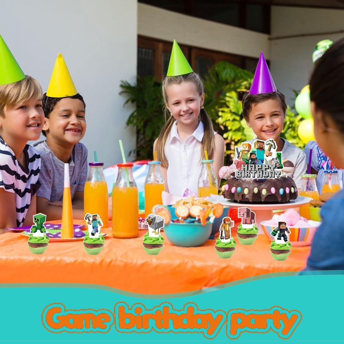 Set di decorazioni per torte da gioco: confezione da 25 contenenti 1 x Pixel game happy birthday cake decoration and 24 game cake decoration, they look squisito ed elegante, può essere utilizzato come decorazione per torte. Materiale: questi inserti per torte sono realizzati in cartoncino di alta qualità, rendono la decorazione della torta più bella e creativa, attraente e durevole. Decorazione per torte: la decorazione Pixel Gaming Cake topper è ideale per decorare cupcake, dessert, biscotti, ciambelle, vassoi, formaggi, ecc. Ideale per tutte le feste a tema, tra cui compleanno, laurea, anniversario, cena in famiglia e varie occasioni. Festa a tema del gioco: il set Pixel gaming birthday renderà divertenti ricordi per la tua vita. Rendi la tua festa per la doccia del tuo bambino usa la nostra decorazione per celebrare il tuo momento impressionante.