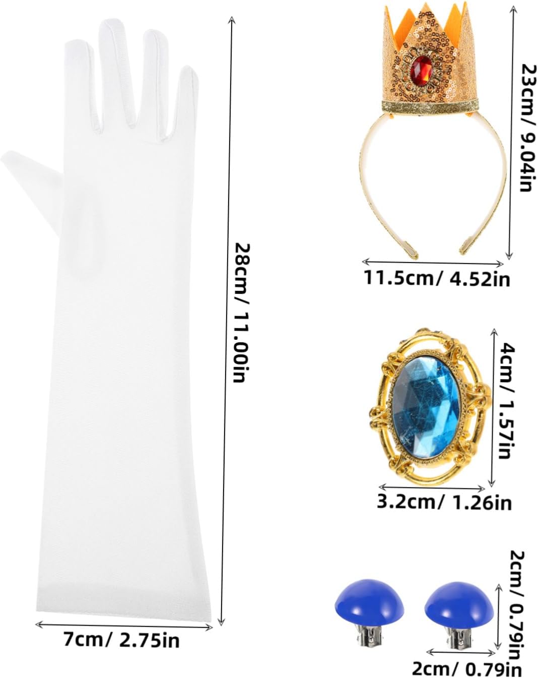 Adatto per il cosplay: ottimo per tutti i tipi di feste e attività di gioco di ruolo, permettendoti di entrare nel ruolo della tua principessa preferita, vestire gioielli, accessori da principessa per adulti Occasioni versatili: ideale per feste di compleanno, matrimoni, balli e altro ancora, aggiungendo un tocco di e glamour a qualsiasi evento, costume da spettacolo, accessorio per cosplay di halloween Materiali affidabili: realizzato con materiali affidabili, questo set cosplay da principessa offre comfort e durata, garantendo che rimanga vibrante e intatto, orecchini cosplay, bomboniere per feste di compleanno da principessa unico: un speciale, che mette in mostra il tuo gusto premuroso e unico con questo splendido set di accessori, guanti da principessa, bomboniere da principessa memorabile: un adatto per gli amici, che riflette la tua cura e il tuo senso unico dello stile con questo affascinante set, fascia per a , decorazioni a per feste