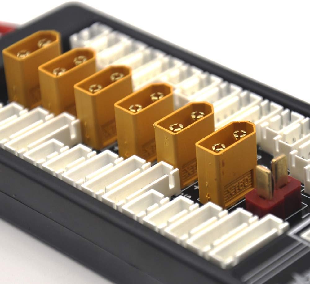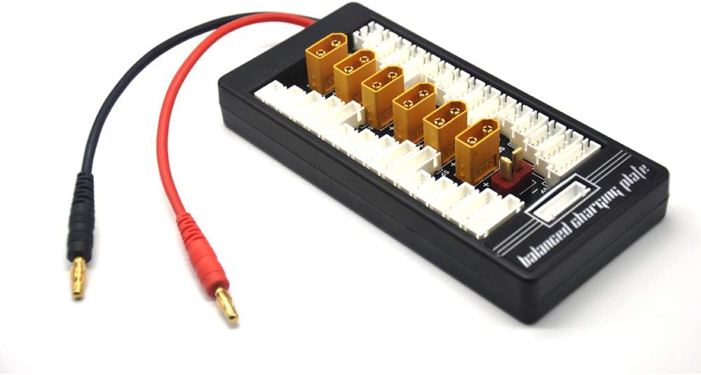 1) Scheda parallela XT60 per caricabatterie con bilanciamento lipo, come imax b6 b8 b6ac, una6 e altri caricabatterie con bilanciamento 2) Risparmia tempo: ti consente di caricare e bilanciare fino a sei batterie lipo contemporaneamente 3) Supporta un massimo di sei set di batterie da 2-6 s: presenta uno spinotto a banana da 4 mm per i cavi principali delle batterie e connettori di bilanciamento jst-xh che vanno da 2s a 6s 4) Previeni cortocircuiti: protezione integrata da cortocircuiti, impedisce ogni cella quando si verifica un sovraccarico o un cortocircuito 5) Capacità di espansione super forte: può supportare l'uso combinato di tre schede ok parallele (significa che puoi caricare diciotto batterie che hanno gli stessi caratteri contemporaneamente)