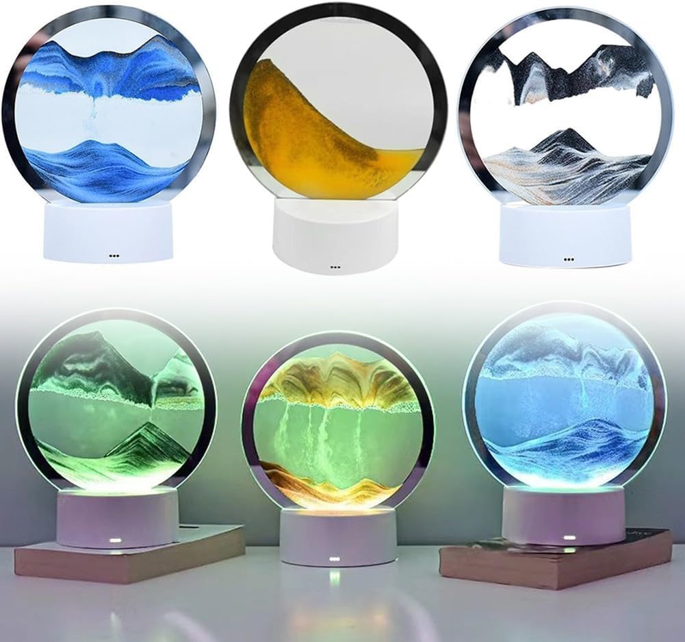 Paesaggi di sabbia dinamici, immagine artistica con sabbia in movimento, paesaggio di sabbia 3D rotondo in movimento, pittura con sabbia fluente, decorazione da tavolo da scrivania,