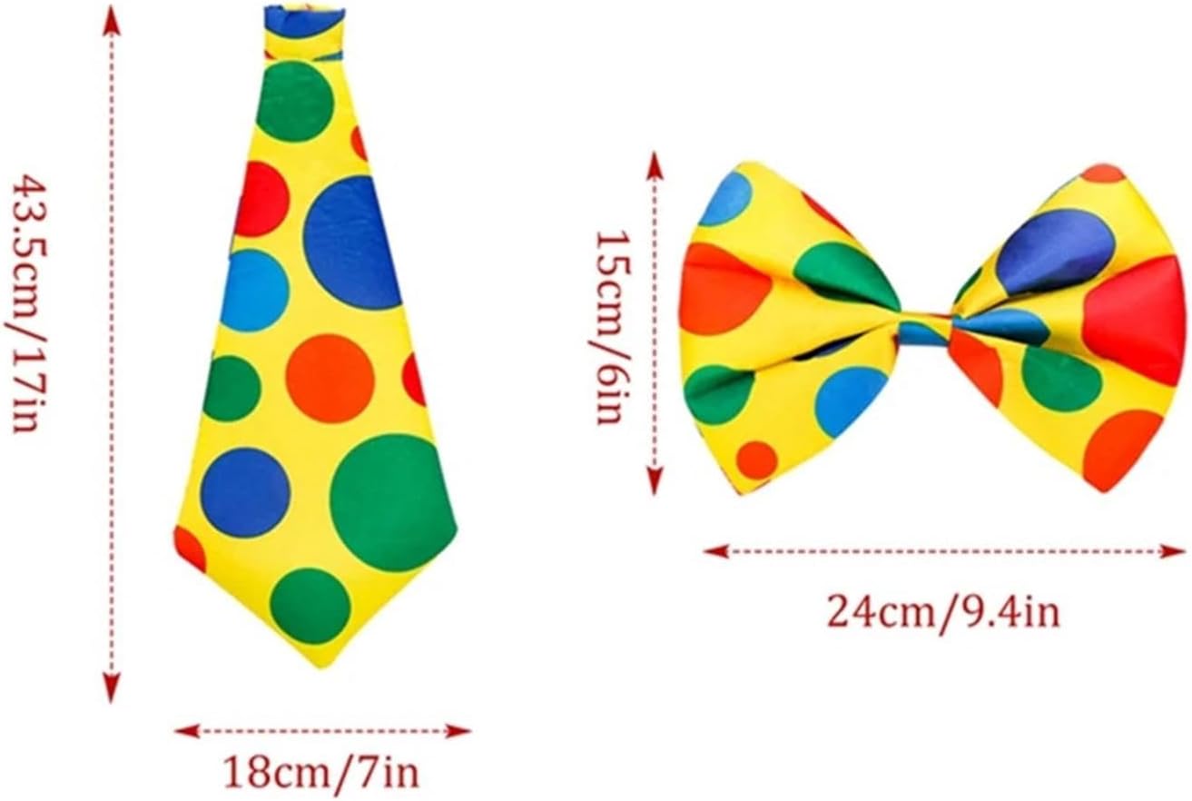 Descrizione : Materiale durevole: la nostra cravatta da clown è realizzata in spugna di qualità, durevole. Dimensioni: papillon: 24 cm x 15 cm, cravatta: 43,5 cm x 18 cm. [Fascia di Halloween]: la cravatta da clown e il papillon sono leggeri, adatti per la maggior parte delle persone, creativi, belli e alla moda, aggiungono più divertimento e creano un'atmosfera più allegra. Ampie applicazioni: gli accessori per costumi da circo di carnevale sono ideali per gli adulti. Il bel colore sembra molto bello e molto divertente. Comodo ed elegante. Occasioni adatte: grazioso fiocco e cravatta, adatto per feste cosplay, costumi, oggetti di scena fotografici, Halloween, feste in maschera, Pasqua, spettacoli teatrali, ecc. Ottimo regalo: gli accessori per cosplay da clown sono una buona scelta se li usi da solo o regalarli alla tua famiglia e agli amici. Specifiche tecniche: materiale : spugna Tabella delle taglie: Papillon: 24 cm x 15 cm. cravatta: 43,5 cm x 18 cm. La confezione include: 1 papillon. 1 cravatta Nota: Si prega di considerare un margine di errore dovuto alla misurazione manuale e ai diversi monitor.