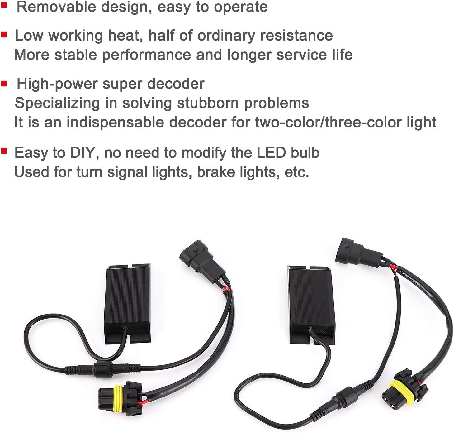 Il super decodificatore ad alta potenza è un decodificatore indispensabile per la luce a due/tre collari, che risolve specificamente problemi difficili. Adotta un design staccabile ed è facile da usare. Un singolo corpo resistore può essere dotato di più modelli di connettori. Ha un basso calore di esercizio (metà della resistenza ordinaria), illuminazione alta e bassa opzionale, prestazioni più stabili e una maggiore durata. La lampadina a LED, facile e veloce da installare, utilizza i fendinebbia. Lo speciale decodificatore garantisce che la lampadina LED possa raggiungere il suo pieno potenziale senza malfunzionamenti o sfarfallio.