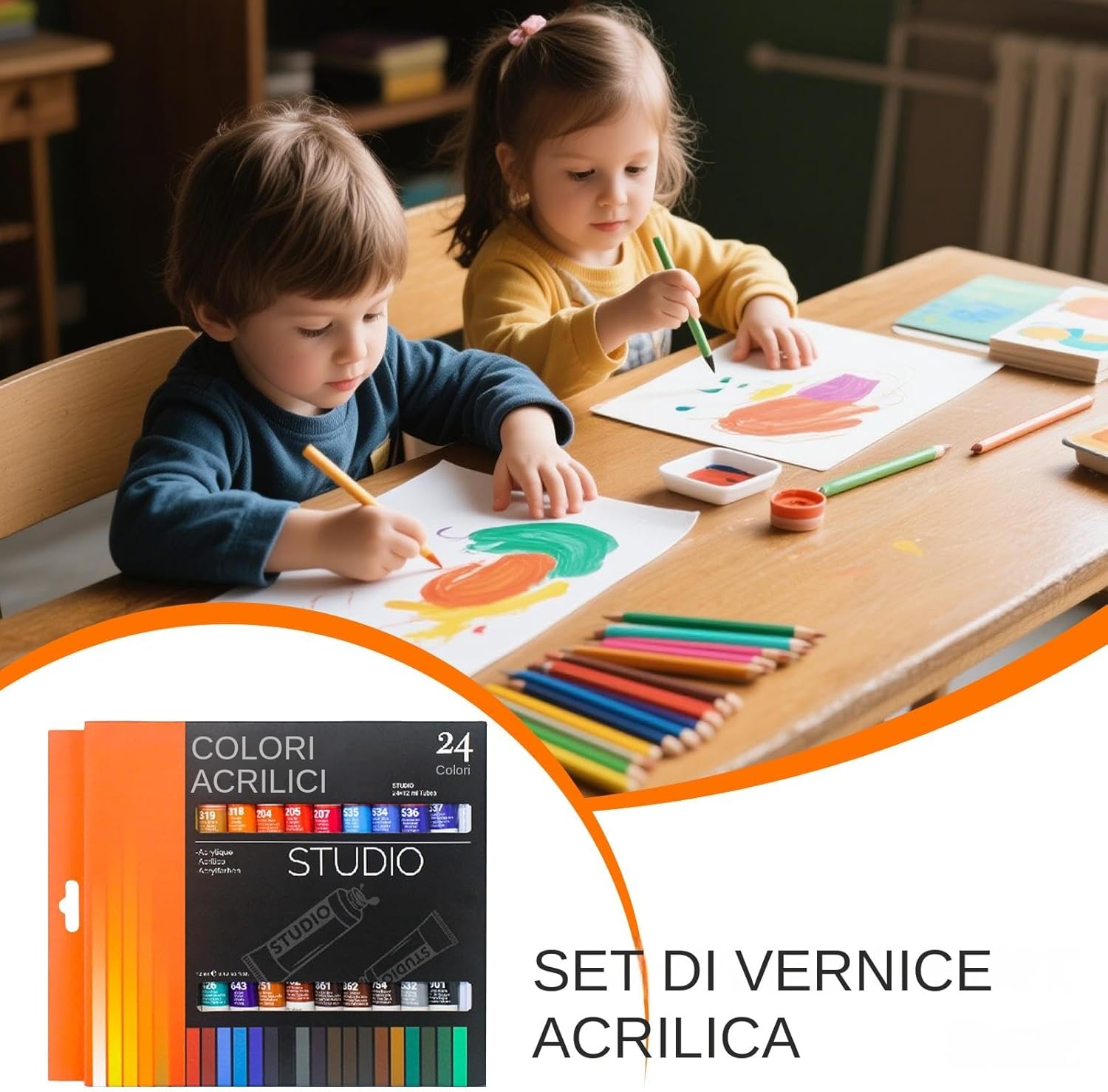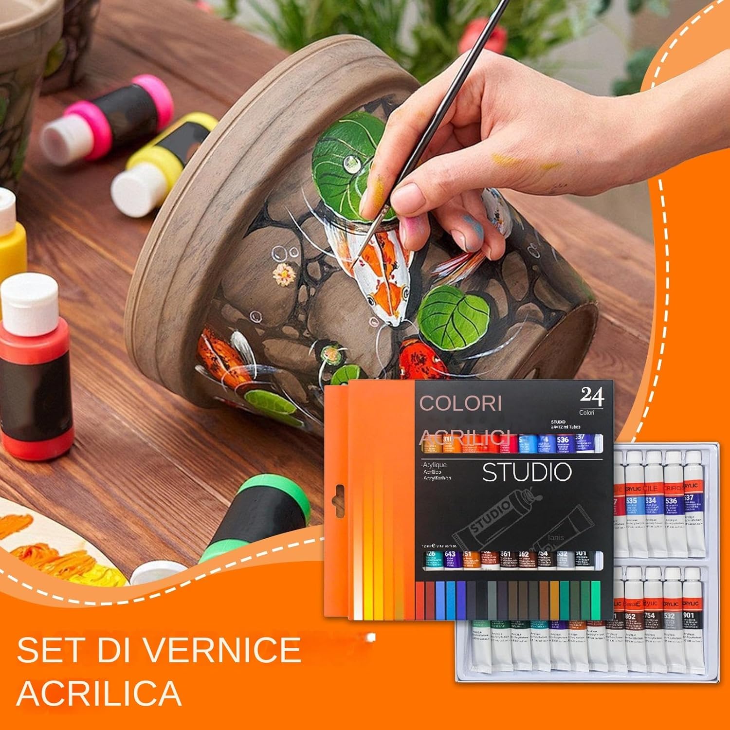 Ottimo regalo per artisti: per compleanni, vacanze o seminari creativi, questo set di vernici acriliche a 24 colori è un regalo ponderato per bambini, adolescenti o adulti che amano la pittura, la creazione e i progetti artistici fai-da-te Sicuro per i bambini: le vernici acriliche non tossiche e di facile utilizzo offrono un divertimento sicuro e senza pasticcio per i bambini mentre promuovono l'espressione artistica e il coordinamento degli occhi a mano, rendendoli perfetti per aule, homeschooling o sessioni d'arte a casa Creatività multi-superficie: ideale per tela, tessuto, rocce, ceramica e altri progetti creativi, questo versatile set di vernici acriliche consente a bambini e artisti di sperimentare materiali diversi, incoraggiando l'immaginazione e lo sviluppo delle competenze Impermeabile e durevole: pitture impermeabili di alta qualità assicurano un colore duraturo su più superfici, rendendo le tue opere d'arte durevoli e vibranti, sia che tu stia dipingendo all'interno, all'aperto o su progetti artigianali fai-da-te Set completo a 24 colori: questo set di vernici acriliche comprende 24 colori vibranti, perfetti per principianti, bambini e artisti professionisti per esplorare la creatività, mescolare tonalità e completare vari progetti artistici su tela, tessuto, rocce o ceramiche