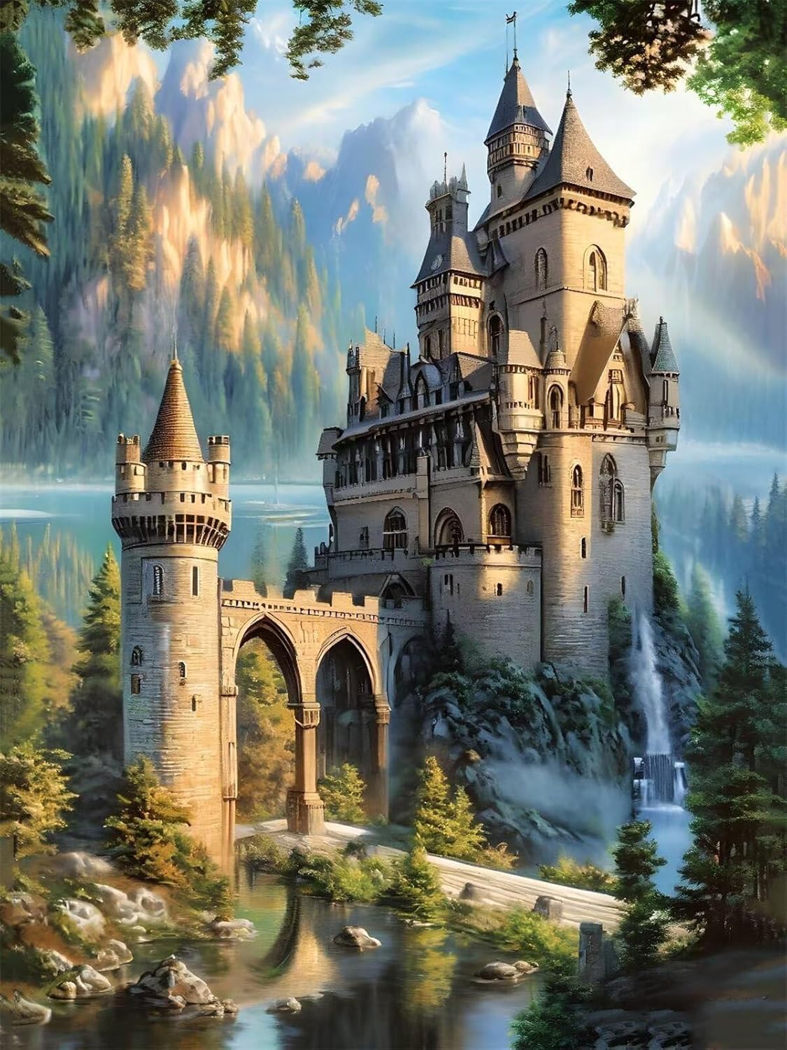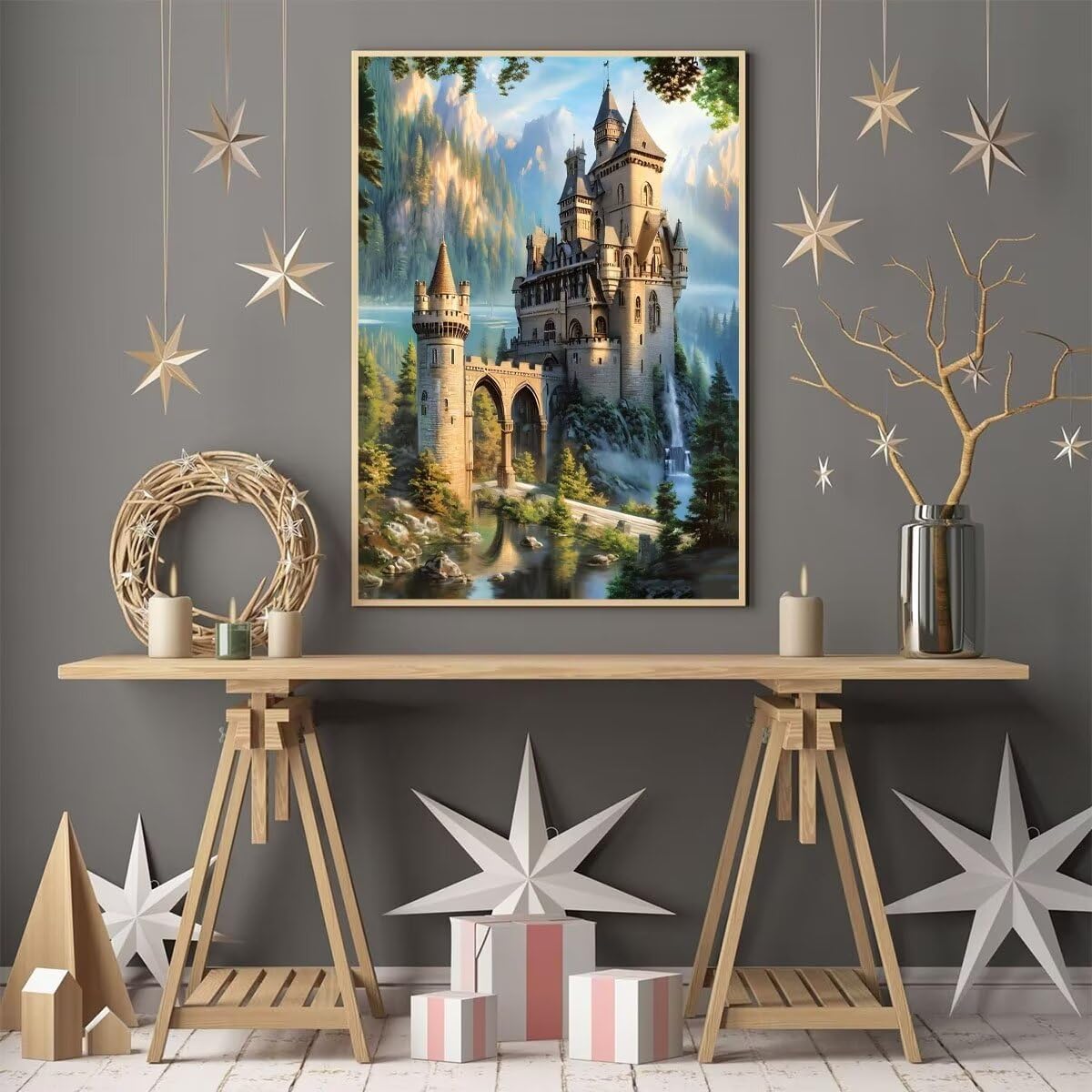 Paint by Numbers Castello Dipingi con i Numeri per Adulti, Kit di Pittura a Olio su Tela Fai-da-Te per Bambini, Kit di Dipinti con i Numeri Adulti Principianti per Decor, Senza Cornice (60x80cm) O-5