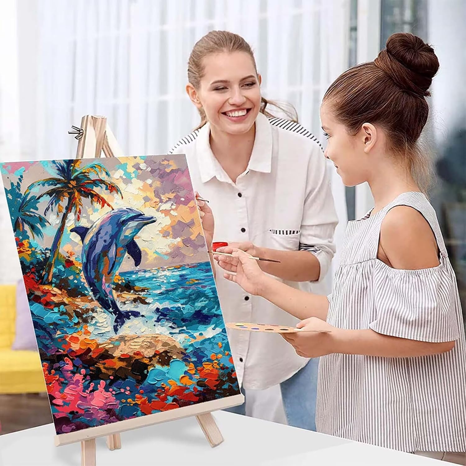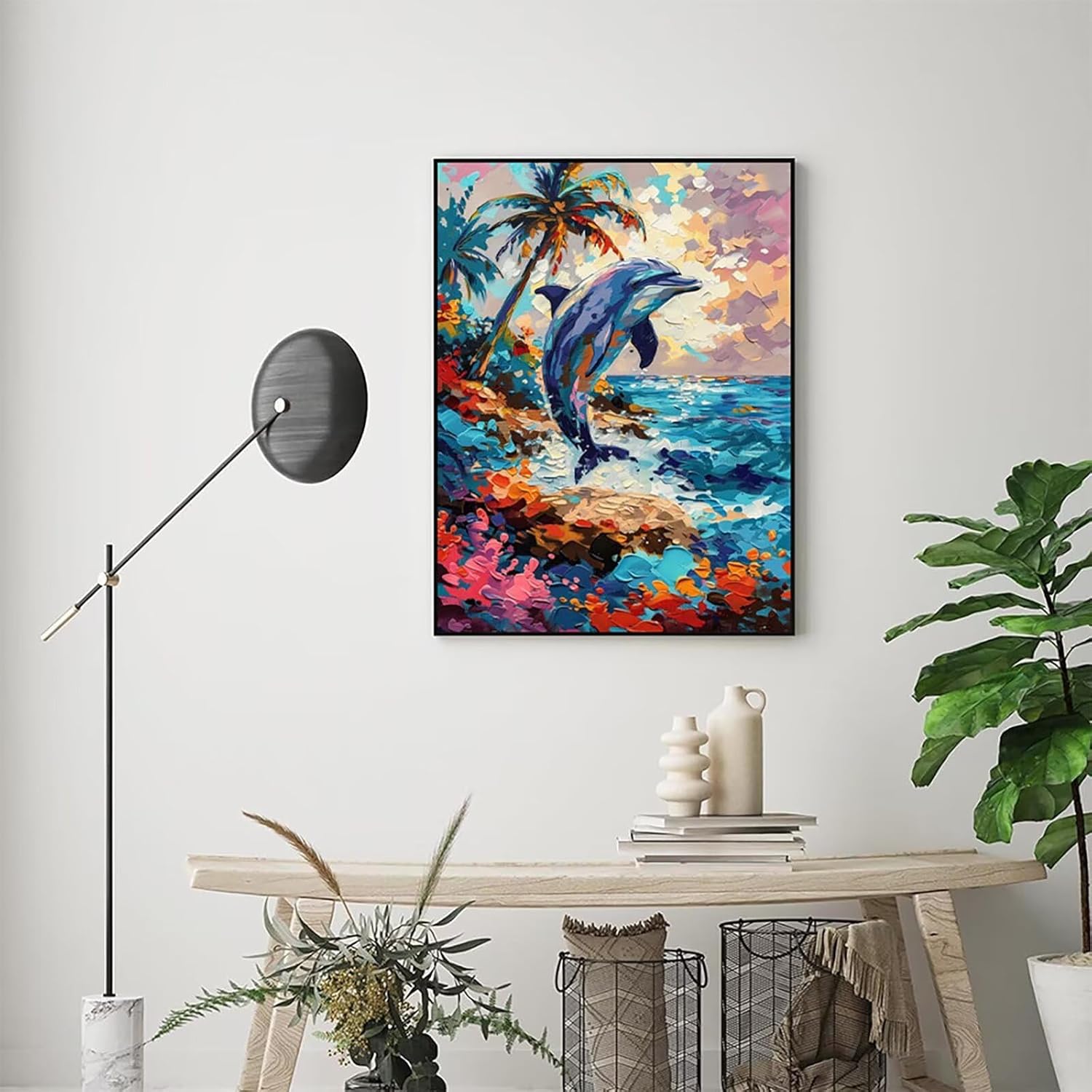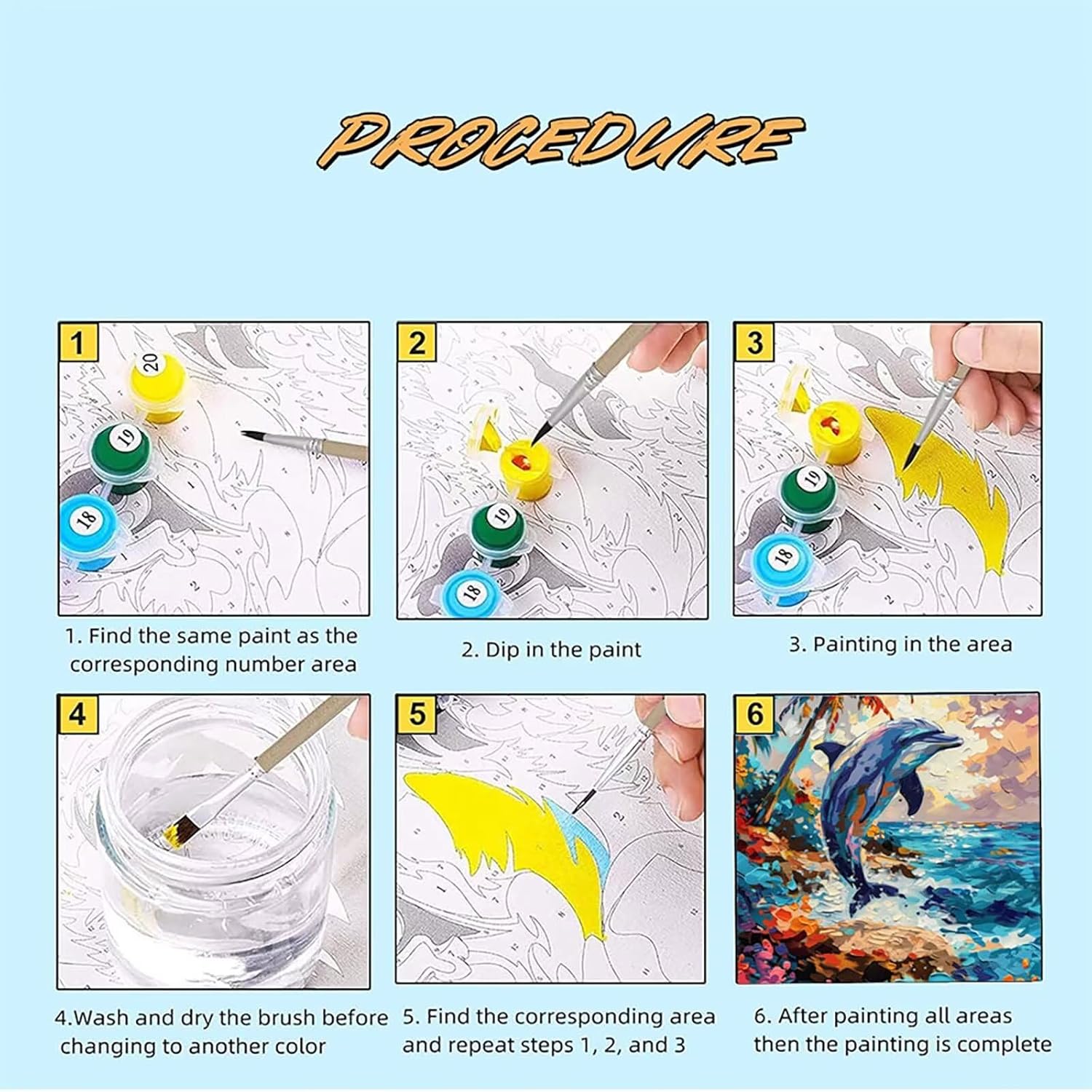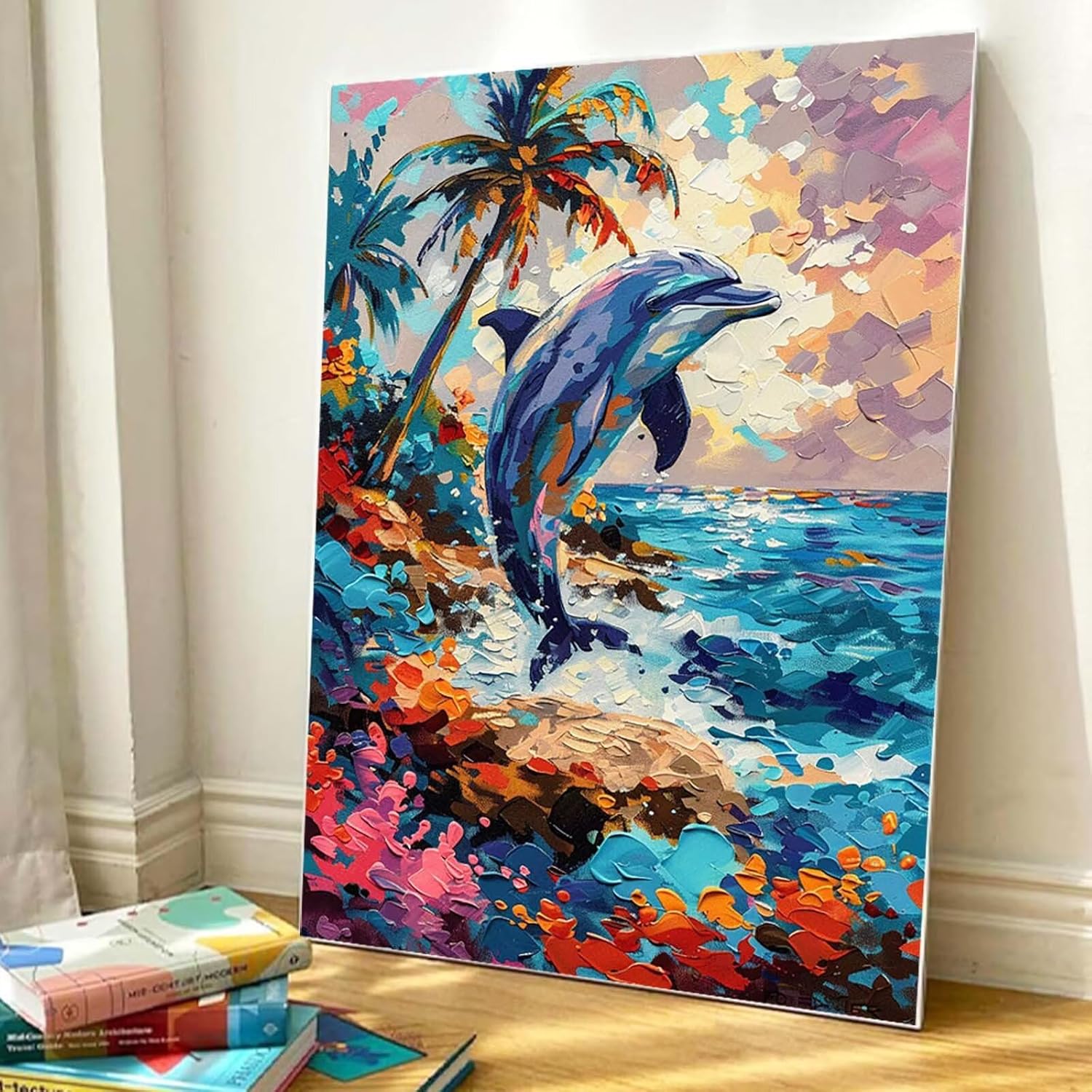 Paint by Numbers Delfino, Dipingere con i Numeri Adulti Astratto, Hobby Creativi Adulti, Kit per Dipingere con i Numeri con 3 Pennelli e Pigmento Acrilico, Décoration de la Maison 20 x 30cm -TL250476