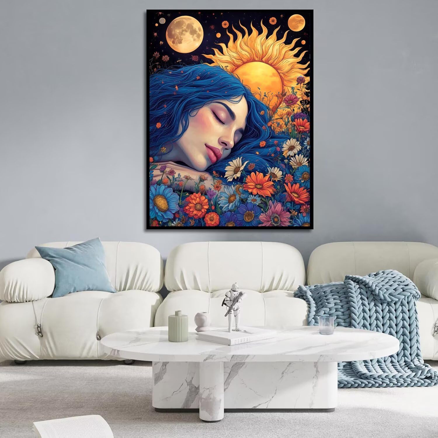 Paint by Numbers Donna, Quadri da Dipingere Numerati Fiore Dipingere Con i Numeri Bambini, Colorare Con i Numeri Pennelli Pittura a pigmento Acrilico Disegno con Home Room Decor, Regalo 60x90cm LJ-1