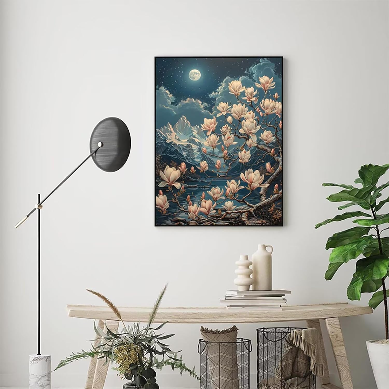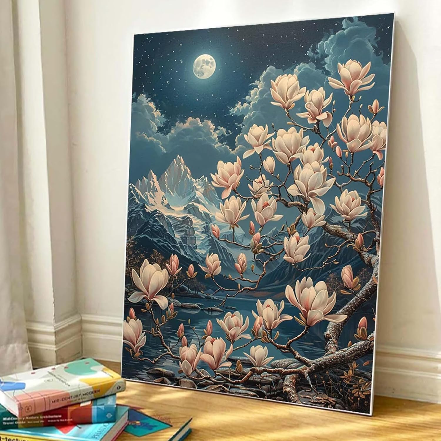 Paint by Numbers Fiore, Dipingere con i Numeri Adulti Cielo Stellato, Hobby Creativi Adulti, Kit per Dipingere con i Numeri con 3 Pennelli e Pigmento Acrilico, Regalo Decorativo 30 x 40 cm -TL250445