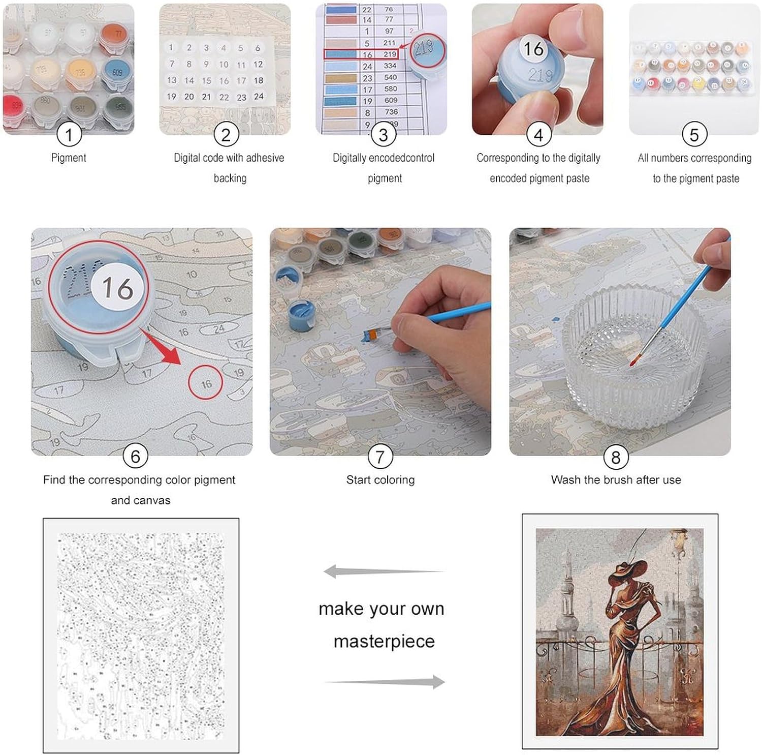 Kit di pittura per numeri: il kit per dipingere con i numeri include 1 tela testurizzata prestampata (senza cornice), 1 set di pigmenti acrilici, 3 pennelli per scopi diversi, 2 ganci per appendere, 1 carta leggenda. Il kit contiene tutti gli strumenti necessari, non sono necessari strumenti aggiuntivi per i principianti. Dipingere con numeri per adulti: tela ad alta precisione, la densità della tela è molto buona, le figure e i numeri sono chiari, tutti i punti sono contrassegnati da numeri, le linee sono facilmente visibili e facili da colorare. Pigmento acrilico: colori acrilici ecologici, colori vivaci e pigmenti sufficienti. Puoi dare pieno gioco alla tua creatività sulla tela colorata ad alta definizione, senza preoccuparti che la vernice danneggi il tuo corpo. Facile da dipingere: basta abbinare i numeri della vernice e le figure sulla tela per riempire la vernice. Dipingi per numeri di colore, finisci uno per uno. La pittura con i numeri è adatta a tutti i livelli di abilità, sia che tu sia un principiante adulto. Riempi il colore in base ai numeri, non hai bisogno di alcuna abilità di pittura. 50% in più di pigmenti: la pittura con i numeri offre un 50% di vernice extra per ogni colore, di solito c'è un eccesso dopo la pittura. Se non abbastanza vernice non esitate a contattarci. Riemetteremo la sostituzione per il rimborso gratuito o completo per voi entro 24 ore, si prega di essere certi dell'acquisto.