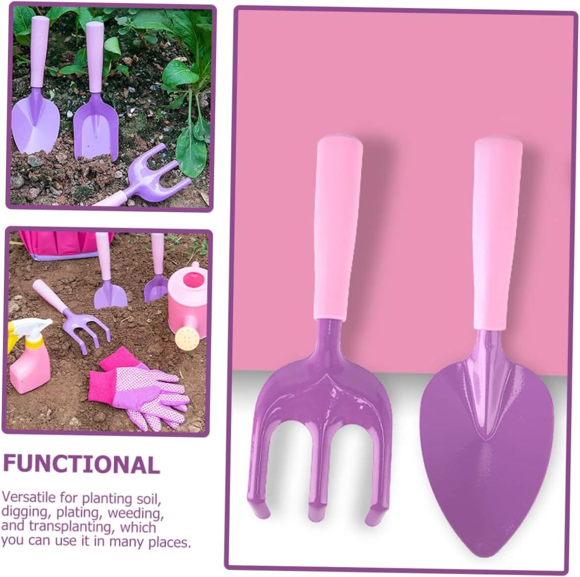 Strumenti di giardinaggio per bambini: i genitori possono promuovere le abilità pratiche dei propri figli permettendo loro di dedicarsi al giardinaggio. Piccoli attrezzi da giardino per scavare: la pala è molto pratica ed è adatta per giardino, spiaggia, cortile, parco, ecc., nonché attrezzi da giardino per bambini. Attrezzi da giardinaggio per bambini: questo tipo di pale da giardino è piccolo, leggero, facile da trasportare e giocare all'aperto, attrezzi per piantare per bambini Giardinaggio per bambini: offre l'opportunità di praticare le capacità motorie e la coordinazione manuale e di mettere la mente al lavoro. Attrezzi da giardino per bambini Attrezzi da giardino per bambini: possono essere utilizzati per trapiantare, piantare, dissodare il terreno ed estirpare fiori, verdure e come rastrello per bambini.
