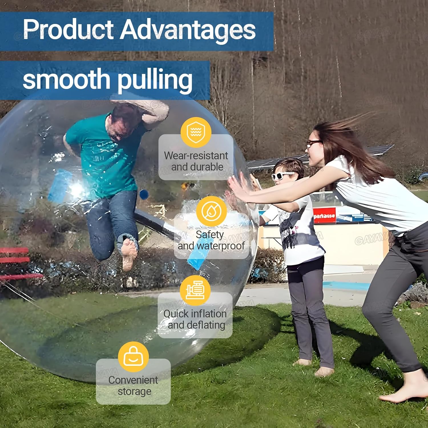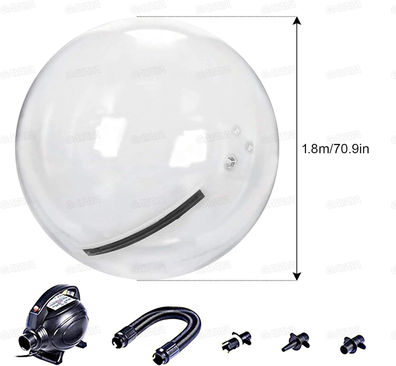 ★【DIVERSE MISURE DISPONIBILI】La palla da passeggio sull'acqua è disponibile in diverse misure (diametri: 1,5 m/1,8 m/2 m/2,5 m) per soddisfare le tue preferenze ed esigenze! Aggiungi un elemento unico e divertente a qualsiasi tua attività acquatica preferita. (Nota: la misura da 1,5 metri è adatta solo ai bambini.) ★【MATERIALE ROBUSTO, GIOCO SENZA PENSIERI】Questa palla da passeggio sull'acqua è realizzata in pellicola di PVC di 0,18 mm di spessore, che offre un'elevata resistenza alla trazione e un'eccellente resistenza all'abrasione. Può sopportare pesi fino a 180 kg/390 libbre. Questo materiale ecologico e atossico garantisce la sicurezza dei bambini, consentendo loro di giocare in tutta tranquillità. ★【GONFIAGGIO E SGONFIAGGIO RAPIDI】La palla da passeggio sull'acqua è dotata di un'interfaccia con valvola dell'aria a tenuta stagna e di una pompa ad aria da 800 watt, che aumenta la velocità di gonfiaggio e sgonfiaggio di oltre cinque volte. Si sgonfia facilmente in pochi minuti ed è facile da trasportare. ★【TENUTA RESISTENTE】Questa palla gonfiabile è dotata di una cerniera impermeabile per una tenuta stagna elevata e una chiusura fluida e sicura. La tenuta è rinforzata con adesivi per prevenire danni e usura. Lascia che familiari e amici corrano, rotolino e si srotolino in acqua senza preoccuparsi di bagnarsi. ★【UTILIZZO VERSATILE】La palla da passeggio sull'acqua è adatta a scuole, centri ricreativi, parchi e attività di noleggio. Divertiti a correre, rotolare e saltare nell'acqua. Divertiti a giocare con amici e familiari alle feste, in spiaggia o sul prato. Assicurati sempre la supervisione durante il gioco per massimizzare la sicurezza e il divertimento durante le tue avventure acquatiche.