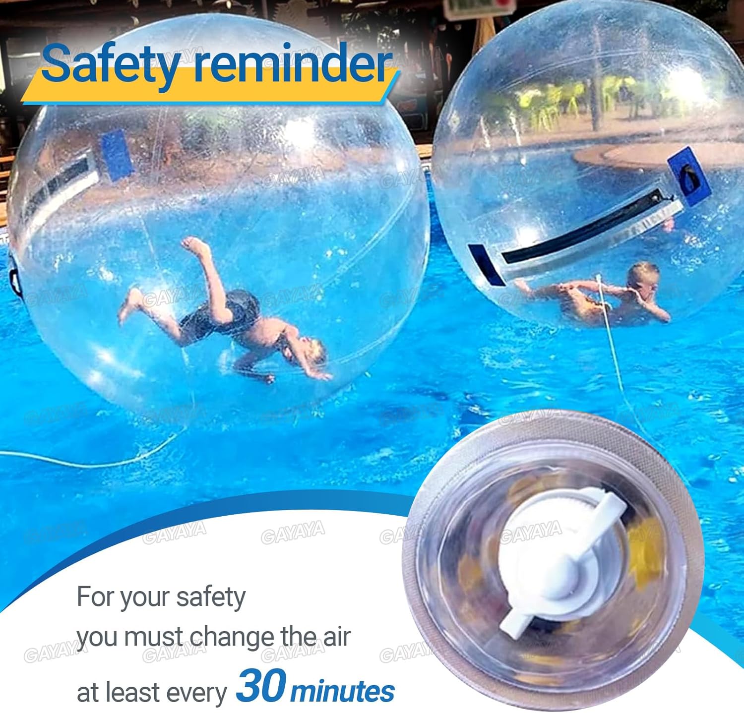 ●【Materiale robusto, gioco senza pensieri】Questa palla da passeggio sull'acqua è realizzata in pellicola di PVC spessa 0,18 mm, che offre un'elevata resistenza alla trazione e un'eccellente resistenza all'abrasione. Può sopportare pesi fino a 180 kg/390 libbre. Questo materiale ecologico e atossico garantisce la sicurezza dei bambini, permettendo loro di giocare in tutta tranquillità. ●【Gonfiaggio e sgonfiaggio rapidi】La palla da passeggio sull'acqua è dotata di un'interfaccia con valvola dell'aria a tenuta stagna e di una pompa dell'aria da 800 watt, che aumenta la velocità di gonfiaggio e sgonfiaggio di oltre cinque volte. Si sgonfia facilmente in pochi minuti ed è facile da trasportare. ●【Diverse misure disponibili】La palla da passeggio sull'acqua è disponibile in diverse misure (diametri: 1,5 m/1,8 m/2 m/2,5 m) per soddisfare le tue preferenze ed esigenze! Aggiungi un elemento unico e divertente a qualsiasi tua attività acquatica preferita. (Nota: la dimensione di 1,5 metri è adatta solo ai bambini.) ●【Sigillo resistente】Questa palla gonfiabile è dotata di una cerniera impermeabile per una tenuta stagna elevata e una chiusura fluida e sicura. Il sigillo è rinforzato con adesivi per prevenire danni e usura. Lascia che familiari e amici corrano, rotolino e si srotolino in acqua senza preoccuparsi di bagnarsi. ●【Versatile】La palla da water walking è adatta a scuole, centri ricreativi, parchi e attività di noleggio. Divertiti a correre, rotolare e saltare in acqua. Divertiti a giocare con amici e familiari alle feste, in spiaggia o sul prato. Assicurati sempre la supervisione durante il gioco per massimizzare la sicurezza e il divertimento durante le tue avventure acquatiche.