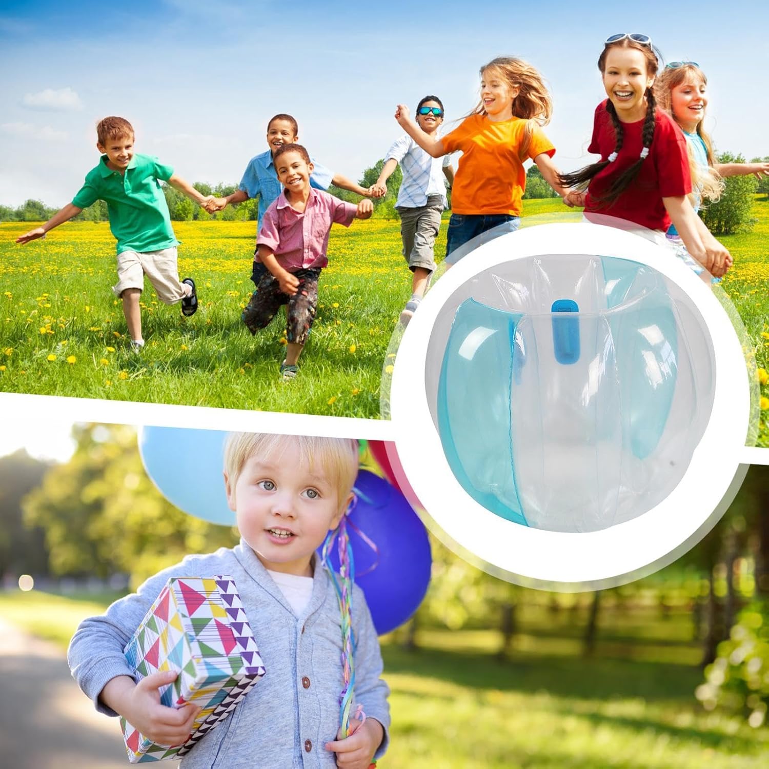 Perdite a prova di lacrime e lacrime: realizzate in PVC spesso 0,3 mm, queste palline per paraurti non sono solo a prova di lacrima, ma anche sicure, impermeabili e perdite, garantendo un'esperienza robusta e duratura con ogni rotolo. Divertimento all'aperto per i bambini: con un diametro esterno di 3 piedi, queste palline per paraurti sono facili da usare e perfette per i bambini 6+, che supportano 110-330 libbre e altezze da 3,6 a 5,2 piedi. Manico in PVC morbido integrato: le nostre palline per paraurti sono perfette per i bambini che amano muoversi. L'integrazione delle maniglie in PVC morbido e un design sostenibile offre il massimo piacere e sicurezza. Vedi quando , cadono e rimbalzano in uno stile di vita attivo. Opzioni di gioco versatili: trascorri in un mondo di più immaginazione con le palle del paraurti: un divertente giocattolo gonfiabile che consente ai bambini di inventare giochi all'aperto emozionanti e collaborare con gli amici. Possono portarlo in vari modi, rotolare su di esso e sperimentare più opportunità per il lavoro di squadra e il gioco attivo. Regalo creativo: sorprendi i tuoi cari con un set di palline per paraurti, che offre più intrattenimento nel cortile per ragazzi e ragazze. Perfetto per regali e compleanni, rendendo i giochi all'aperto più memorabili ed emozionanti.