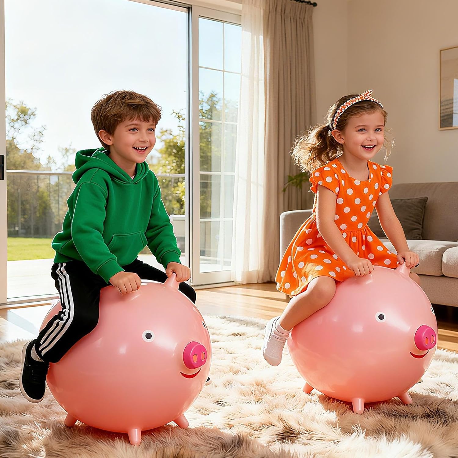 Design rinforzato per una maggiore stabilità: lo spessore rinforzato della palla rimbalzante garantisce una lunga durata resistendo efficacemente alla perdita d'aria e mantenendo un rimbalzo costante. Ciò lo rende ideale per attività ad alta energia a casa, a scuola o nei parchi giochi dove prestazioni affidabili sono fondamentali per un divertimento ininterrotto. La struttura robusta supporta ore di divertimento senza sacrificare il rimbalzo o la stabilità dimensionale. Simpatico design a forma di animale: questa palla rimbalzante presenta un adorabile design a forma di animale che include forme giocose di orecchie e vivaci motivi a fumetti. Cattura immediatamente l'attenzione dei bambini e trasforma il movimento noioso in un'esperienza di gioco fantasiosa. Ciò incoraggia la partecipazione attiva negli spazi interni ed esterni e stimola la creatività dei bambini durante il gioco, portando ad un maggiore coinvolgimento. Gioco dinamico ovunque: progettate per superfici piane, le palline rimbalzanti offrono prestazioni adattabili per una varietà di usi. Promuovono interazioni coinvolgenti genitore-figlio e consentono lunghi periodi di energica attività di salto per i bambini in diversi ambienti di gioco, contribuendo a un'esperienza di gioco vivace e varia. Promozione dello sviluppo sensoriale: le palline rimbalzanti per bambini fungono da strumento efficace per l'allenamento dell'integrazione sensoriale, migliorando la propriocezione e i sensi tattili stimolando allo stesso tempo lo sviluppo vestibolare. Queste caratteristiche aiutano i bambini a mantenere l'equilibrio mentre giocano e promuovono l'allenamento delle competenze fondamentali attraverso divertenti attività indoor e outdoor, supportando lo sviluppo sensoriale in modo olistico. Stabilità migliorata per i bambini: dotata di maniglie appositamente progettate, la palla rimbalzante per bambini garantisce una manipolazione sicura quando i bambini si siedono sopra, migliorando l'equilibrio e il controllo. Il design ergonomico supporta il divertimento sicuro nei salti a casa o in giardino. Ciò aiuta i bambini a godersi i momenti attivi e offre ai genitori ulteriore tranquillità grazie a prestazioni affidabili.