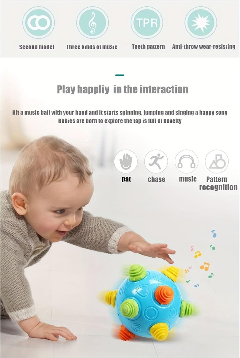 Divertente esplorazione sensoriale: la palla sensoriale per bambini progettata con un motivo a nido d'ape, la palla incorpora musica, vibrazioni e azione di rotolamento per creare allenamenti di gioco gioiosi che incoraggiano lo sviluppo sensoriale e comportamenti di inseguimento attivi Aumenta lo sviluppo motorio in modo naturale: giocattoli interattivi per bambini progettati con attrazione dai colori vivaci e superfici facili da impugnare, questa palla sensoriale incoraggia la coordinazione occhio-mano sostenendo abilità indispensabili come raggiungere e gattonare per una crescita attiva Crescita cognitiva attraverso il gioco: il set di palline sensoriali per bambini favorisce la connessione emotiva attraverso il gioco interattivo con effetti sonori allegri, incoraggiando l'esplorazione guidata e lo sviluppo cognitivo durante le attività sensoriali della palla Strumento di intrattenimento flessibile: la palla rimbalzante per bambini con musica progettata per adattarsi ai palchi striscianti e in piedi, favorisce il coinvolgimento degli animali domestici e si adatta senza sforzo alle impostazioni interne o esterne, fornendo una soluzione di gioco sensoriale portatile e adattabile per vari ambienti Design masticabile sicuro: palla sensoriale per bambini realizzata con materiali resistenti all'usura per fornire una lunga durata e progettata senza piccole parti di soffocamento, rendendolo sicuro per i bambini masticare la consistenza non commestibile