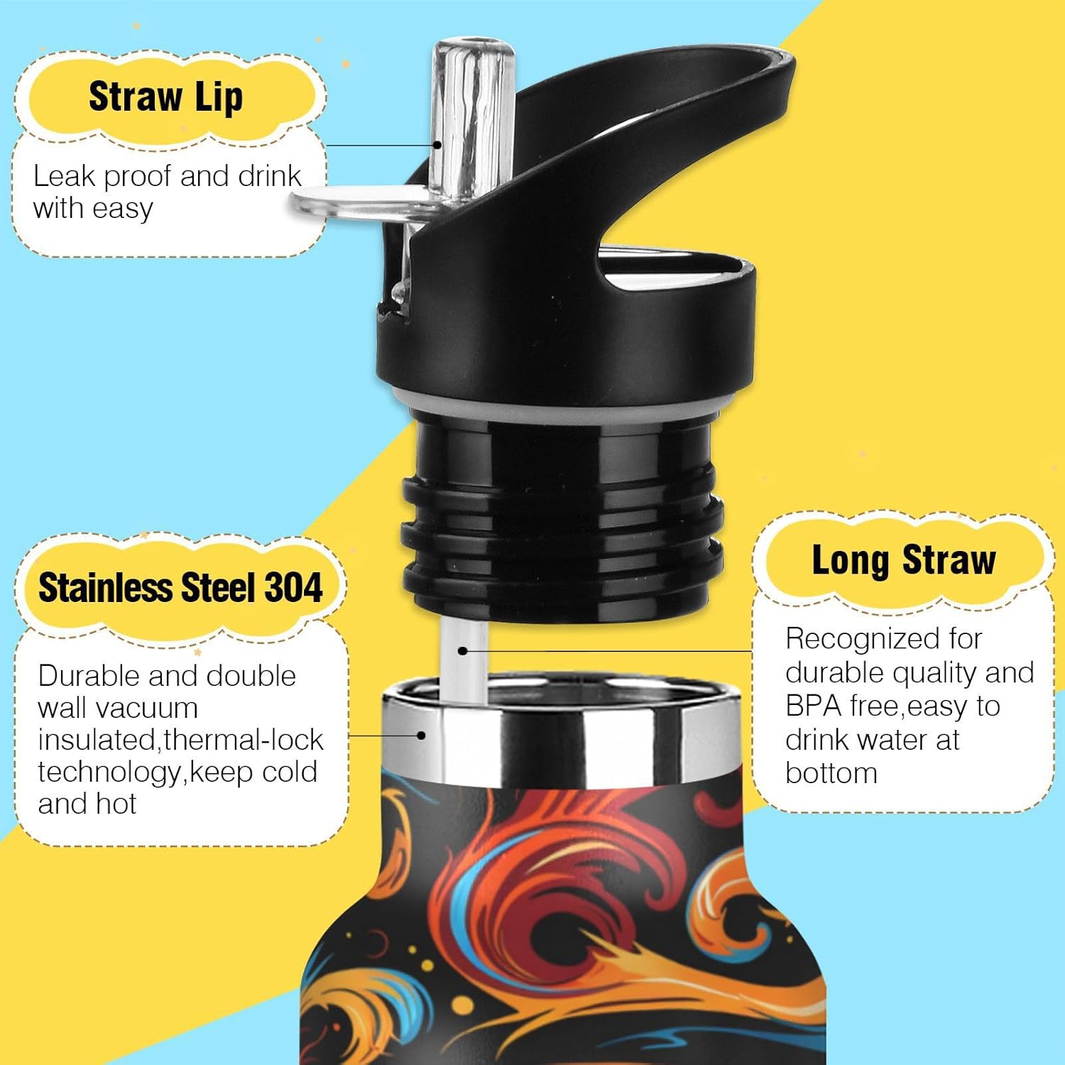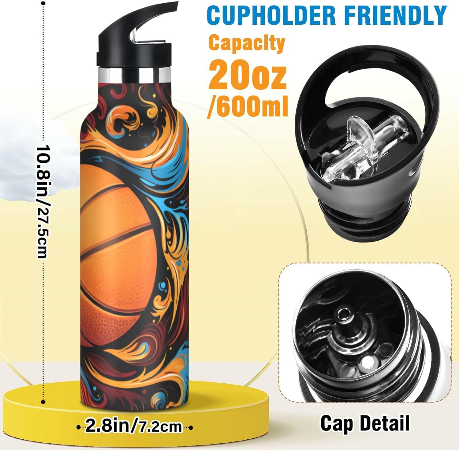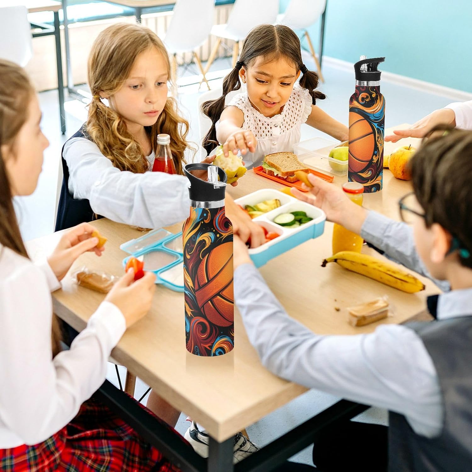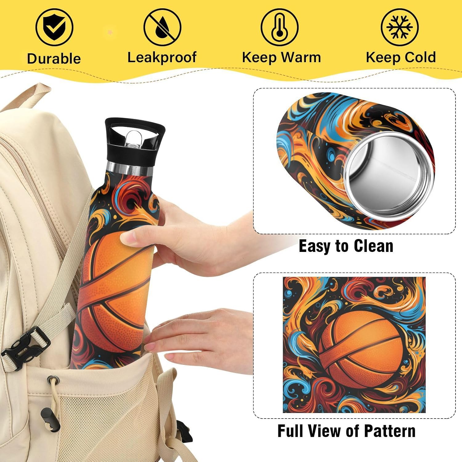 Pallacanestro Del Fuoco Blu Dell'Acquerello Borraccia per Bambini in Acciaio Inossidabile Termica a Vuoto per Ragazzi e Ragazze (600 ml)