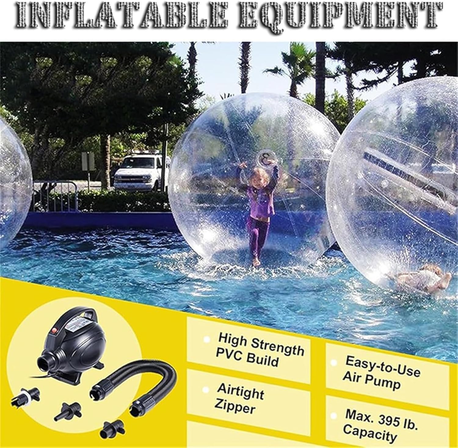 Divertimento sull'acqua: la nostra palla gonfiabile per zorb dispone di una cerniera impermeabile, che consente di correre, rotolare e saltare sull'acqua senza bagnarsi. Goditi un divertimento infinito in piscina, spiaggia o prato con questa emozionante palla da passeggio. Materiale durevole: costruito con pellicola in PVC da 0,8 mm, questa palla gonfiabile ad acqua vanta un'elevata resistenza alla trazione, eccezionale resistenza all'abrasione, flessibilità ed è atossica ed ecologica. Può supportare fino a 180 kg. Gonfiaggio e sgonfiaggio rapidi: il nostro design innovativo della valvola consente di gonfiare e sgonfiare la palla d'acqua più di cinque volte più velocemente. Viene fornito con una forte valvola dell'aria ermetica e una pompa d'aria da 800 W per un facile trasporto. Cerniera sicura e adesivo: questa palla gonfiabile è dotata di una cerniera impermeabile con una forte tenuta e un funzionamento fluido. La cerniera è rinforzata con adesivi per migliorare la durata e prevenire danni, lasciando che la famiglia e gli amici si divertano a correre, rotolare e capovolgere l'acqua senza problemi. Disponibile in varie dimensioni: forniamo una gamma di dimensioni per elevare la tua esperienza di gioco! La palla da passeggio in acqua non è solo pratica, ma anche visivamente accattivante, aggiungendo eccitazione a tutte le attività acquatiche. Scegli tra diverse dimensioni (1,5-2,5 metri di diametro) per soddisfare le tue esigenze.