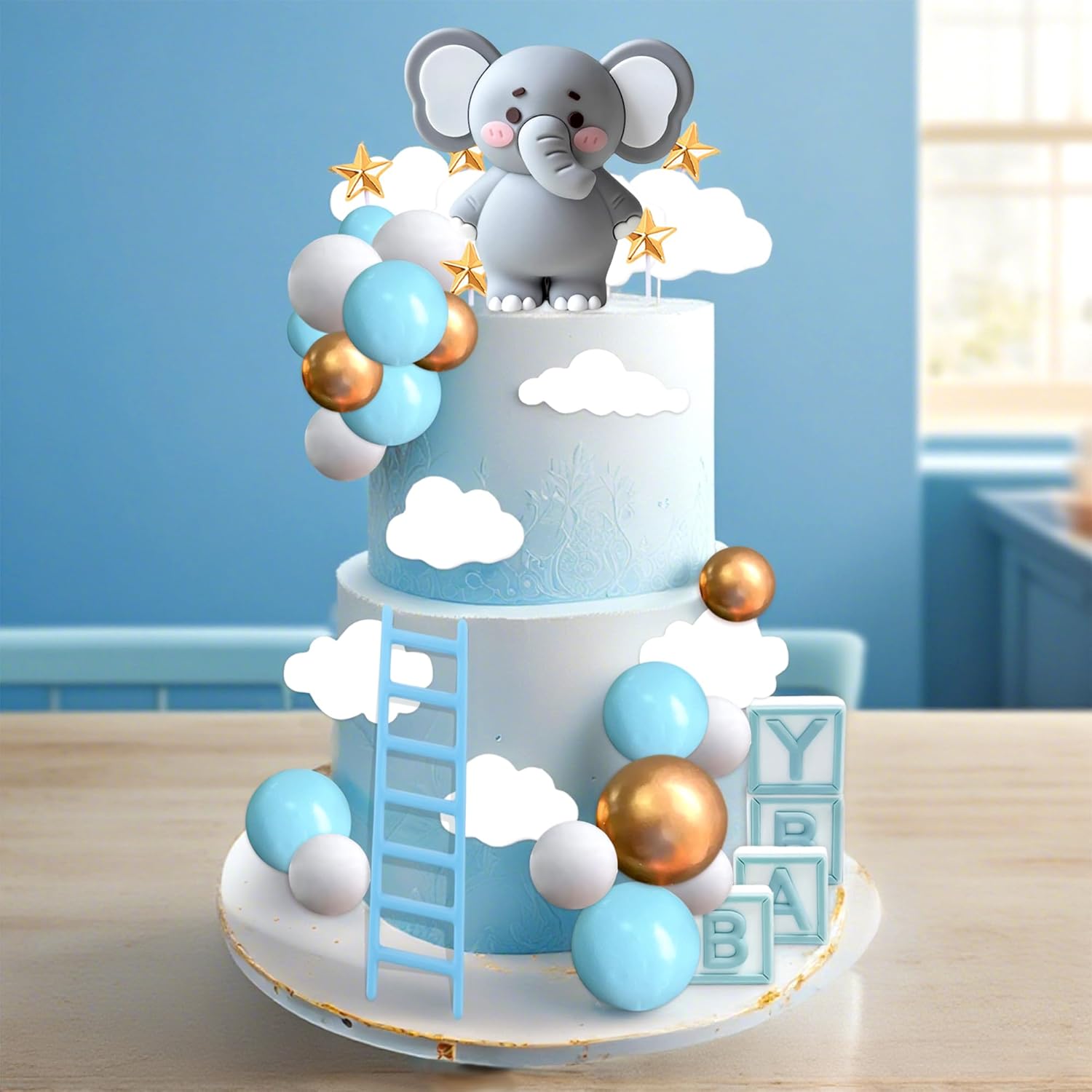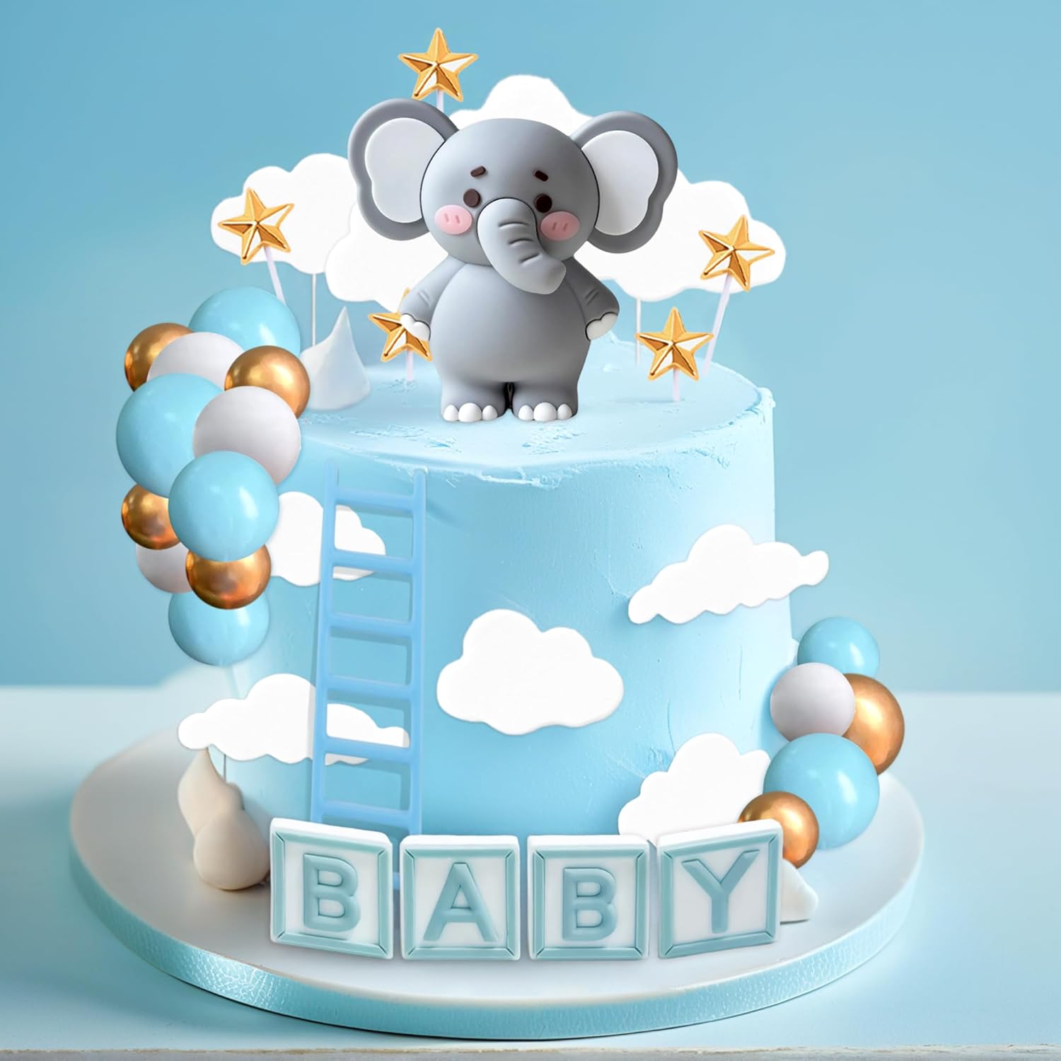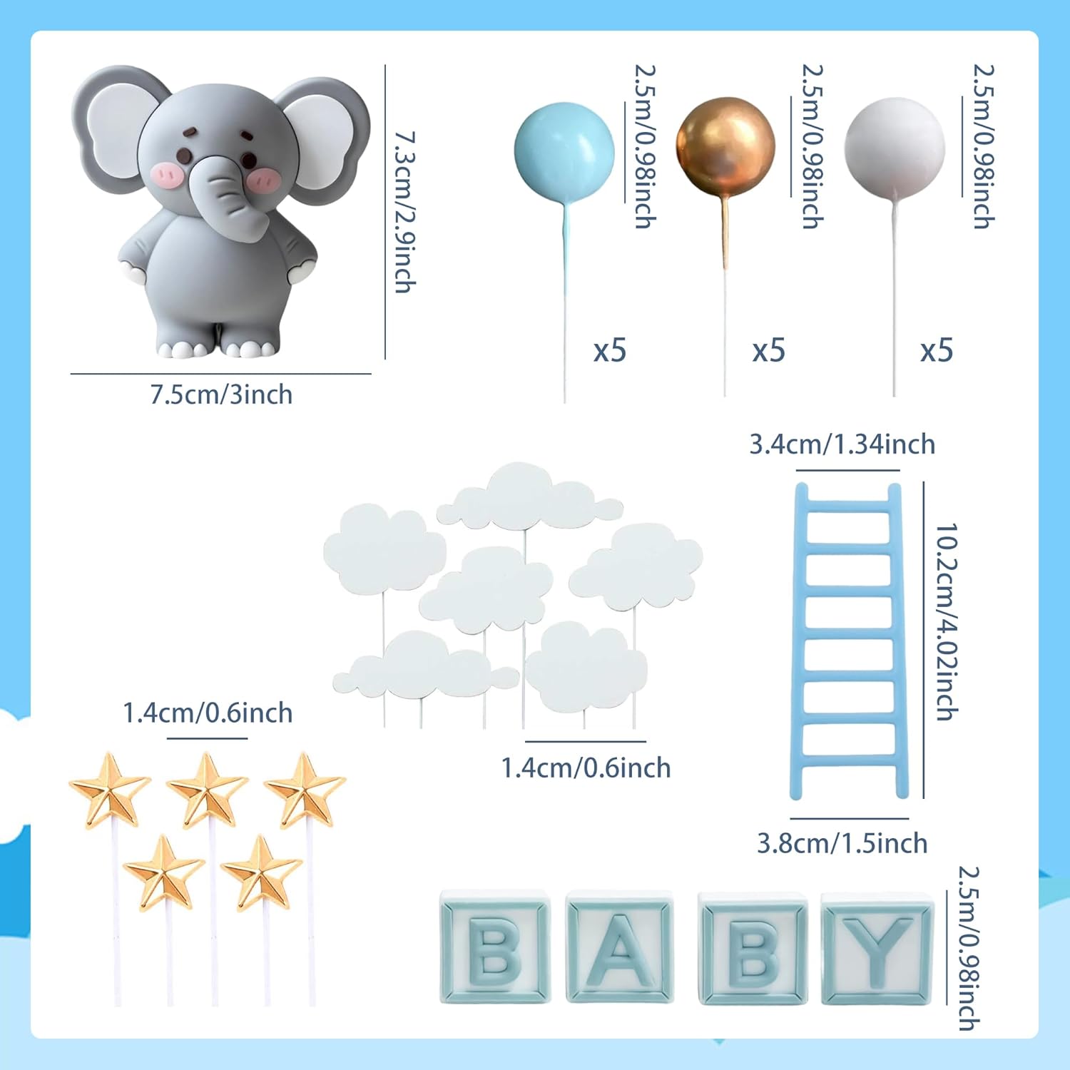 Il nostro set di accessori per torta con elefante ha tutto per rendere questo giorno un grande giorno di felicità. Questo set di decorazioni per torta per baby shower può essere utilizzato per qualsiasi festa di compleanno. Riceverai: 1 decorazione per torta con elefante, 1 scala, 1 decorazione per torta "BABY", 5 decorazioni per torta con pentagramma, 15 palline e 6 nuvole. Il nostro cake topper per baby shower rende la tua torta più attraente e immerge la tua famiglia e i tuoi amici in un'esperienza memorabile. Accessori luminosi e colorati per elefanti creano una festa piena di colori vivaci