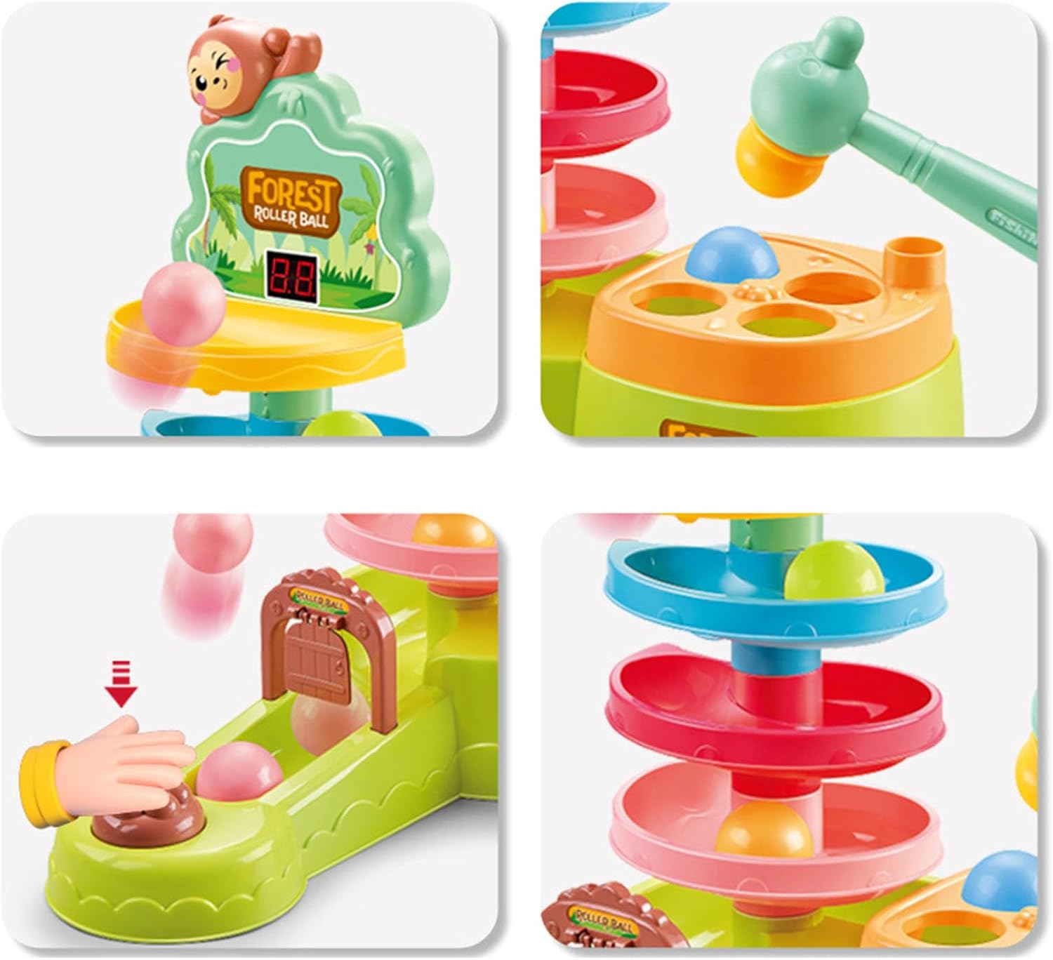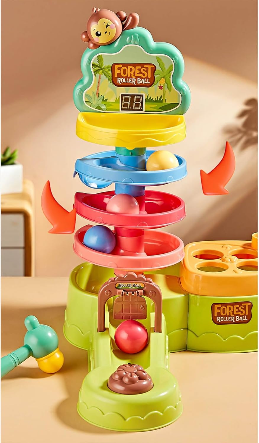 4 strati Roll Swirling Tower offre al vostro bambino tanto divertimento e possibilità di apprendimento Questo giocattolo è stato progettato per bambini da 1 a 3 anni ed è perfetto per lo sviluppo di abilità di base come martello e pila Crea un ambiente di apprendimento sicuro e confortevole a casa con questo giocattolo versatile Questo giocattolo promuove lo sviluppo cognitivo e l'attività fisica nei neonati e nei bambini Migliorare